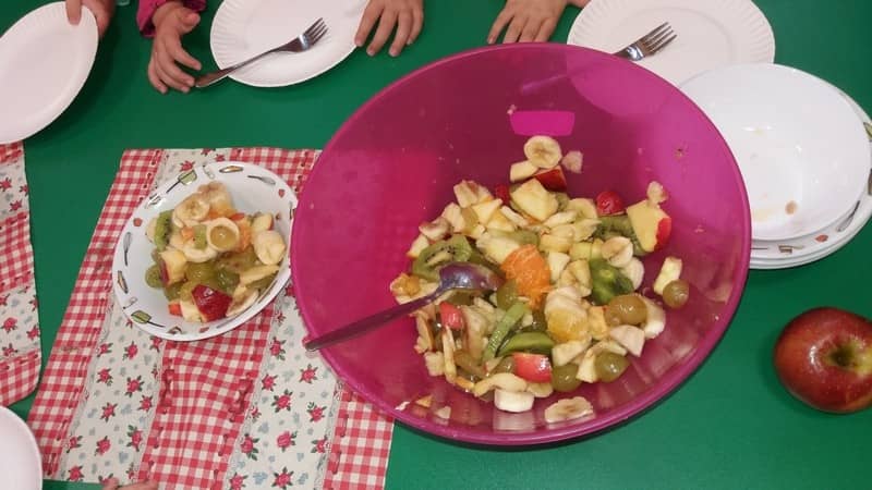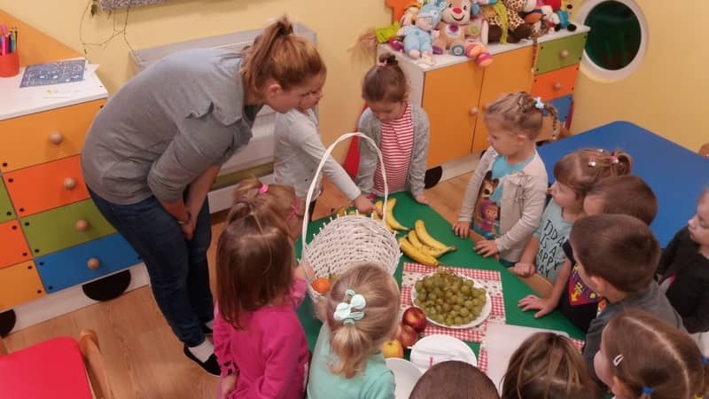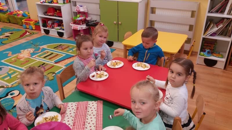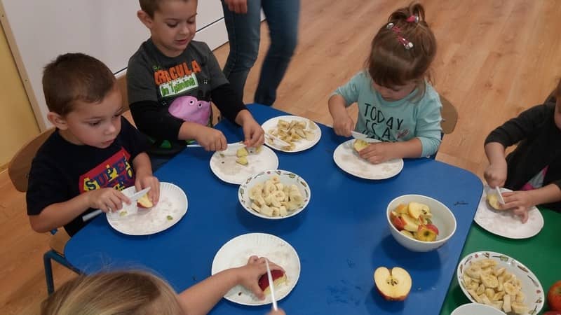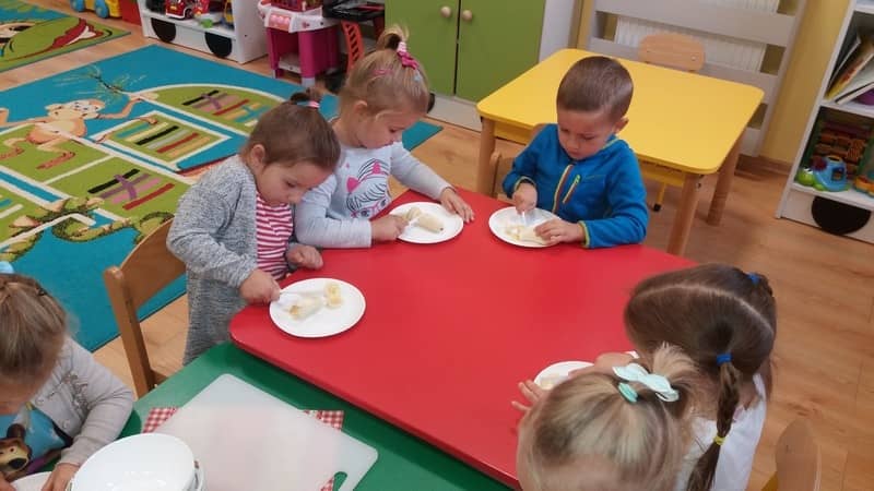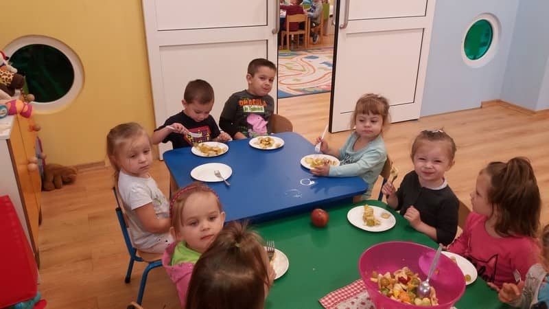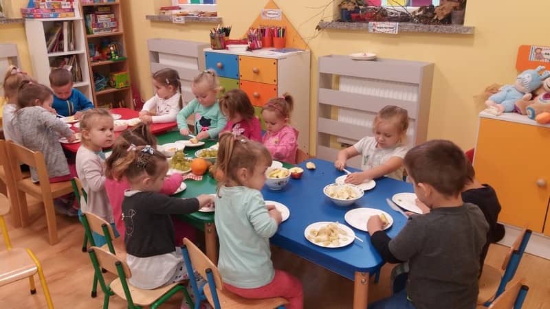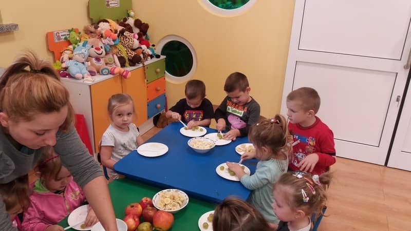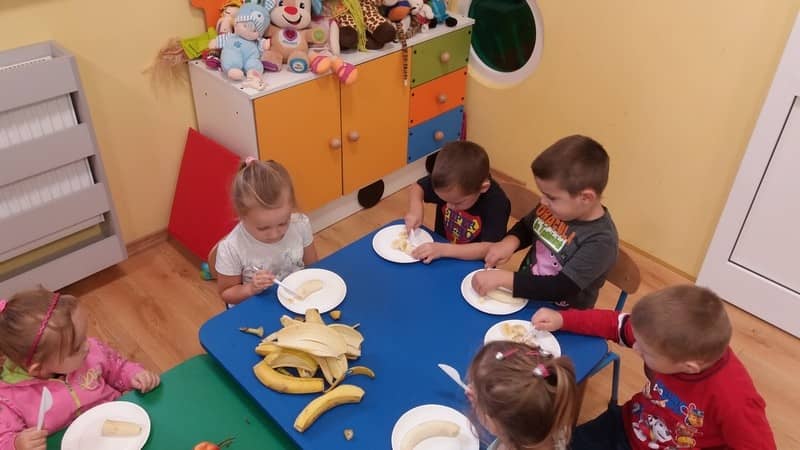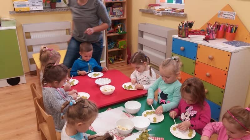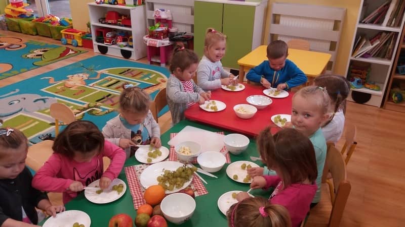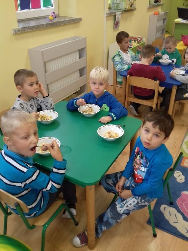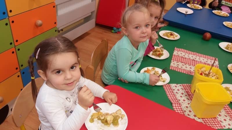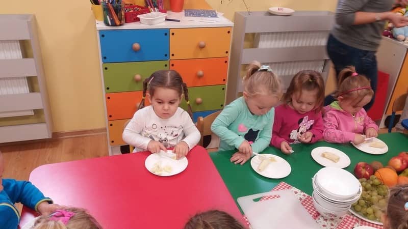 W czwartek 5 października było w naszym przedszkolu smacznie i zdrowo! Dzieci z grupy „Tygryski” na zajęciach własnoręcznie przygotowały pyszną, witaminową sałatkę z owoców, które przyniosły z domu. Przedszkolaki umyły ręce, a następnie wspólnie posegregowały umyte wcześniej przez panią owoce. Każdy dostał tackę i nożyk . Dzieci samodzielnie kroiły owoce na sałatkę, przestrzegając zasad bezpieczeństwa przy posługiwaniu się nożem. Po wymieszaniu ze sobą wszystkich owoców, każdy przedszkolak spróbował pysznej owocowej sałatki. Wszystkim bardzo smakowało wspólne dzieło .