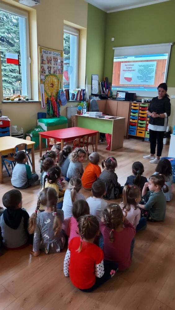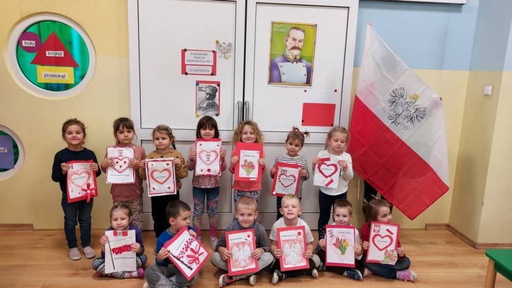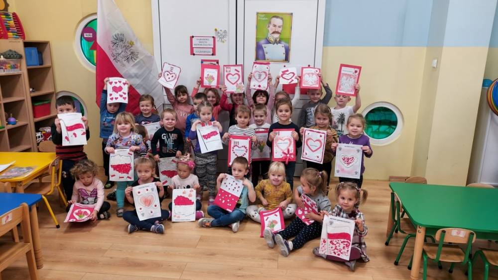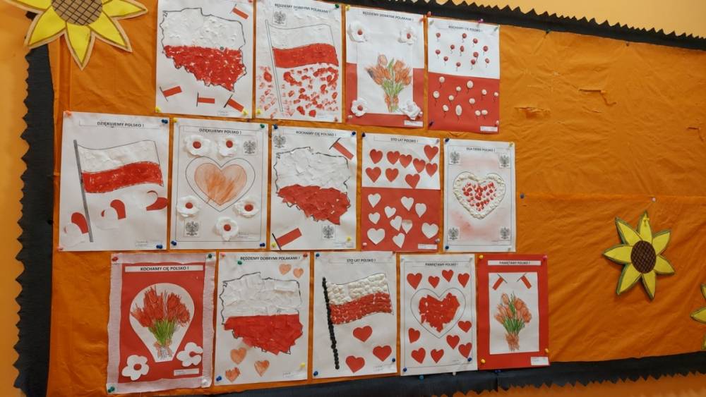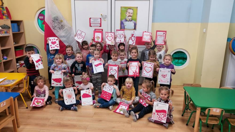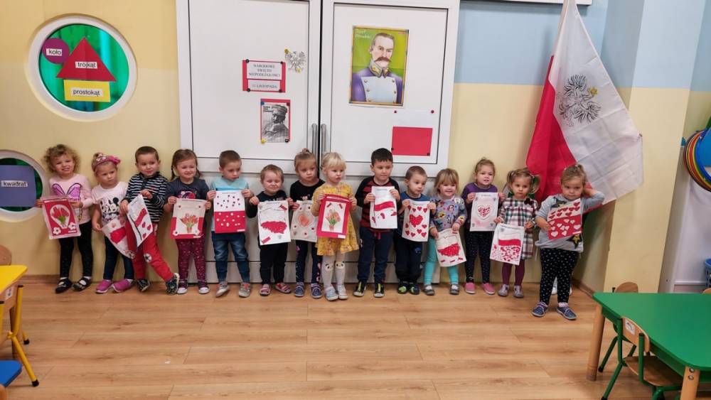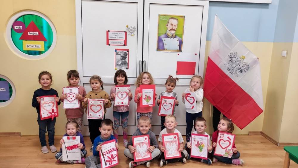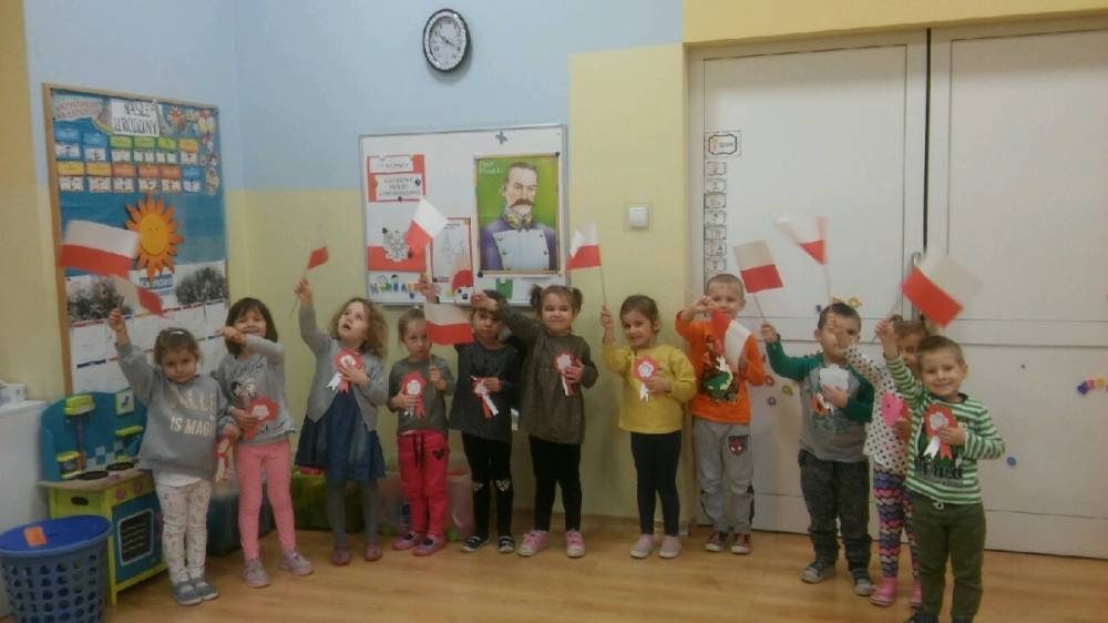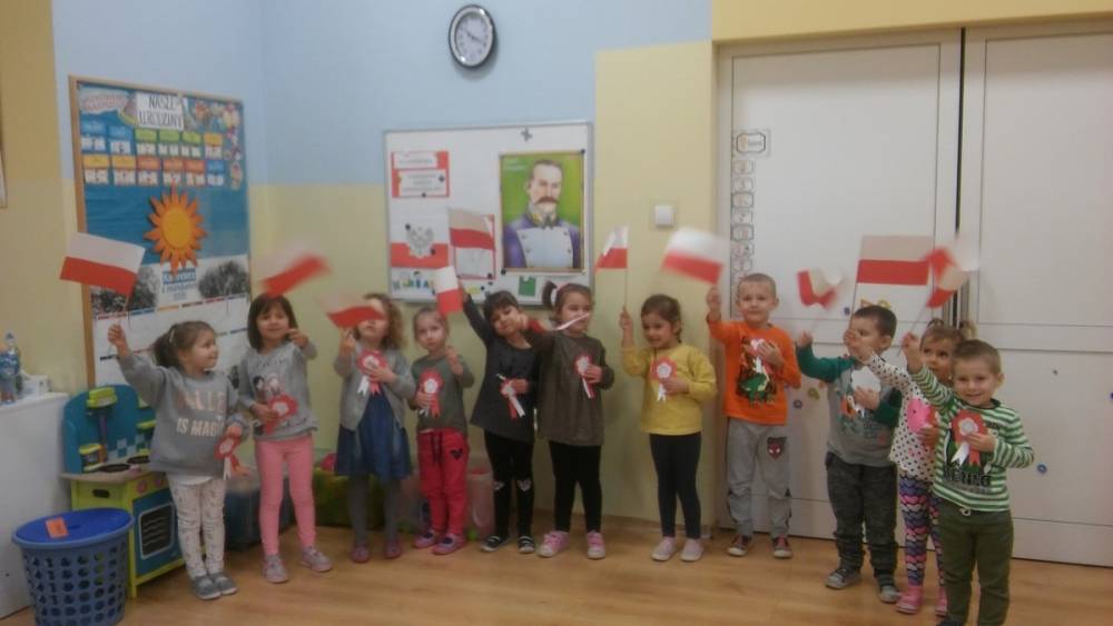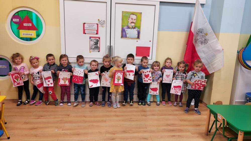 102 rocznica Odzyskania Niepodległości przebiegała w nastroju patriotyzmu i pracowitości małych Polaków. Każdy przedszkolak wrócił do domu z własnoręcznie wykonanym kotylionem i flagą Polski.