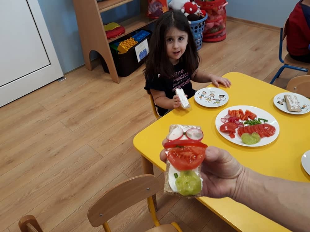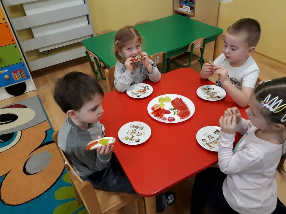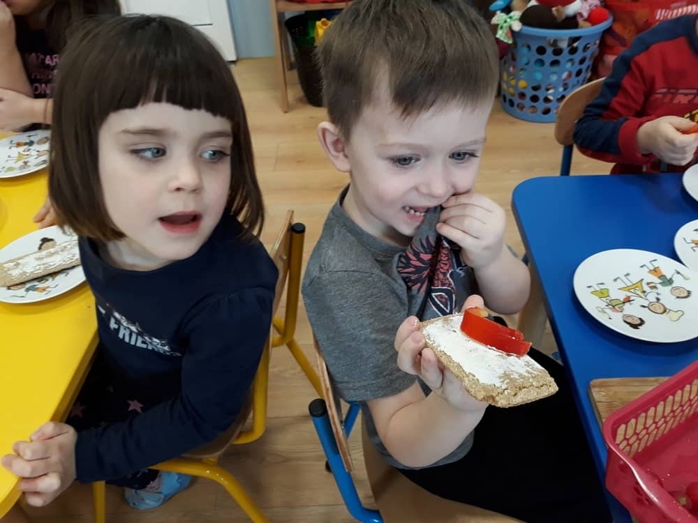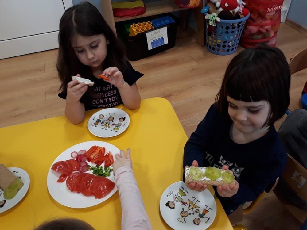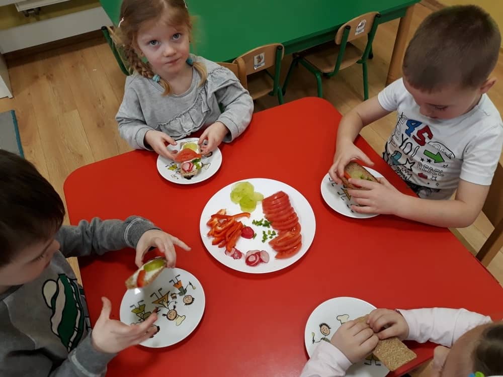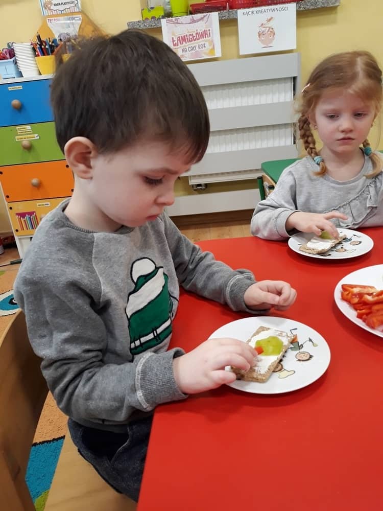 W dniu 07.02.2019 przedszkolaki z grupy Tygrysków rozpoczęły sezon kanapkowy z dużą porcją witamin. Tematyka zajęć dotyczyła zdrowego sposobu odżywiania się. Dzieci miały okazję rozmawiać na temat tego, co to jest zdrowa żywność i dlaczego tak bardzo potrzebna jest dla naszego organizmu. Dzieci segregowały i określały, jakie produkty można zaliczyć do zdrowych i szkodliwych. Zapoznały się także z piramidą zdrowia i zasadą, że ruch to podstawa prawidłowego rozwoju człowieka. W tym dniu dzieci miały okazję przyrządzić pełną witamin kanapkę i wspólnie degustować ją. Oczywiście przed przystąpieniem do pracy wszystkie dzieci porządnie umyły ręce i zadbały o utrzymanie porządku. Kanapki z pewnością smakowały dzieciom, a dowodem na to były liczne dokładki.