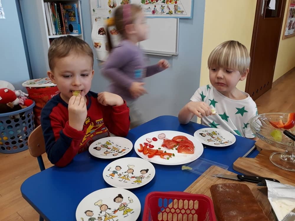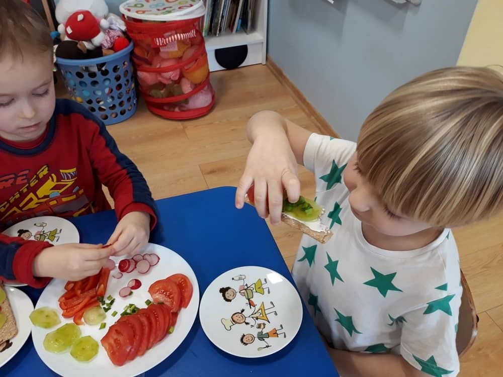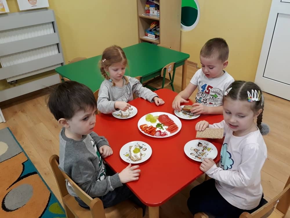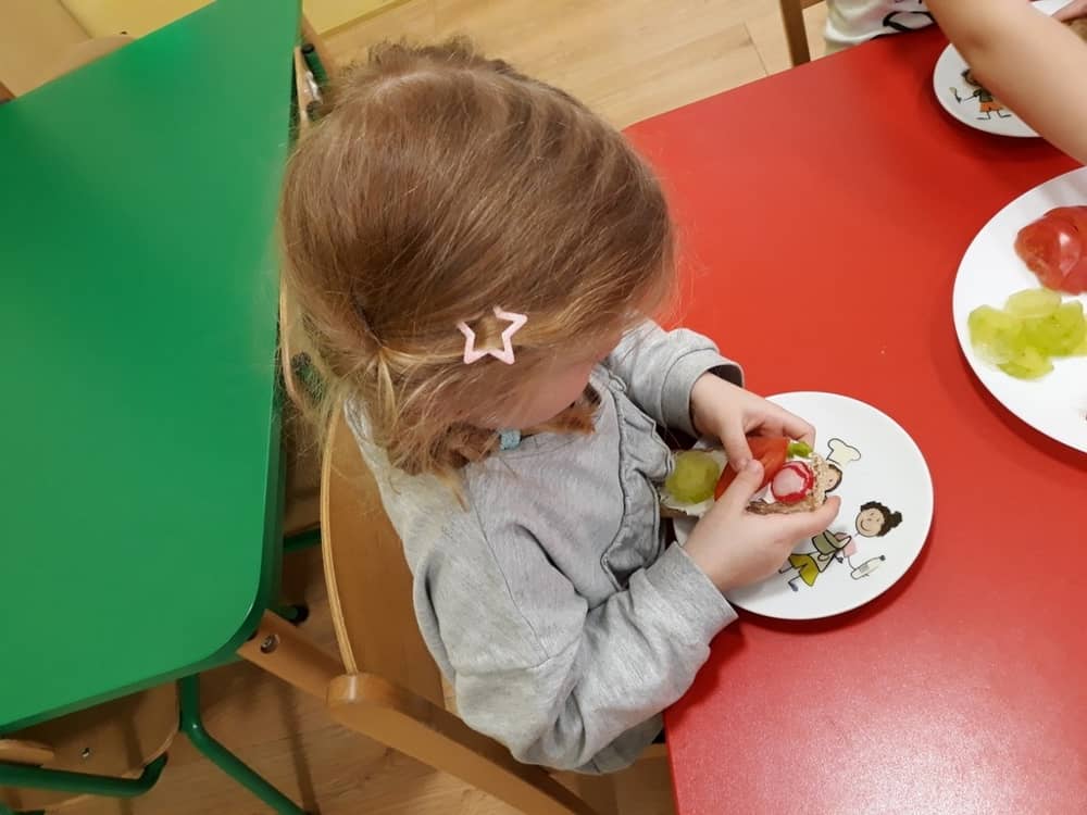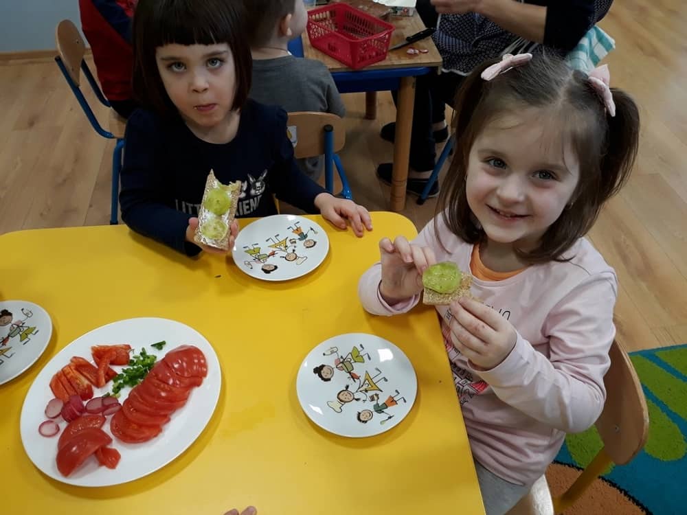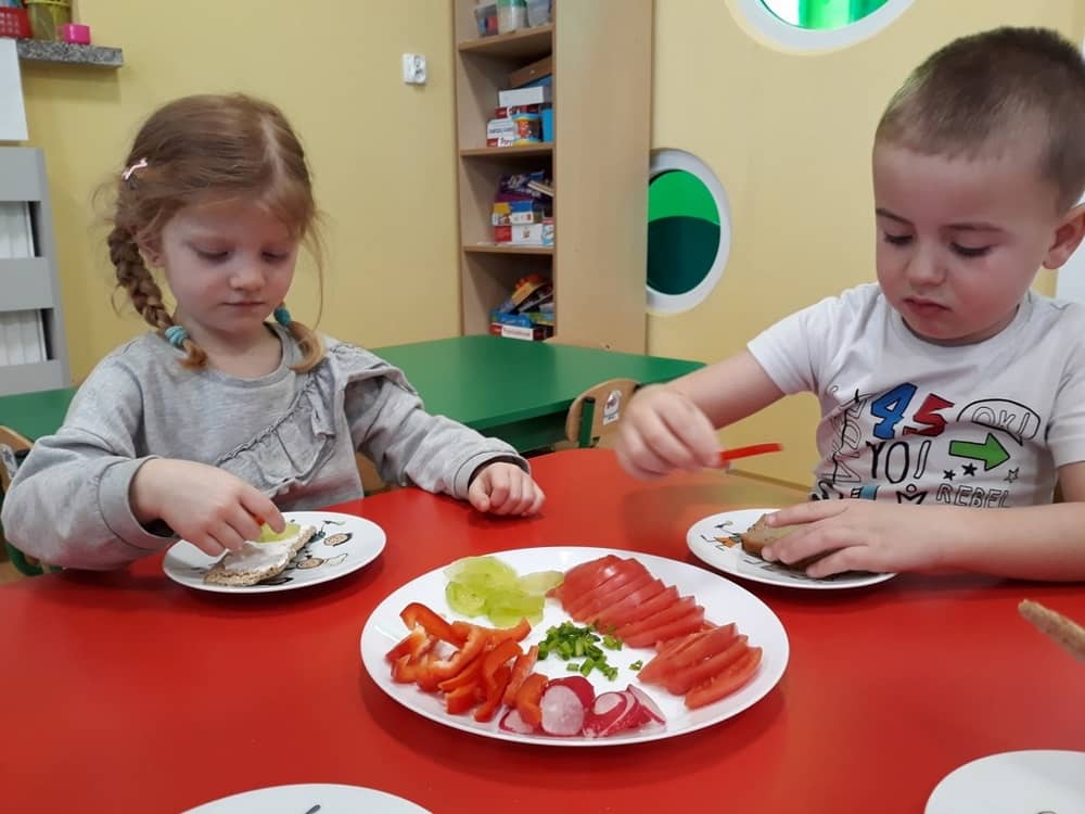 W dniu 07.02.2019 przedszkolaki z grupy Tygrysków rozpoczęły sezon kanapkowy z dużą porcją witamin. Tematyka zajęć dotyczyła zdrowego sposobu odżywiania się. Dzieci miały okazję rozmawiać na temat tego, co to jest zdrowa żywność i dlaczego tak bardzo potrzebna jest dla naszego organizmu. Dzieci segregowały i określały, jakie produkty można zaliczyć do zdrowych i szkodliwych. Zapoznały się także z piramidą zdrowia i zasadą, że ruch to podstawa prawidłowego rozwoju człowieka. W tym dniu dzieci miały okazję przyrządzić pełną witamin kanapkę i wspólnie degustować ją. Oczywiście przed przystąpieniem do pracy wszystkie dzieci porządnie umyły ręce i zadbały o utrzymanie porządku. Kanapki z pewnością smakowały dzieciom, a dowodem na to były liczne dokładki.