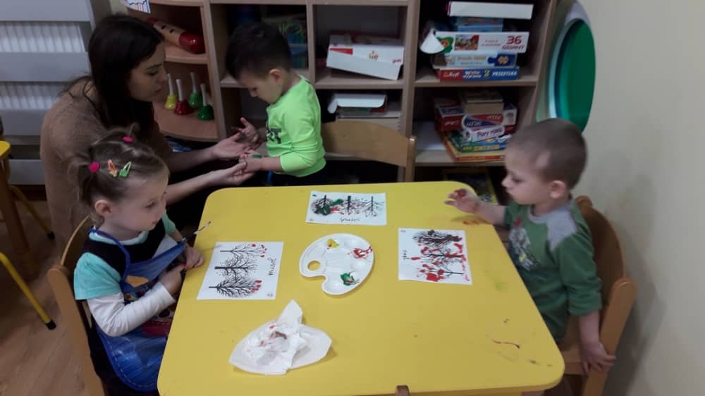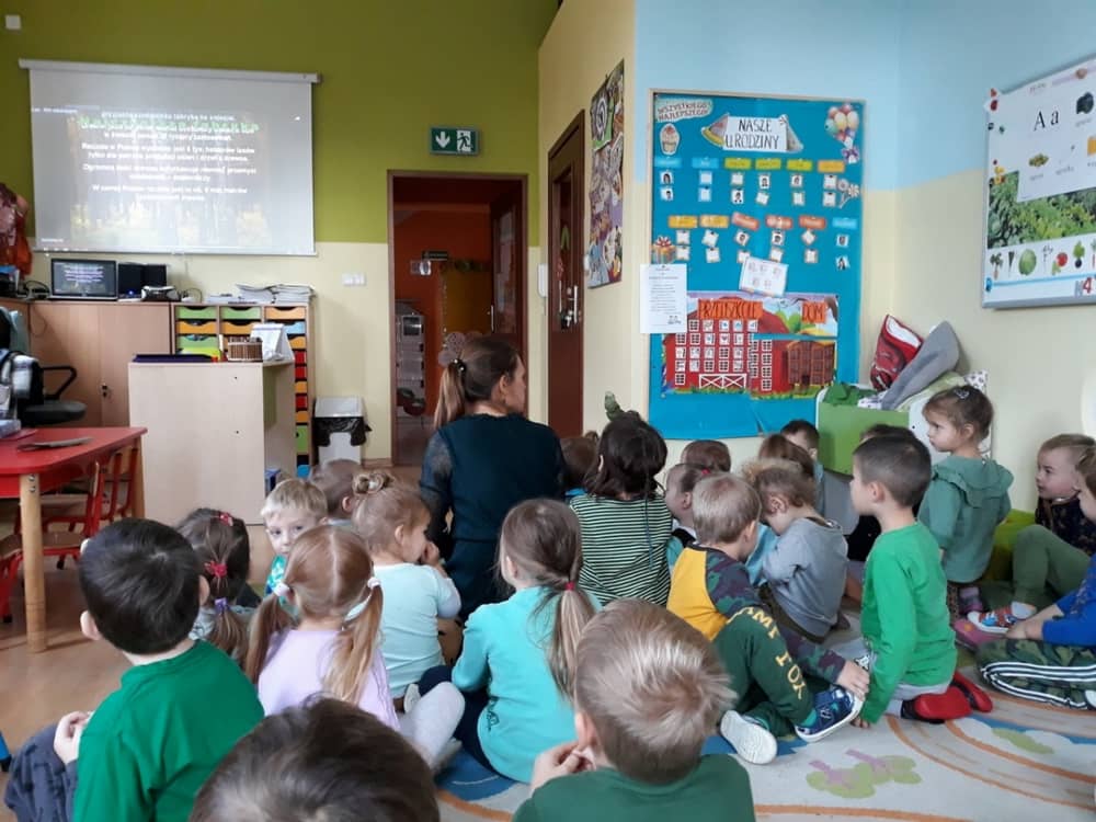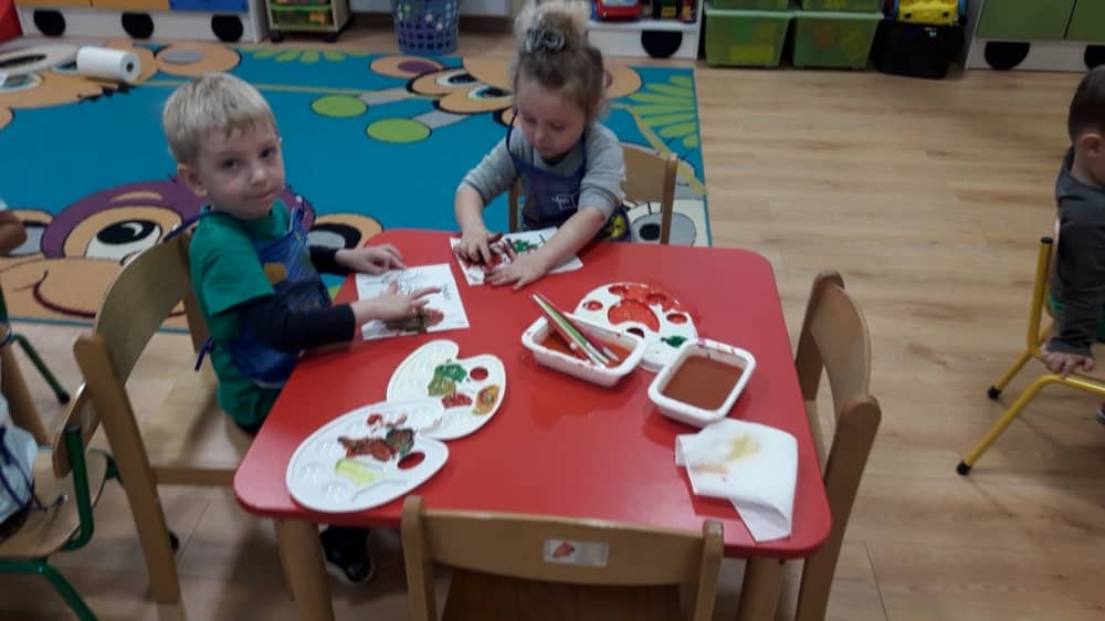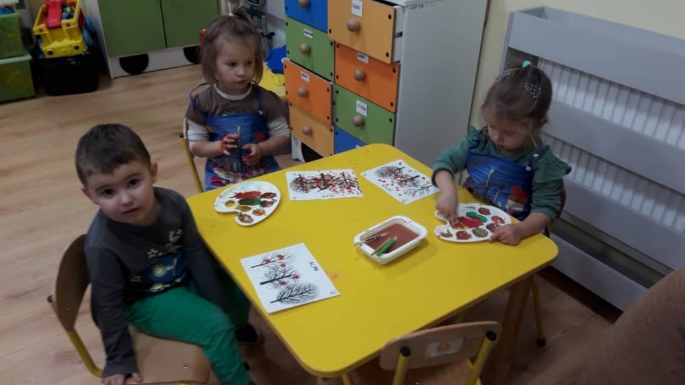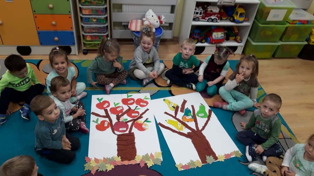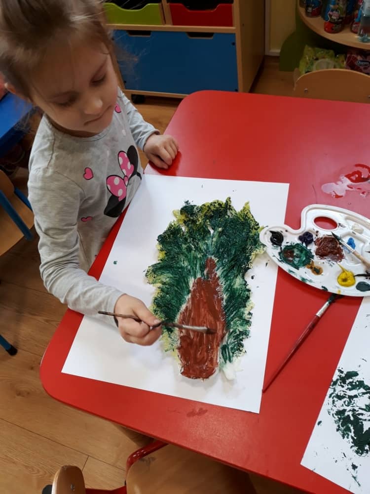 W dniu 10.10.2019 r. obchodziliśmy w przedszkolu Światowy Dzień Drzewa. Wszyscy w tym dniu przyszli ubrani w barwach zielono - brązowych. W korytarzu przedszkolnym przywitało wszystkich wyjątkowe drzewko, a na gazetce zamieszczono ciekawostki i informacje dotyczące Światowego Dnia Drzewa. Rodzice mogli także dowiedzieć się, jaki sposób można troszczyć się o drzewa i jak bardzo są one potrzebne wszystkim ludziom. Na zajęciach dzieci obejrzały film edukacyjny pt. „Las- zielone płuca Ziemi”. Ukazał on dzieciom jak należy dbać o las i jak cennym skarbem są drzewa- dają ludziom tlen, papier, chłód i wiele innych korzyści. Dzieci z grupy młodszej wyklejały plasteliną owoce na jabłoni i gruszy. Oprócz tego malowały paluszkiem kolorowy jesienny las. Dzieci z grupy starszej, malowały farbami i odbijały stemple. W ten sposób powstały piękne drzewa, które zaprezentowano na wystawie.