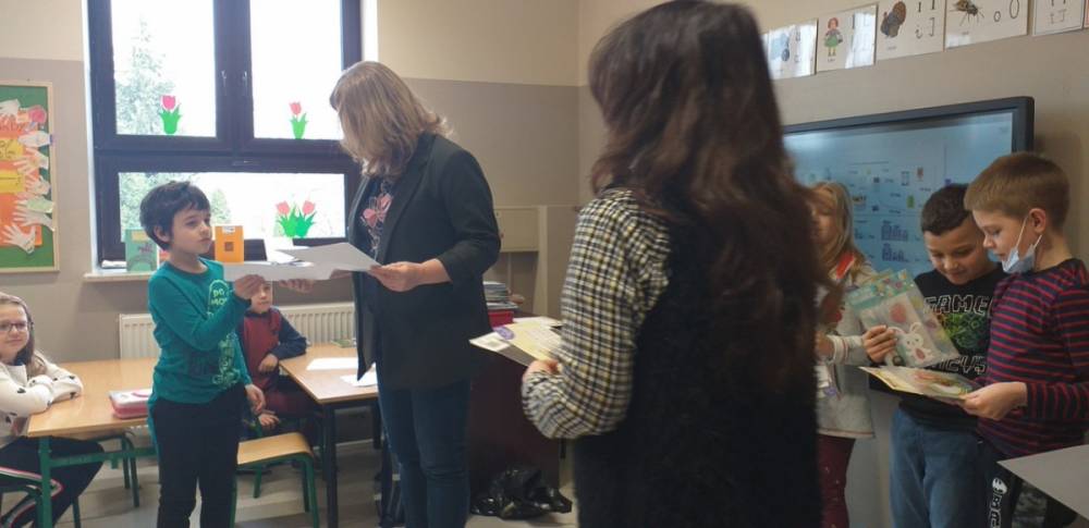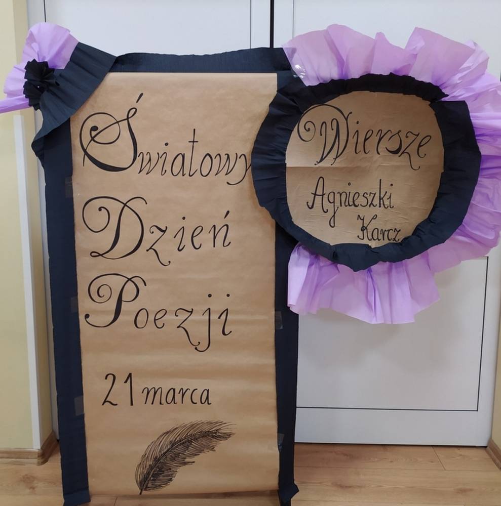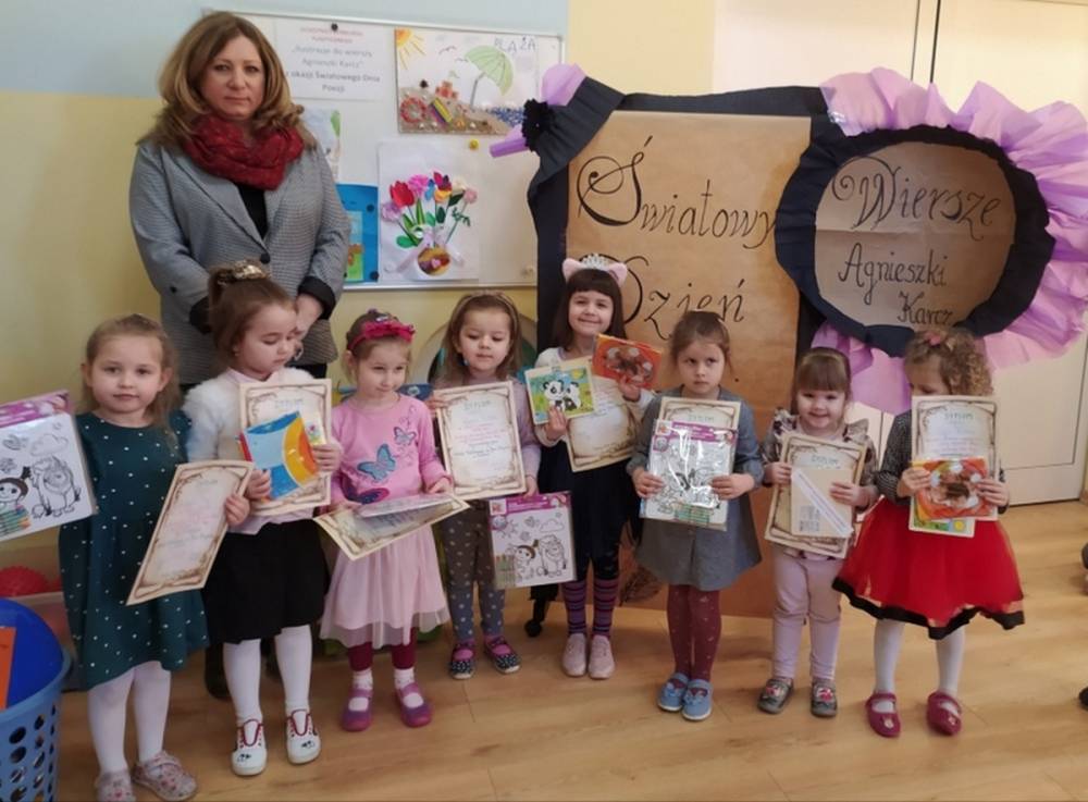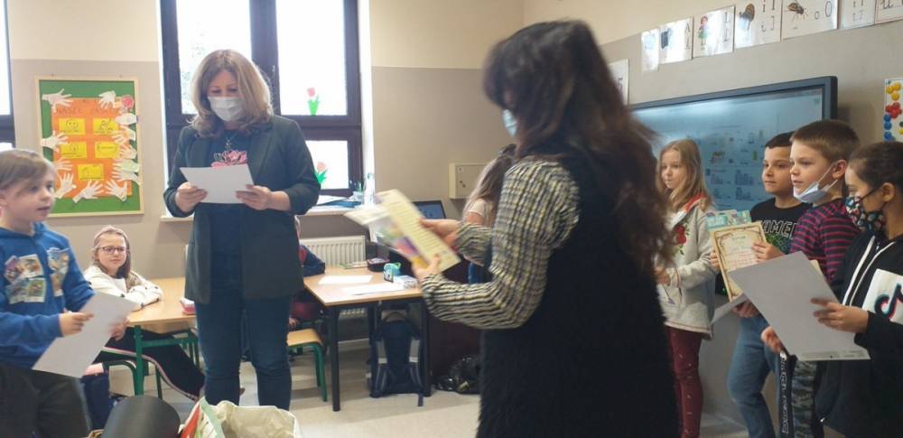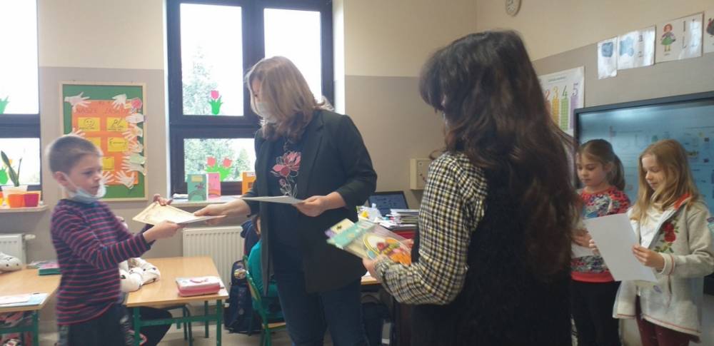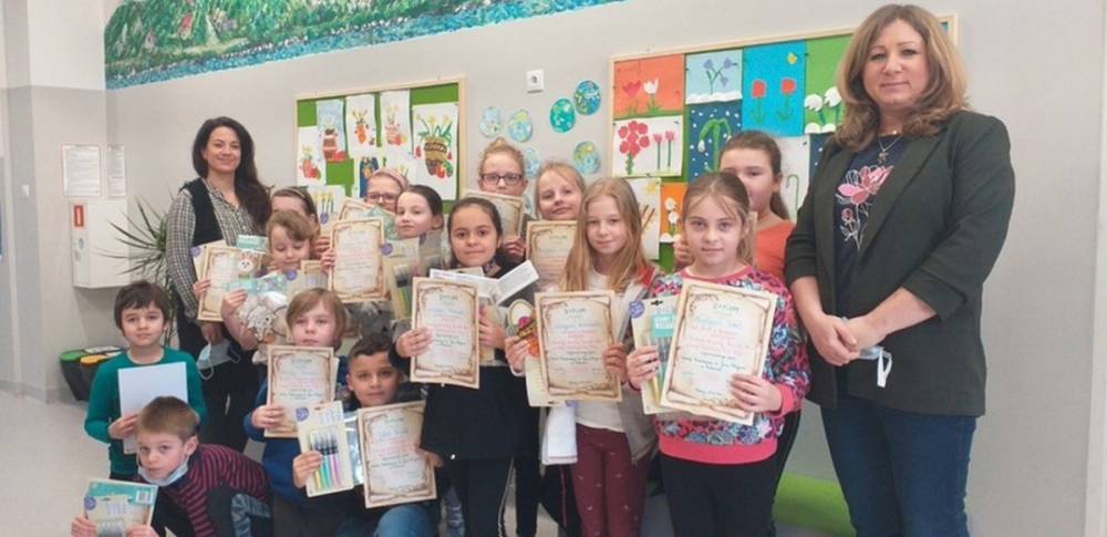 W dniu 22.03.2021 odbyła się uroczysta inauguracja konkursu plastyczno- recytatorskiego zorganizowanego z okazji obchodów Światowego Dnia Poezji. Inicjatorką konkursu była nauczycielka Agnieszka Karcz. To właśnie jej autorskie wiersze, były inspiracją dla twórczości plastycznej dzieci oraz recytatorskim wyzwaniem. W konkursie wzięło udział 26 dzieci. Recytacja wierszy odbyła się w formie stacjonarnej oraz online przy użyciu komunikatora Teams. Prace plastyczne zostały zaprezentowane na wystawach zorganizowanych w szkole i przedszkolu oraz w galerii wirtualnej. Wszyscy uczestnicy konkursu otrzymali pamiątkowe dyplomy i upominki, które uroczyście wręczone zostały przez Panią Dyrektor i autorkę wierszy Agnieszkę Karcz.