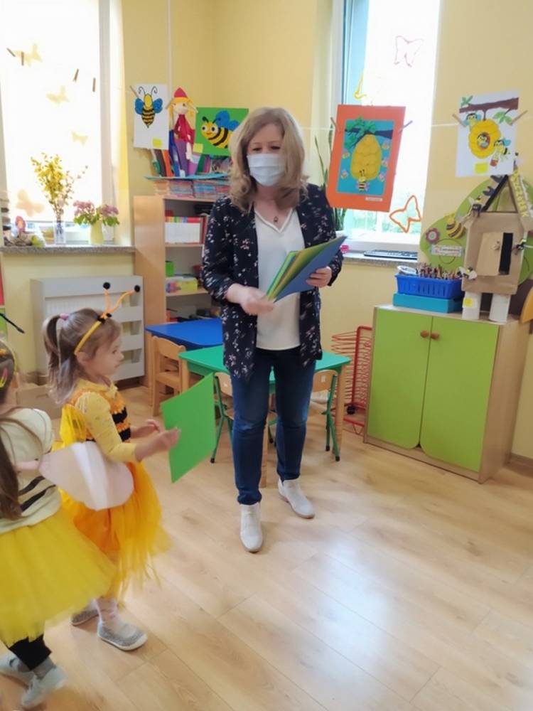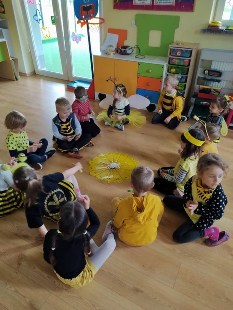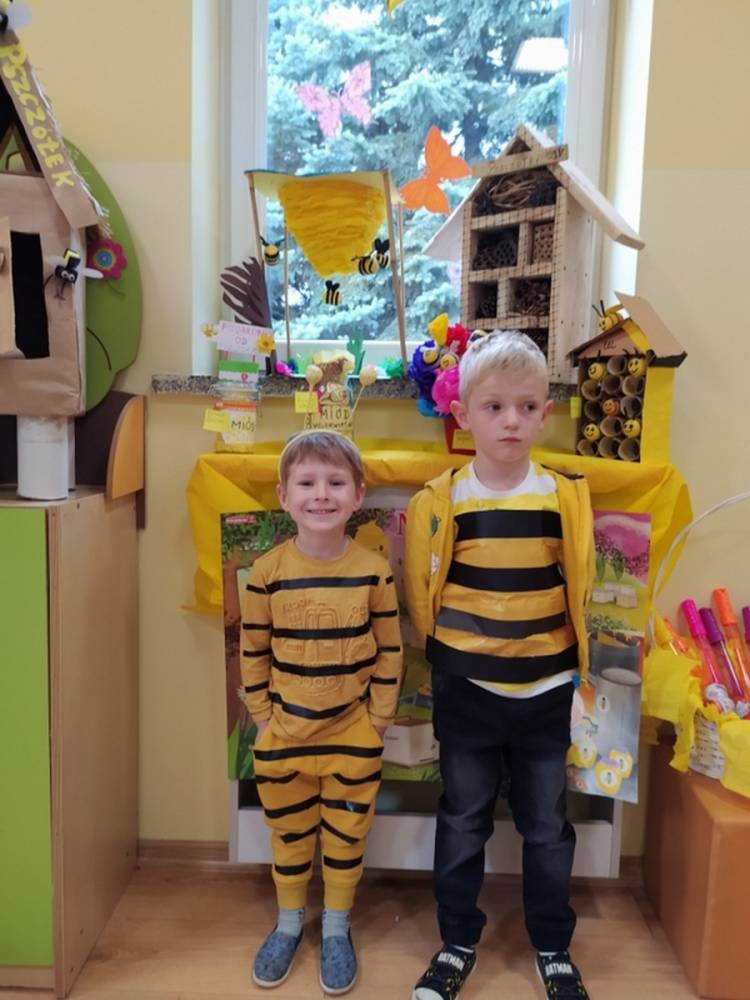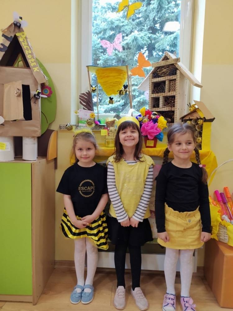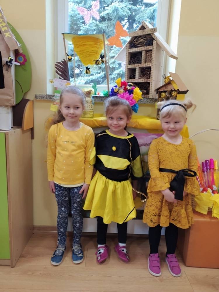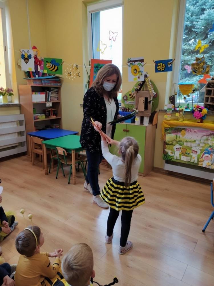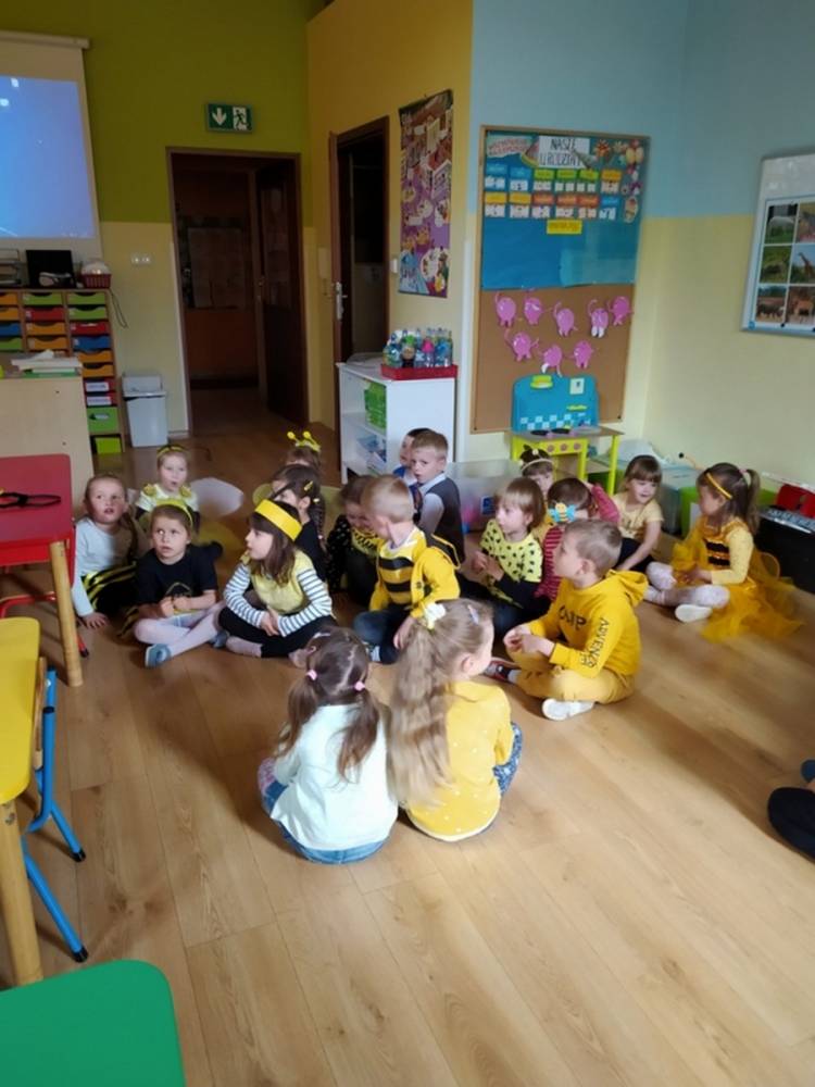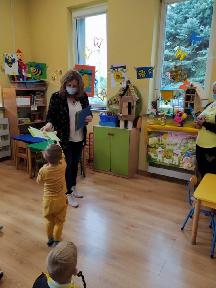 Światowy Dzień Pszczoły to dla naszych przedszkolaków bardzo ważne wydarzenie. W dniu 20.05.2021 przypomnieliśmy sobie o tym, jak ważną rolę odgrywają pszczoły w życiu człowieka oraz o tym, jak powstaje miód, który dostarcza nam walorów smakowych i zdrowotnych. Dzieci wysłuchały wiersza o pszczołach oraz same wczuły się w rolę tych niezwykle pracowitych owadów. Zabawy ruchowe były wspaniałą okazją do zaprezentowania swoich sprawności ruchowych oraz swojego pięknego przebrania. W tym dniu odwiedziła dzieci Pani Dyrektor, by nagrodzić wszystkich uczestników konkursu plastycznego zatytułowanego „Podarunki od pszczółki”. Wręczenie dyplomów i upominków odbyło się przy zorganizowanej wystawie prac konkursowych.