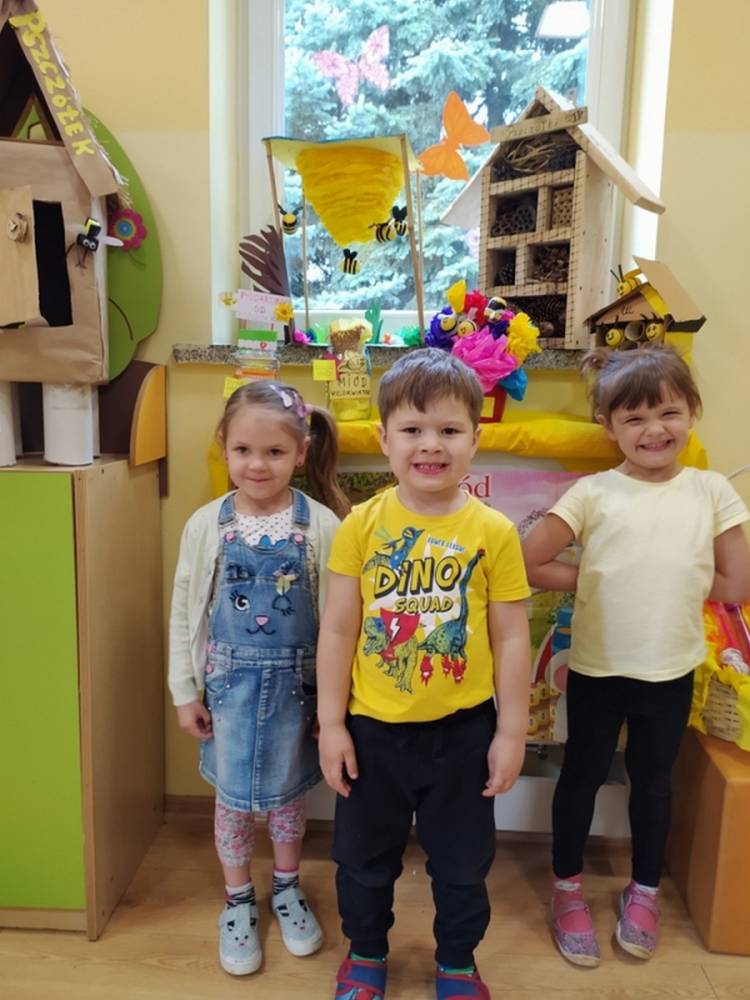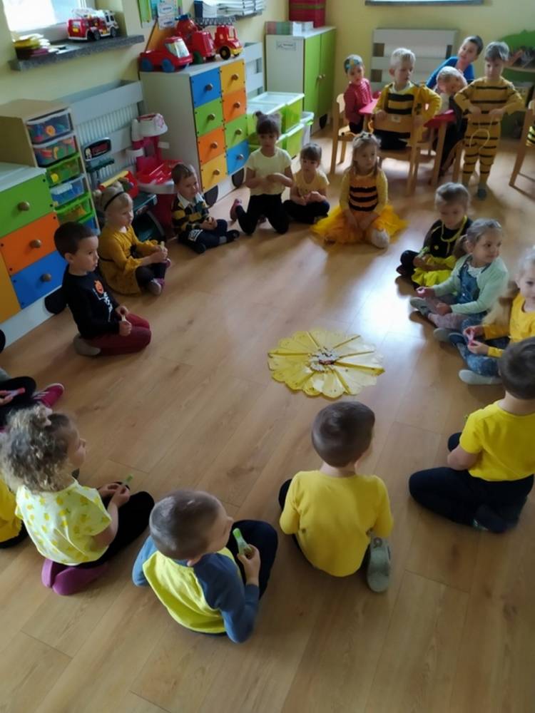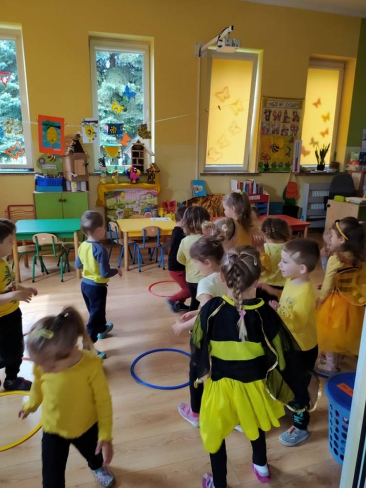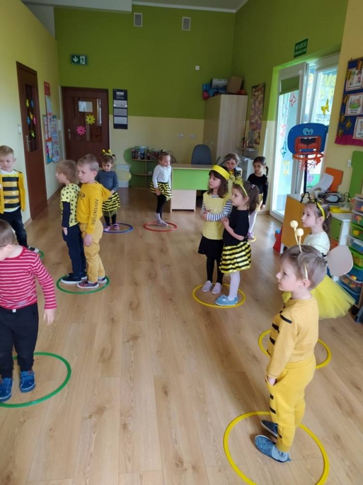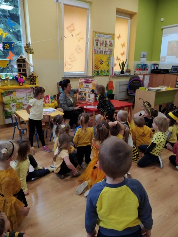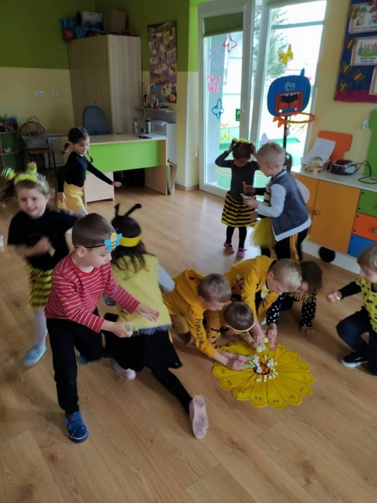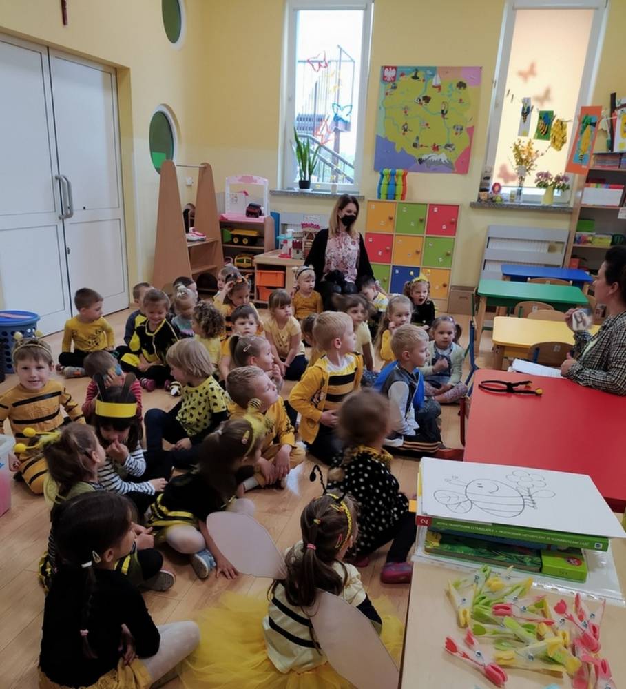 Światowy Dzień Pszczoły to dla naszych przedszkolaków bardzo ważne wydarzenie. W dniu 20.05.2021 przypomnieliśmy sobie o tym, jak ważną rolę odgrywają pszczoły w życiu człowieka oraz o tym, jak powstaje miód, który dostarcza nam walorów smakowych i zdrowotnych. Dzieci wysłuchały wiersza o pszczołach oraz same wczuły się w rolę tych niezwykle pracowitych owadów. Zabawy ruchowe były wspaniałą okazją do zaprezentowania swoich sprawności ruchowych oraz swojego pięknego przebrania. W tym dniu odwiedziła dzieci Pani Dyrektor, by nagrodzić wszystkich uczestników konkursu plastycznego zatytułowanego „Podarunki od pszczółki”. Wręczenie dyplomów i upominków odbyło się przy zorganizowanej wystawie prac konkursowych.