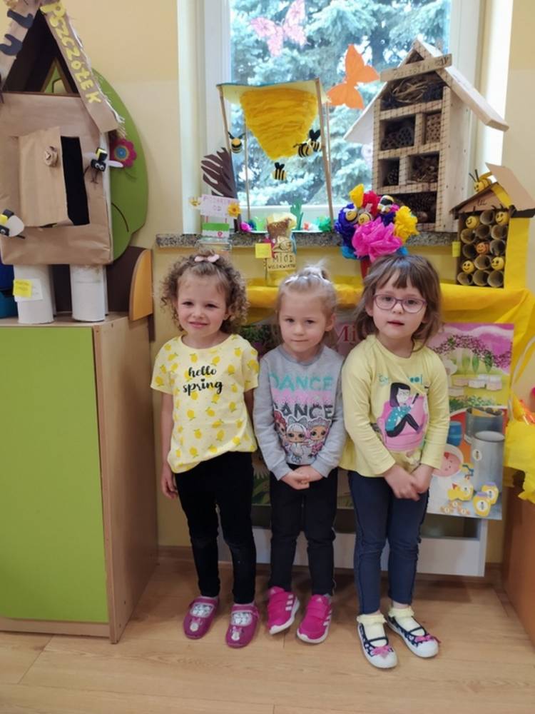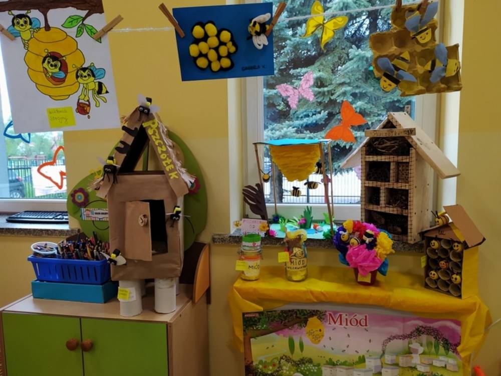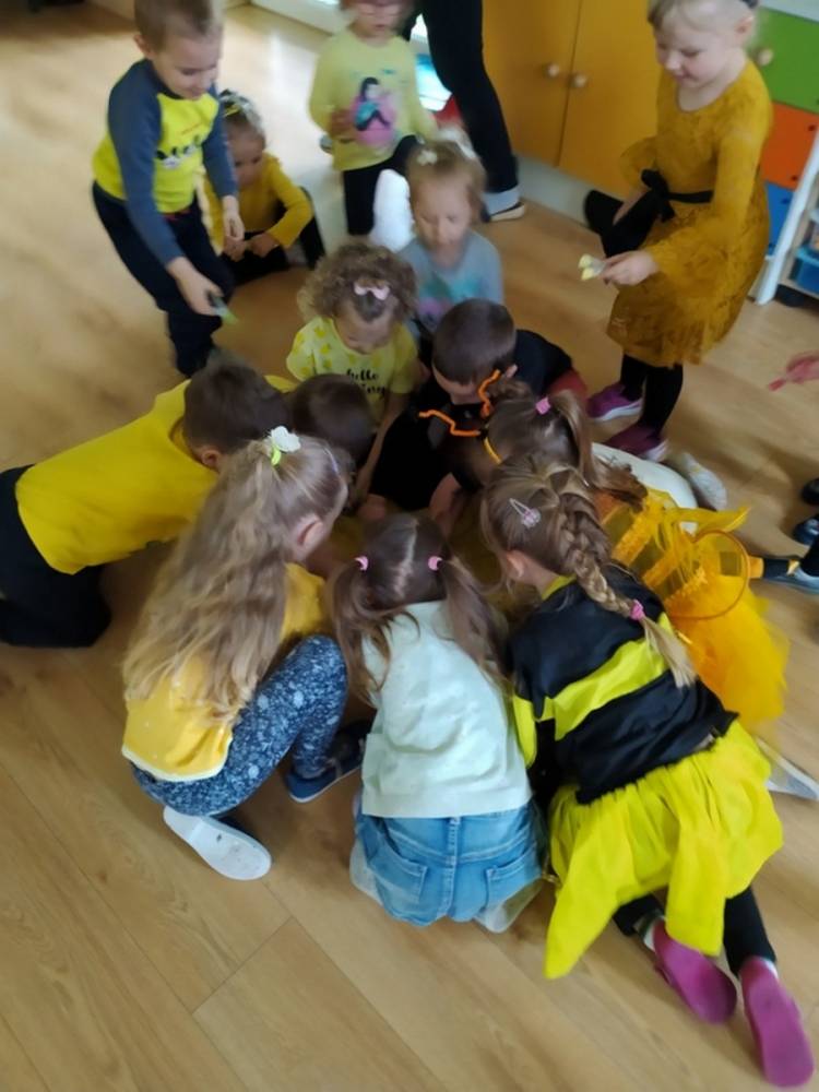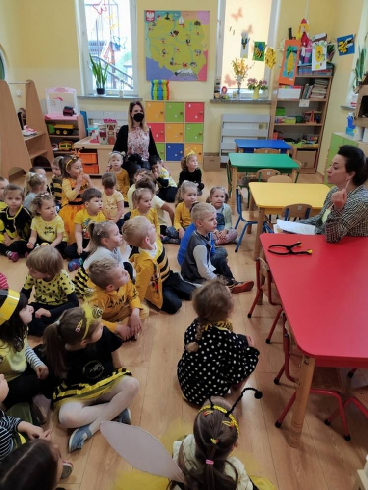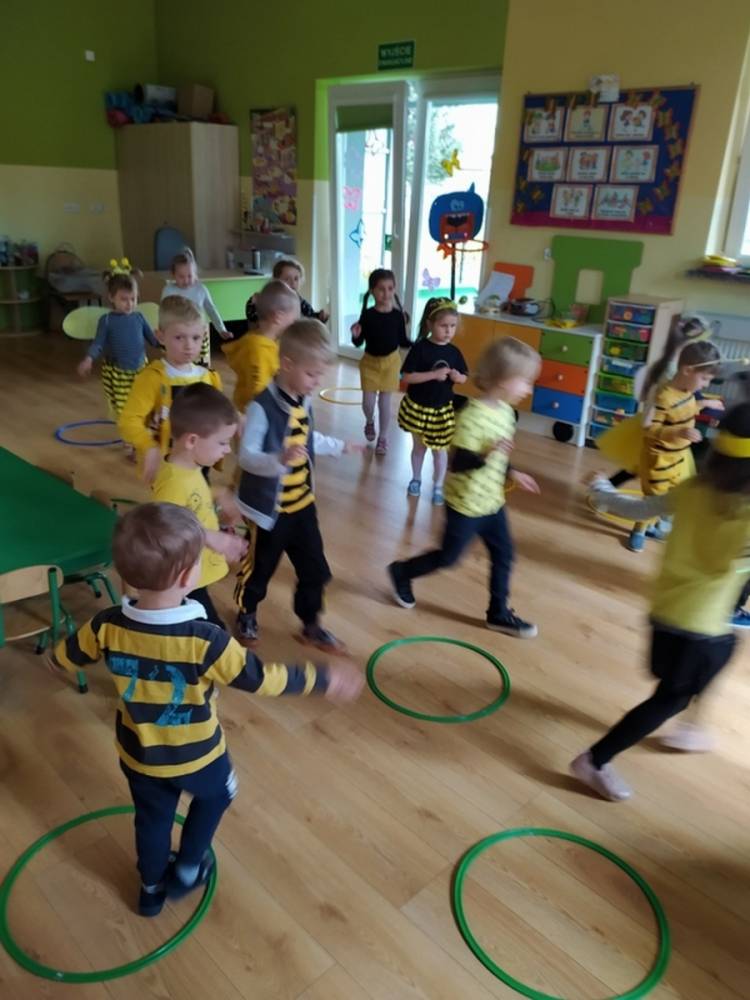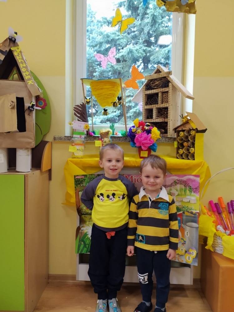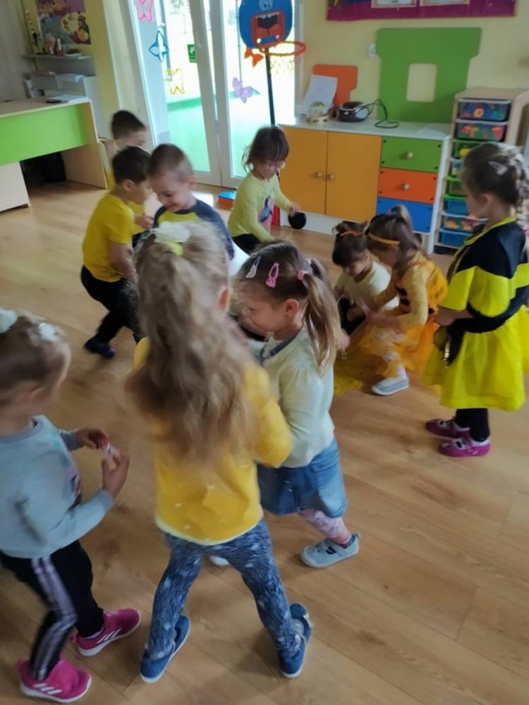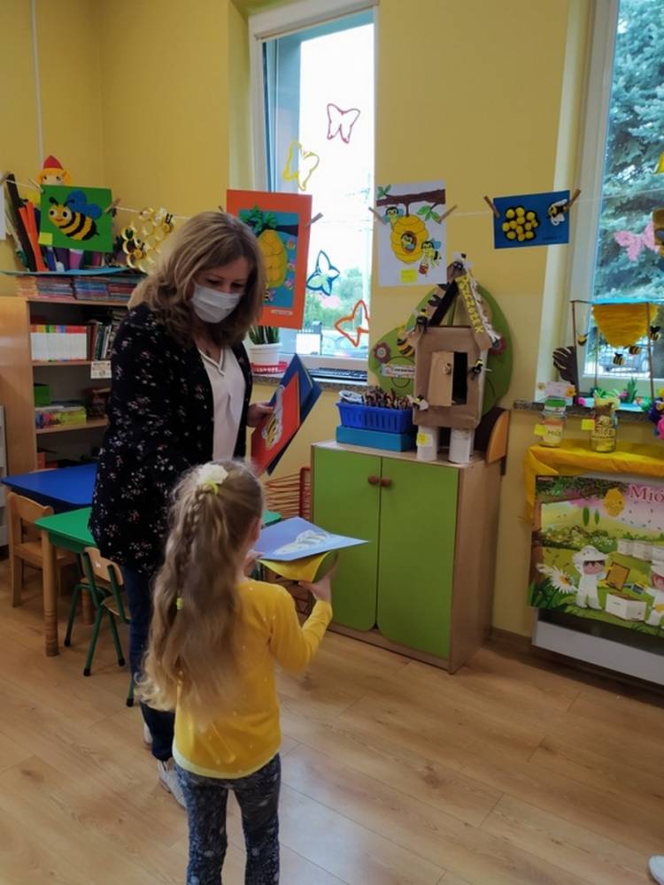 Światowy Dzień Pszczoły to dla naszych przedszkolaków bardzo ważne wydarzenie. W dniu 20.05.2021 przypomnieliśmy sobie o tym, jak ważną rolę odgrywają pszczoły w życiu człowieka oraz o tym, jak powstaje miód, który dostarcza nam walorów smakowych i zdrowotnych. Dzieci wysłuchały wiersza o pszczołach oraz same wczuły się w rolę tych niezwykle pracowitych owadów. Zabawy ruchowe były wspaniałą okazją do zaprezentowania swoich sprawności ruchowych oraz swojego pięknego przebrania. W tym dniu odwiedziła dzieci Pani Dyrektor, by nagrodzić wszystkich uczestników konkursu plastycznego zatytułowanego „Podarunki od pszczółki”. Wręczenie dyplomów i upominków odbyło się przy zorganizowanej wystawie prac konkursowych.