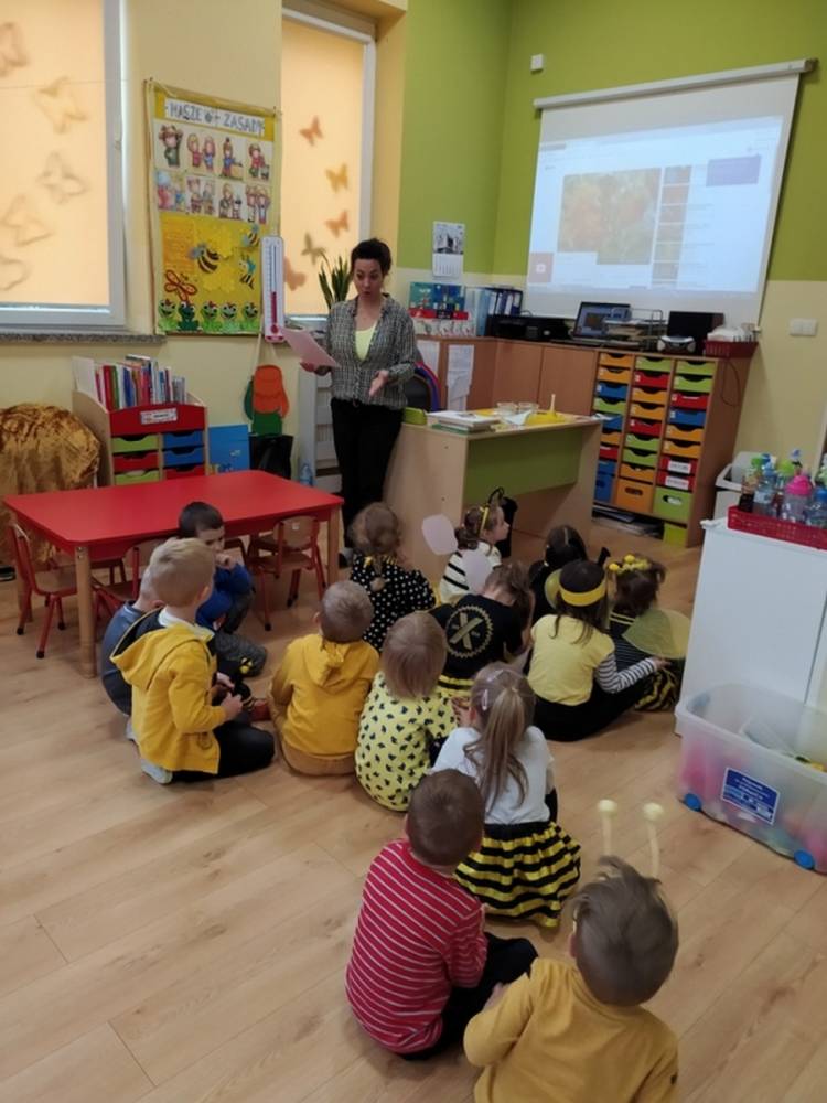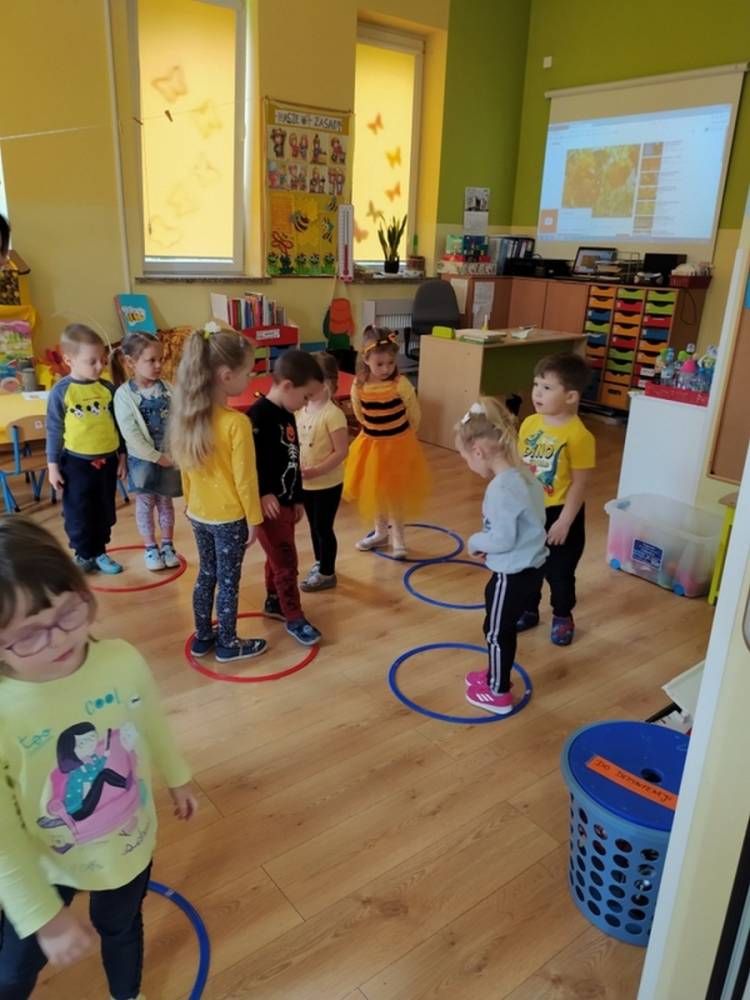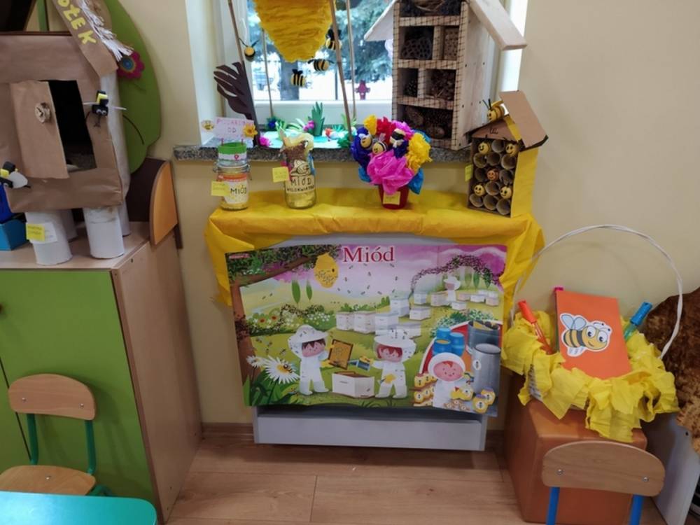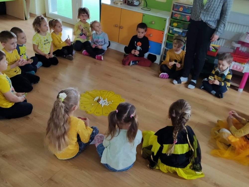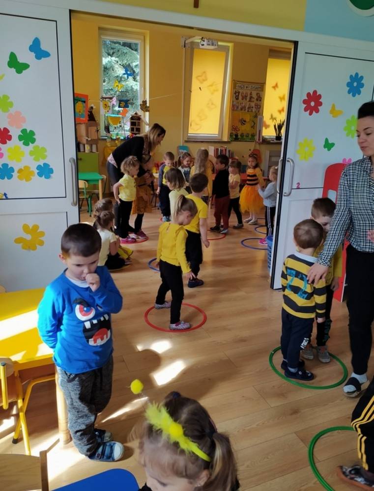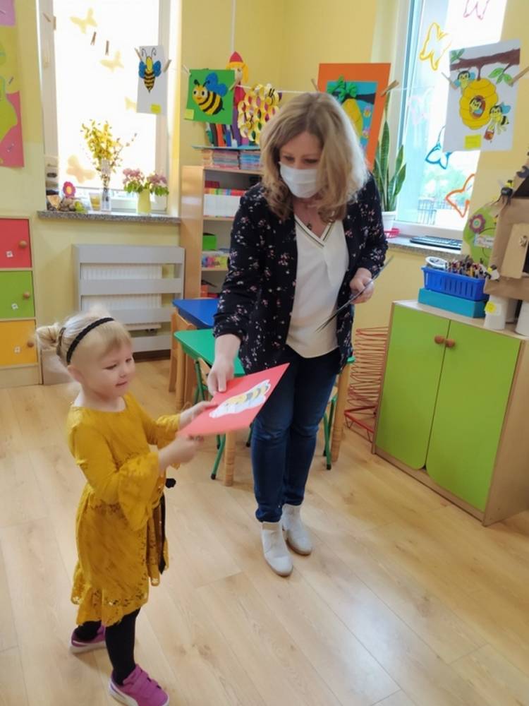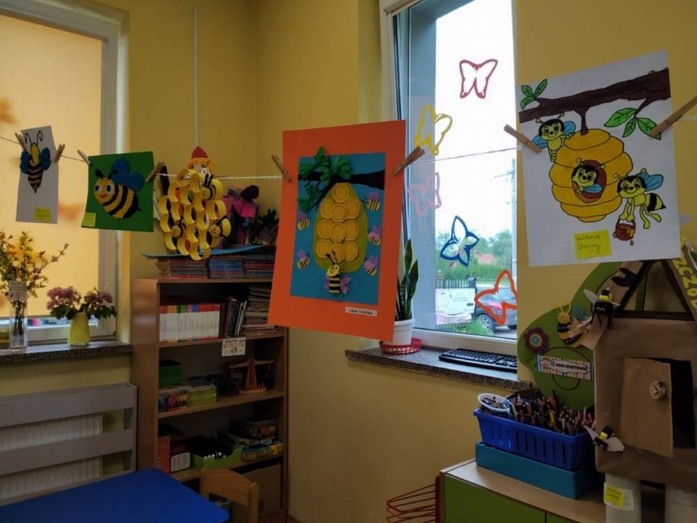 Światowy Dzień Pszczoły to dla naszych przedszkolaków bardzo ważne wydarzenie. W dniu 20.05.2021 przypomnieliśmy sobie o tym, jak ważną rolę odgrywają pszczoły w życiu człowieka oraz o tym, jak powstaje miód, który dostarcza nam walorów smakowych i zdrowotnych. Dzieci wysłuchały wiersza o pszczołach oraz same wczuły się w rolę tych niezwykle pracowitych owadów. Zabawy ruchowe były wspaniałą okazją do zaprezentowania swoich sprawności ruchowych oraz swojego pięknego przebrania. W tym dniu odwiedziła dzieci Pani Dyrektor, by nagrodzić wszystkich uczestników konkursu plastycznego zatytułowanego „Podarunki od pszczółki”. Wręczenie dyplomów i upominków odbyło się przy zorganizowanej wystawie prac konkursowych.