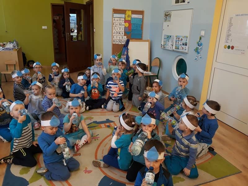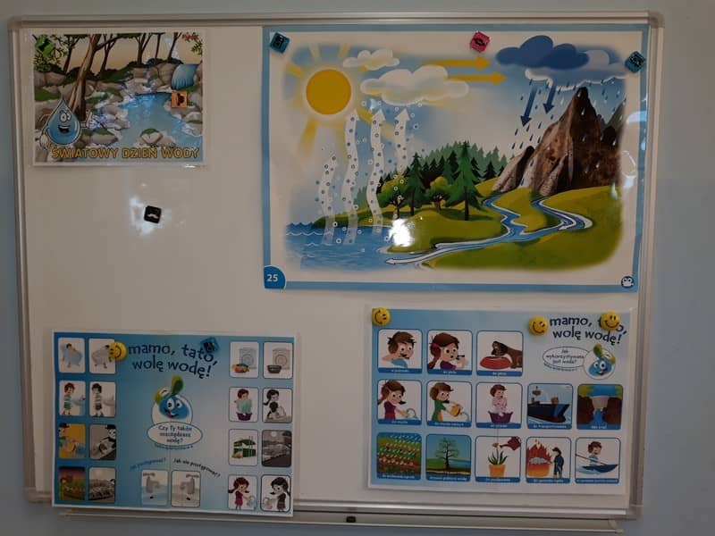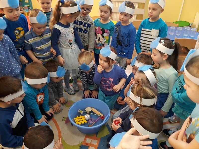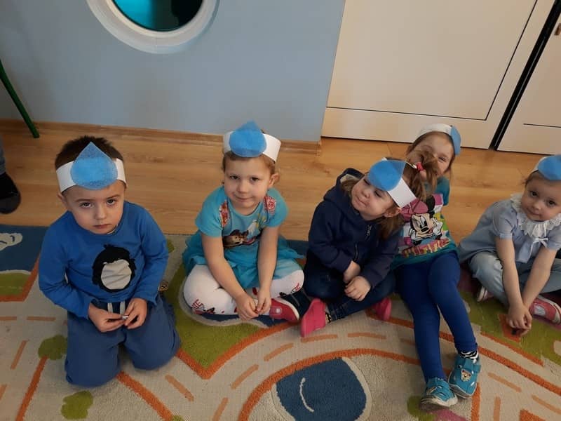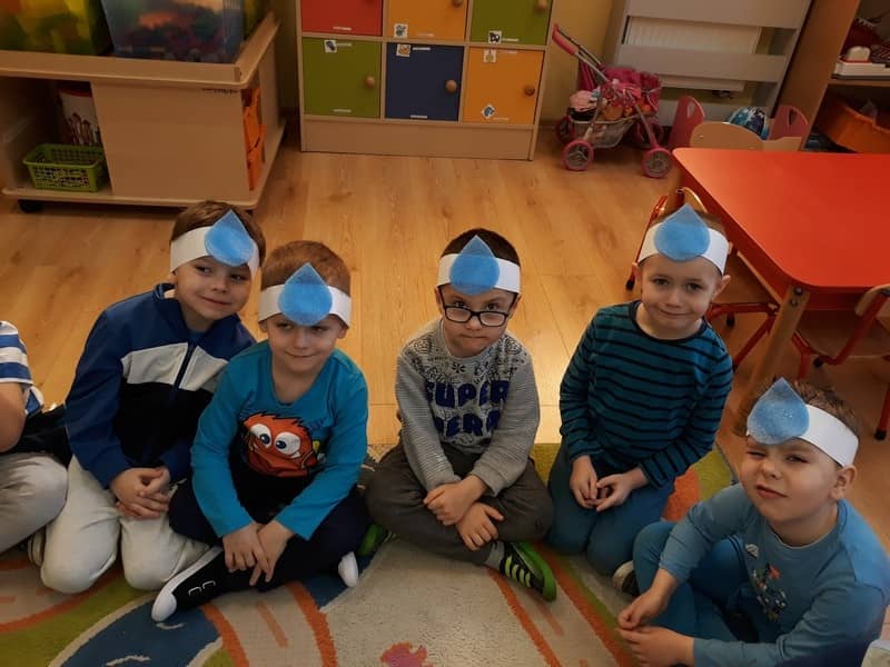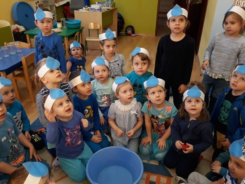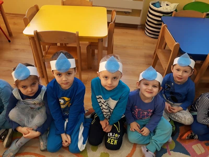 22 marca dzieci z grupy „Tygrysków” i „Pracowitych pszczółek” obchodziły „Światowy Dzień Wody”. Zajęcia dydaktyczne przeprowadzone w tym dniu uświadomiły przedszkolakom jak wielkie znaczenie ma woda w przyrodzie i jak ważne jest jej oszczędzanie. Przedszkolaki uczestniczyły w zabawach badawczych oraz wykonywały doświadczenia z wodą. Najwięcej radości sprawiło wytwarzanie bąbelków z wody. W tym dniu przewodnim kolorem był niebieski.