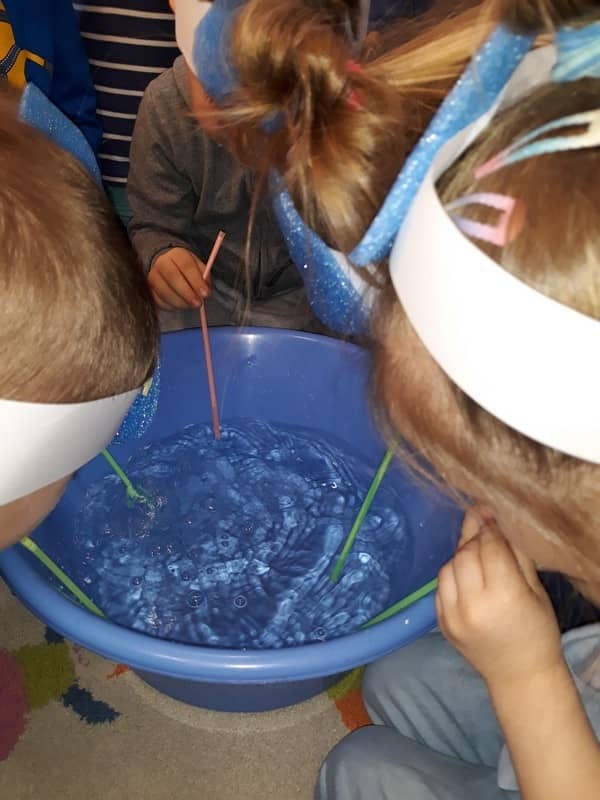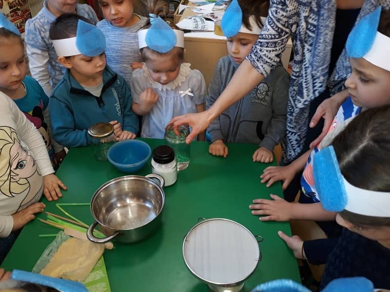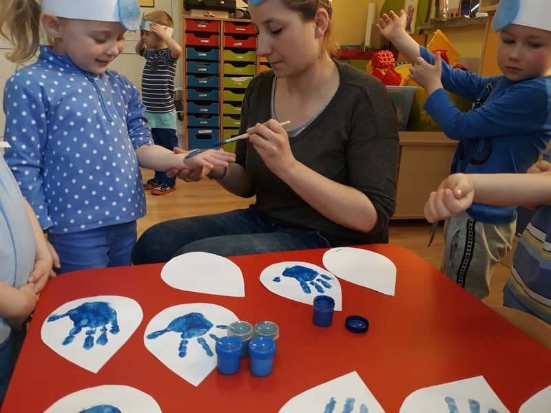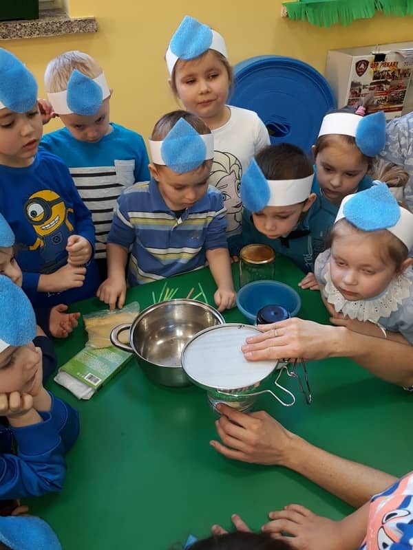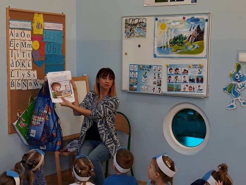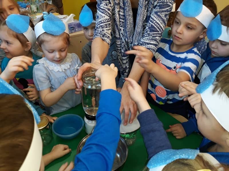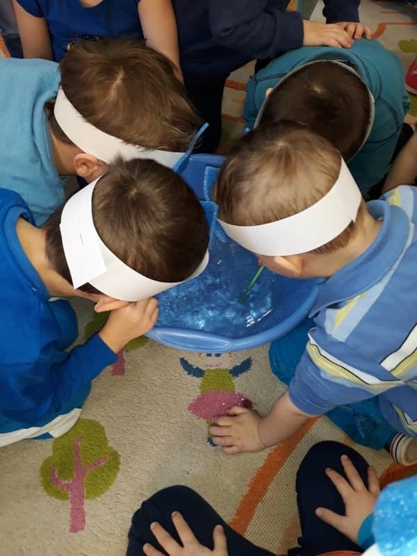 22 marca dzieci z grupy „Tygrysków” i „Pracowitych pszczółek” obchodziły „Światowy Dzień Wody”. Zajęcia dydaktyczne przeprowadzone w tym dniu uświadomiły przedszkolakom jak wielkie znaczenie ma woda w przyrodzie i jak ważne jest jej oszczędzanie. Przedszkolaki uczestniczyły w zabawach badawczych oraz wykonywały doświadczenia z wodą. Najwięcej radości sprawiło wytwarzanie bąbelków z wody. W tym dniu przewodnim kolorem był niebieski.