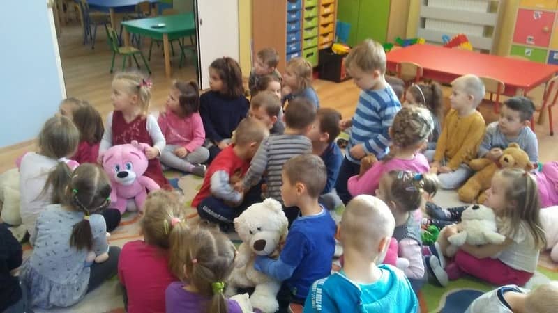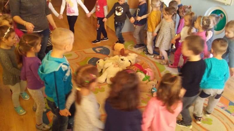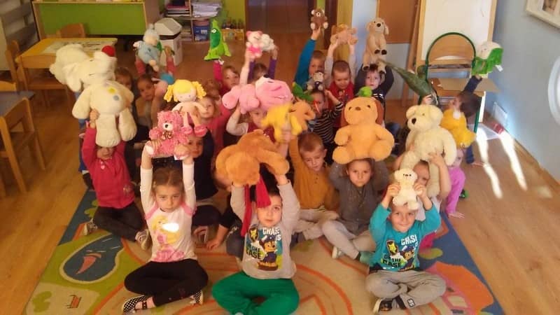 W piątkowe przedpołudnie w naszym przedszkolu obchodziliśmy Święto Pluszowego Misia. Wszystkie dzieci przyniosły w tym dniu swoje ulubione przytulanki. Poznawały historię powstania tego sympatycznego święta, technikę tworzenia misia od podstaw oraz wiele innych ciekawych informacji. Odtańczyliśmy misiowy taniec oraz bawiliśmy się w różne zabawy oczywiście z misiami. Ponadto wszystkim naszym pluszowym solenizantom dzieci odśpiewały huczne STO LAT!!! Na koniec wszystkie przedszkolaki wykonały swoje własne misie z torebek śniadaniowych i innych gotowych do przyklejenia elementów.