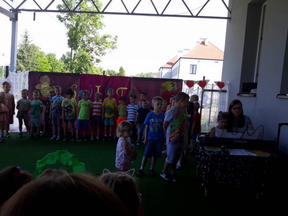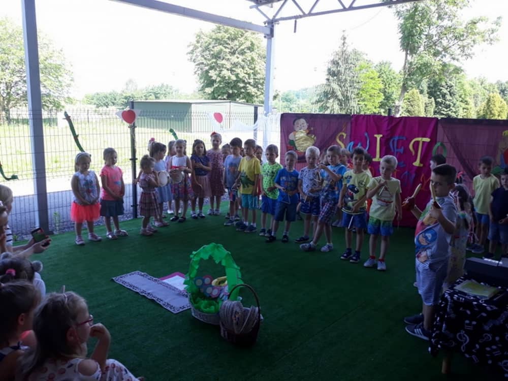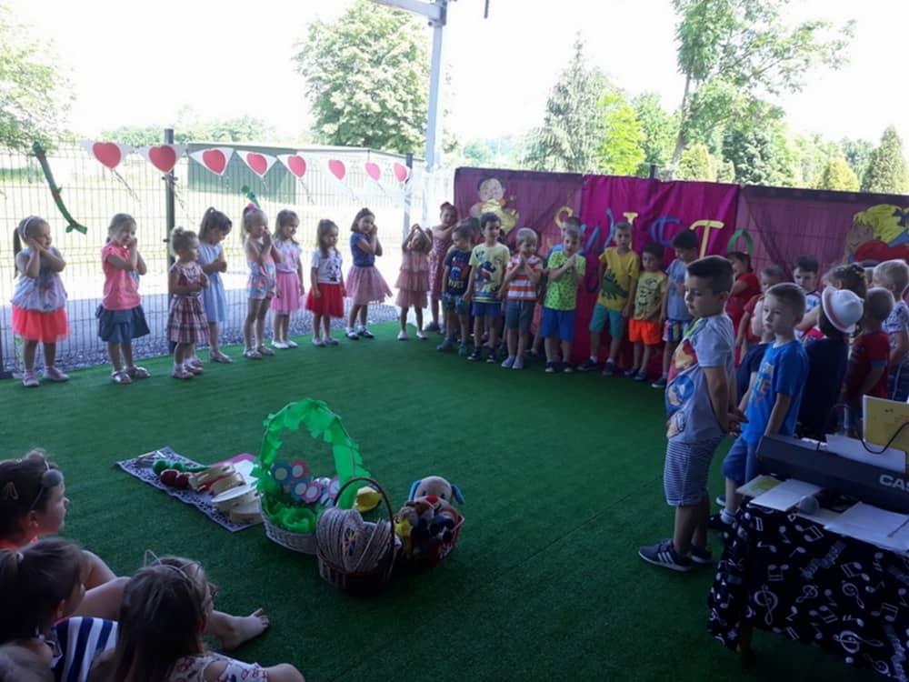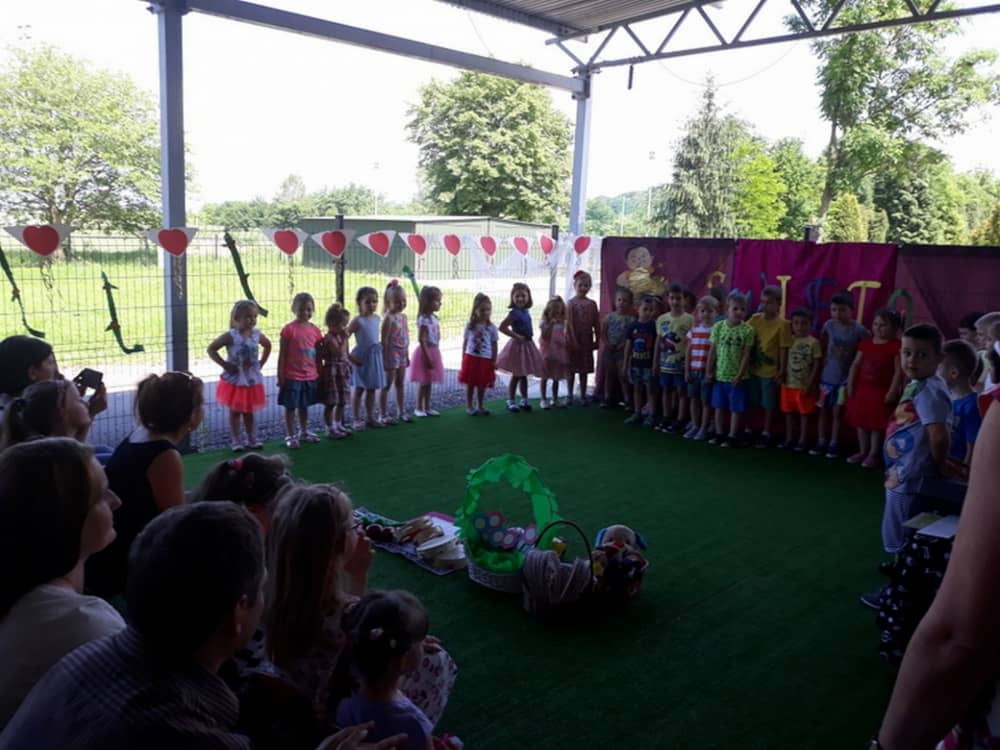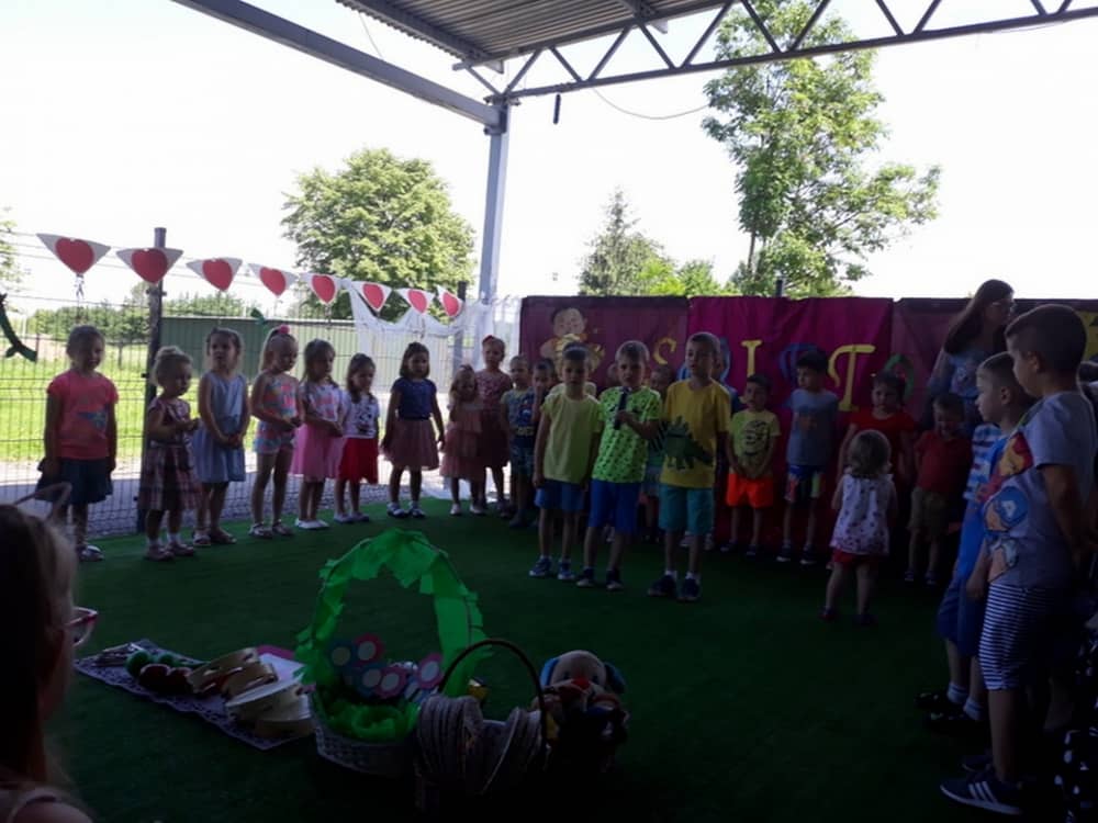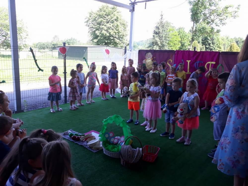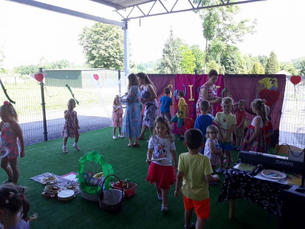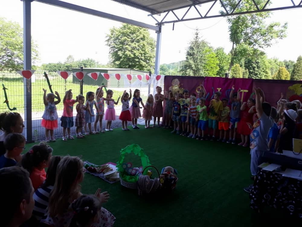 W dniu 07.06.2019 w naszym przedszkolu odbyła się Uroczystość z okazji Święta Rodziny. Do przedszkola przybyli wszyscy zaproszenie Rodzice, Pani Dyrektor oraz Strażacy. Dzieci z obu grup zaprezentowały taniec, śpiew oraz grę na instrumentach. W repertuarze ukazały się także piosenki w języku angielskim. Po występach, dzieci wręczyły swoim rodzicom upominki, a Pani Dyrektor podziękowała przybyłym Strażakom za wspaniałą inicjatywę na rzecz dzieci - taras zieloną trawką. Przestrzeń ta stała się, bowiem ulubionym miejscem do spędzania przez dzieci wolnego czasu na świeżym powietrzu. Oczywiście nie zabrakło pysznych ciast upieczonych przez rodziców oraz przekąsek. Wszyscy mogli skosztować je i najeść się do syta.