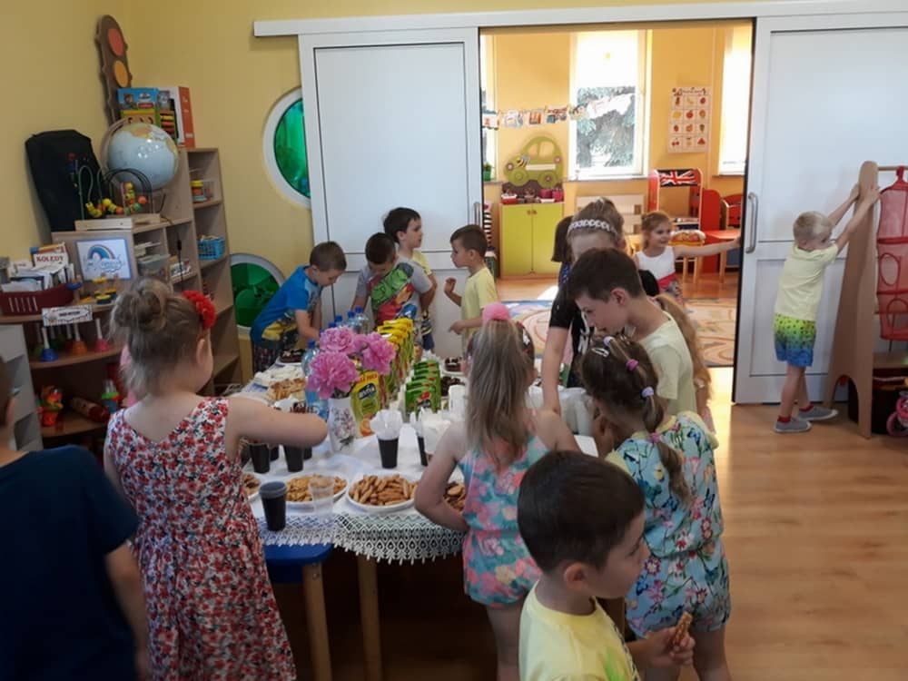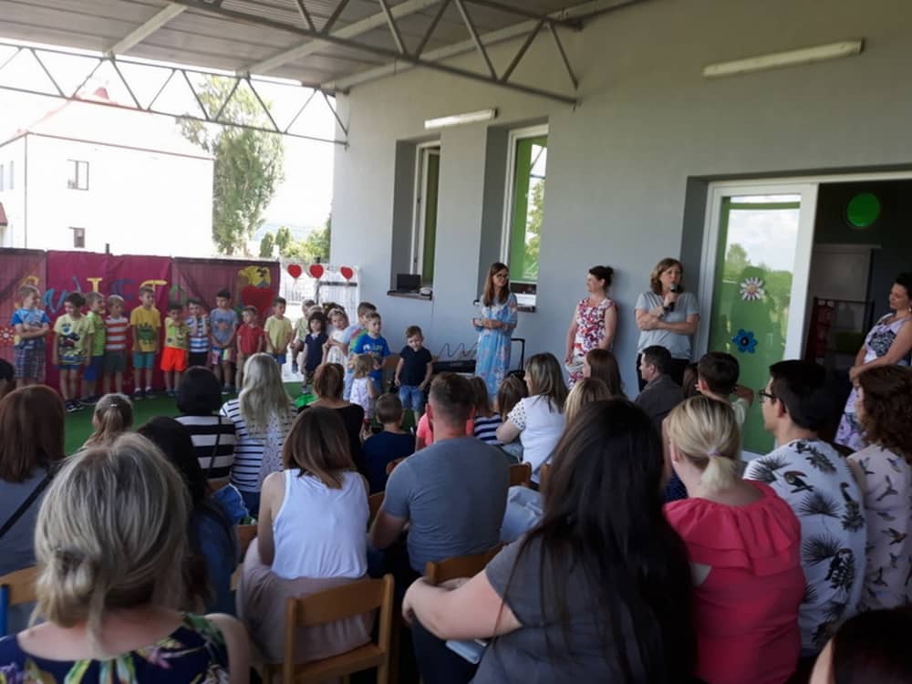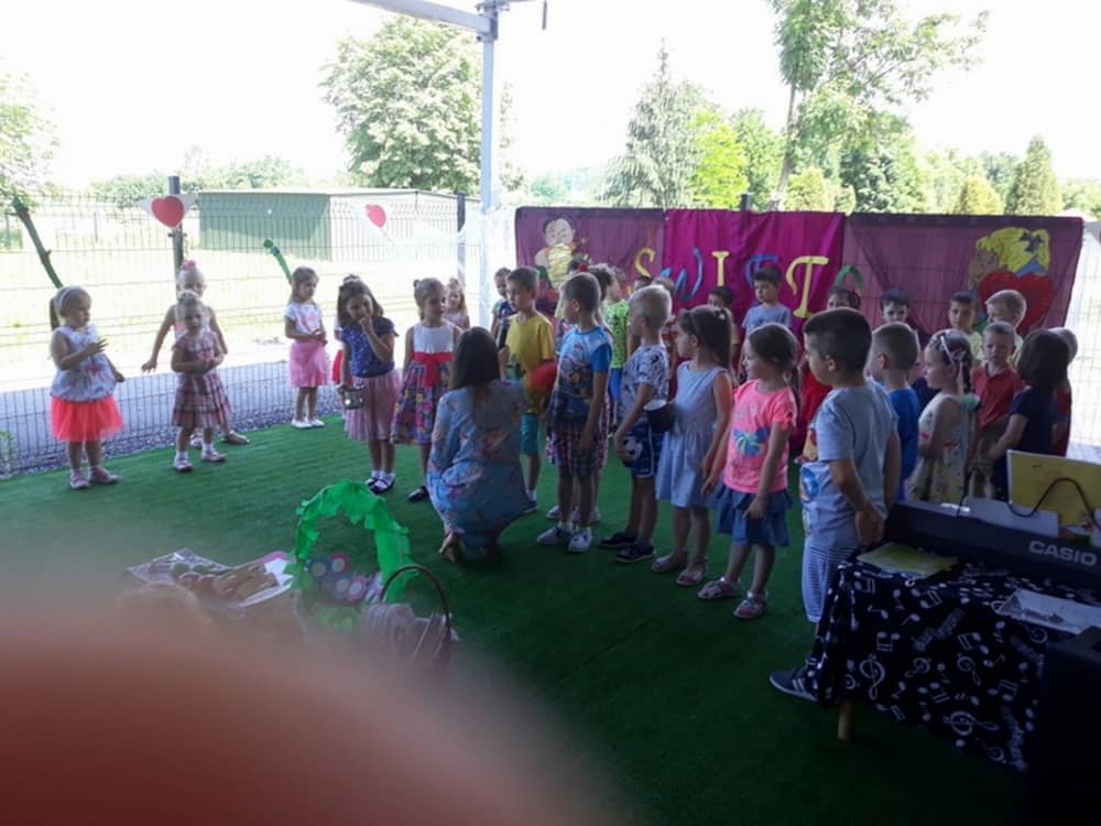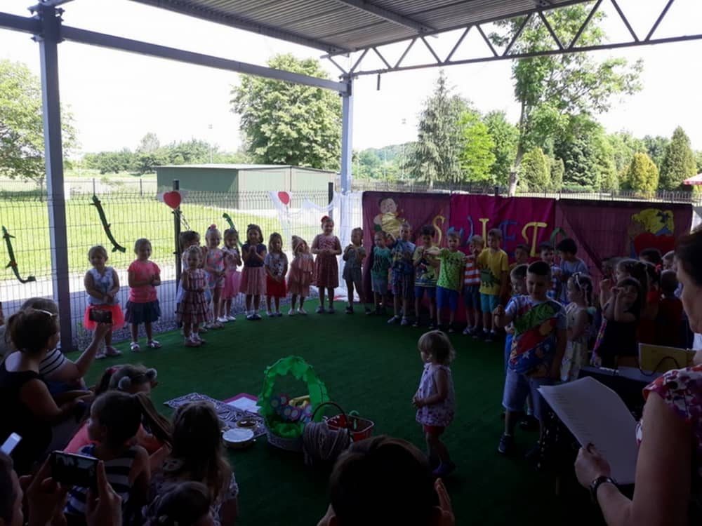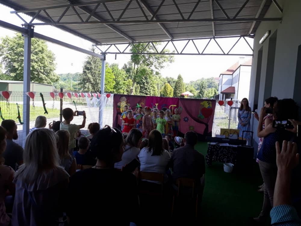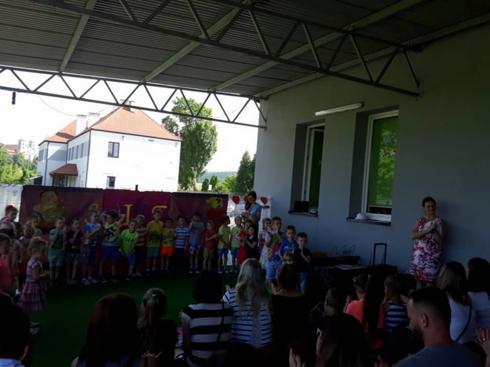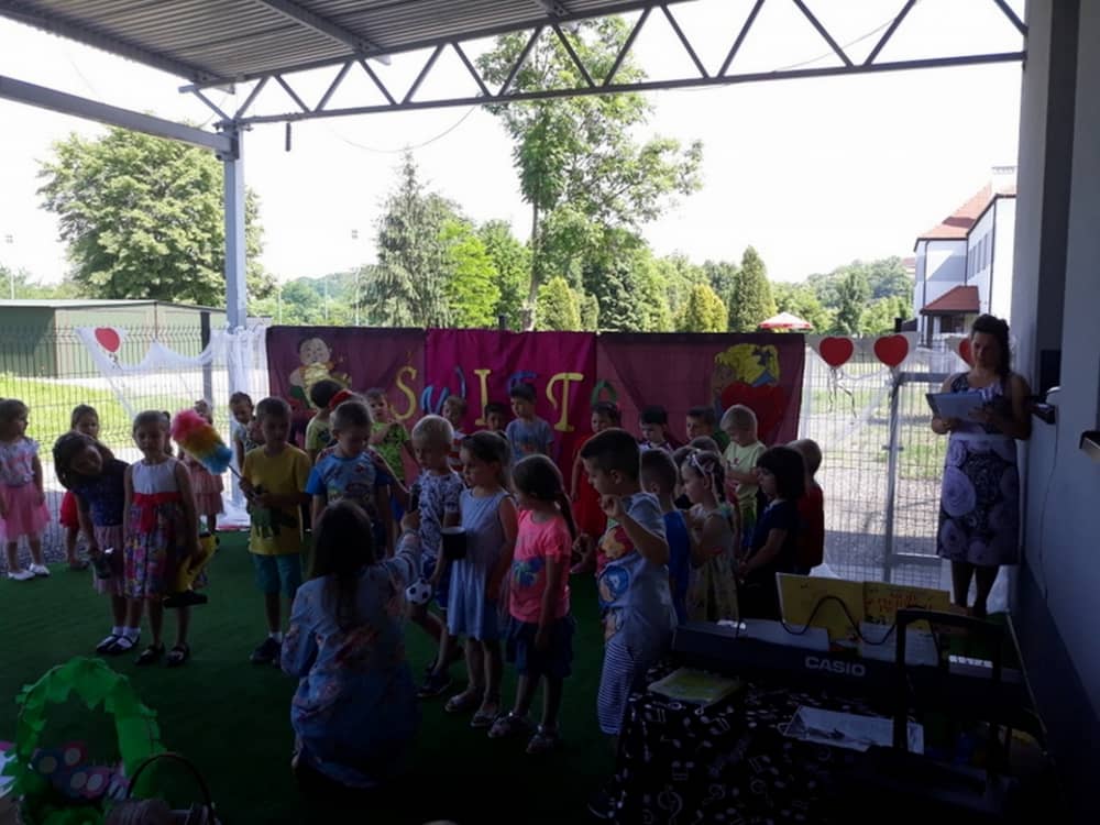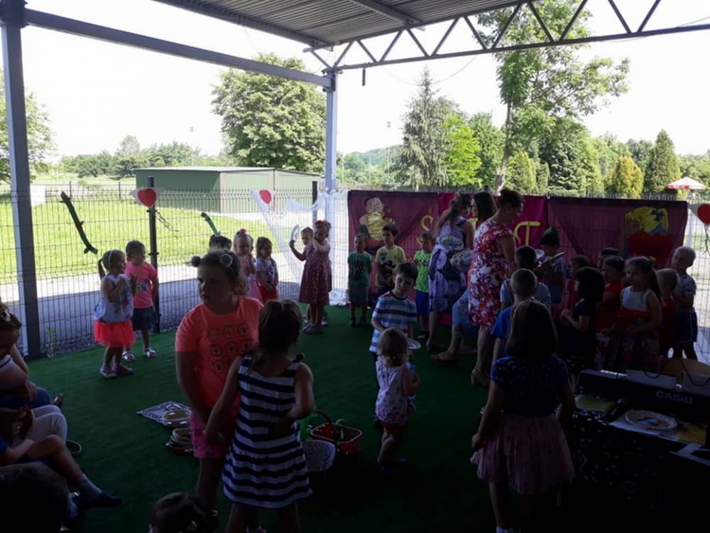 W dniu 07.06.2019 w naszym przedszkolu odbyła się Uroczystość z okazji Święta Rodziny. Do przedszkola przybyli wszyscy zaproszenie Rodzice, Pani Dyrektor oraz Strażacy. Dzieci z obu grup zaprezentowały taniec, śpiew oraz grę na instrumentach. W repertuarze ukazały się także piosenki w języku angielskim. Po występach, dzieci wręczyły swoim rodzicom upominki, a Pani Dyrektor podziękowała przybyłym Strażakom za wspaniałą inicjatywę na rzecz dzieci - taras zieloną trawką. Przestrzeń ta stała się, bowiem ulubionym miejscem do spędzania przez dzieci wolnego czasu na świeżym powietrzu. Oczywiście nie zabrakło pysznych ciast upieczonych przez rodziców oraz przekąsek. Wszyscy mogli skosztować je i najeść się do syta.