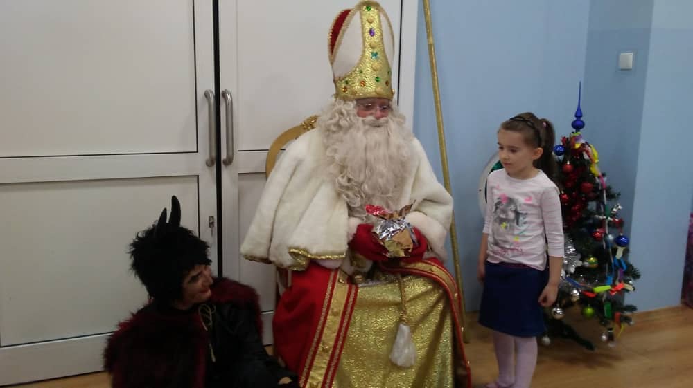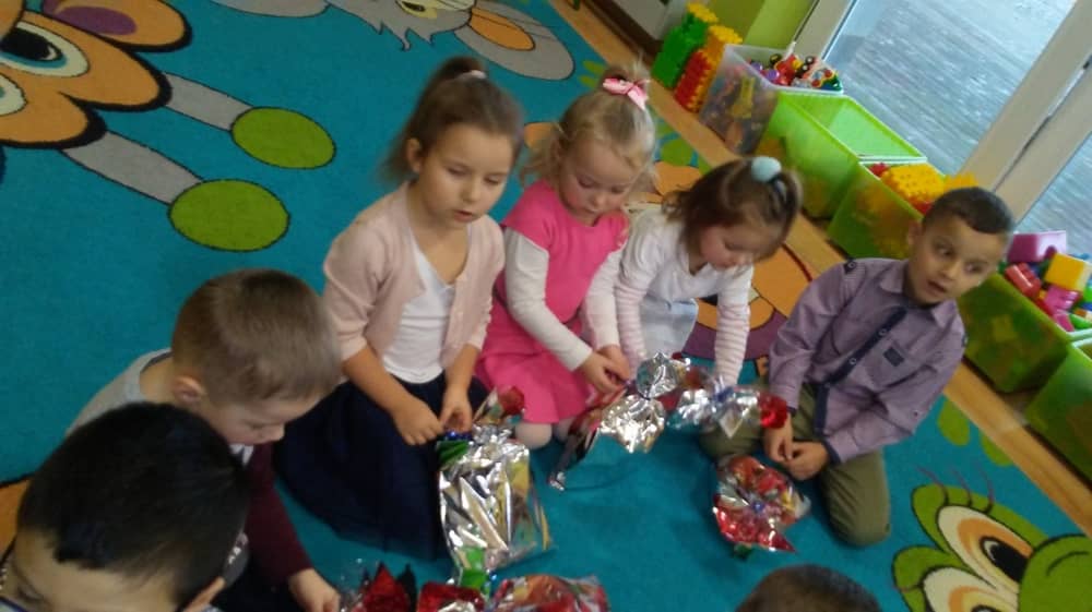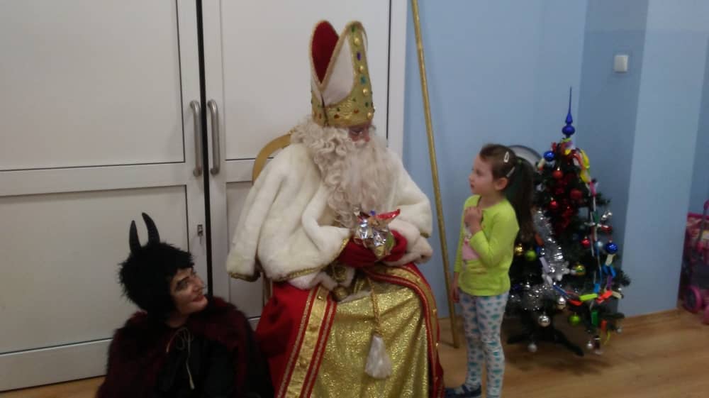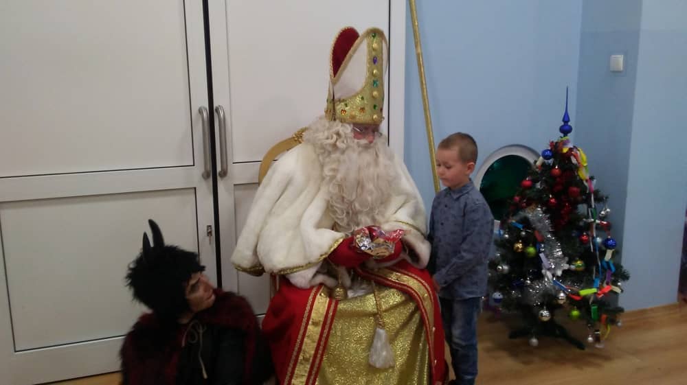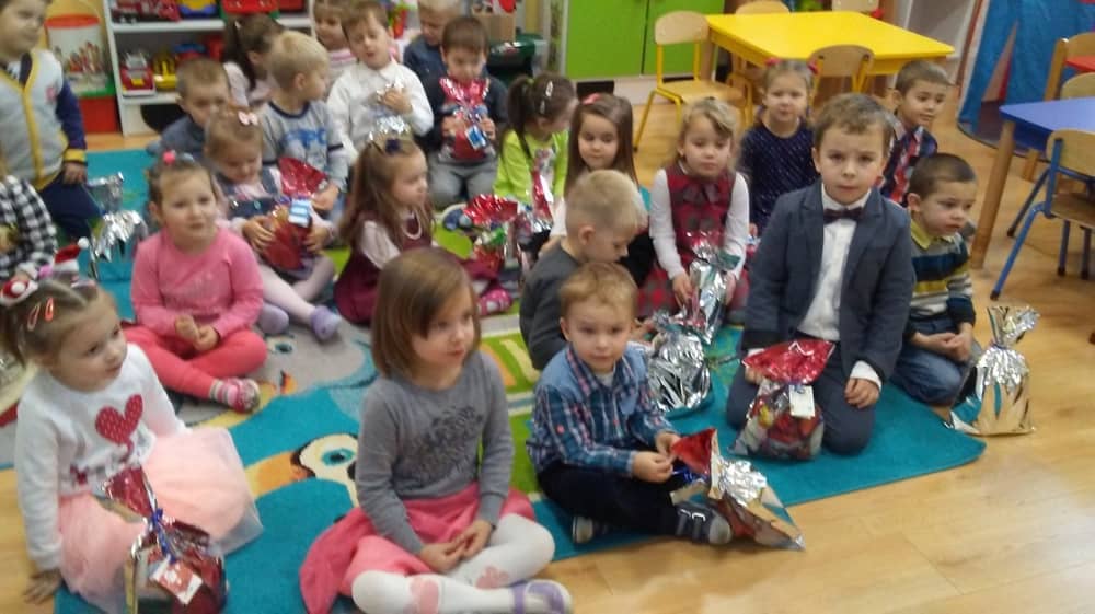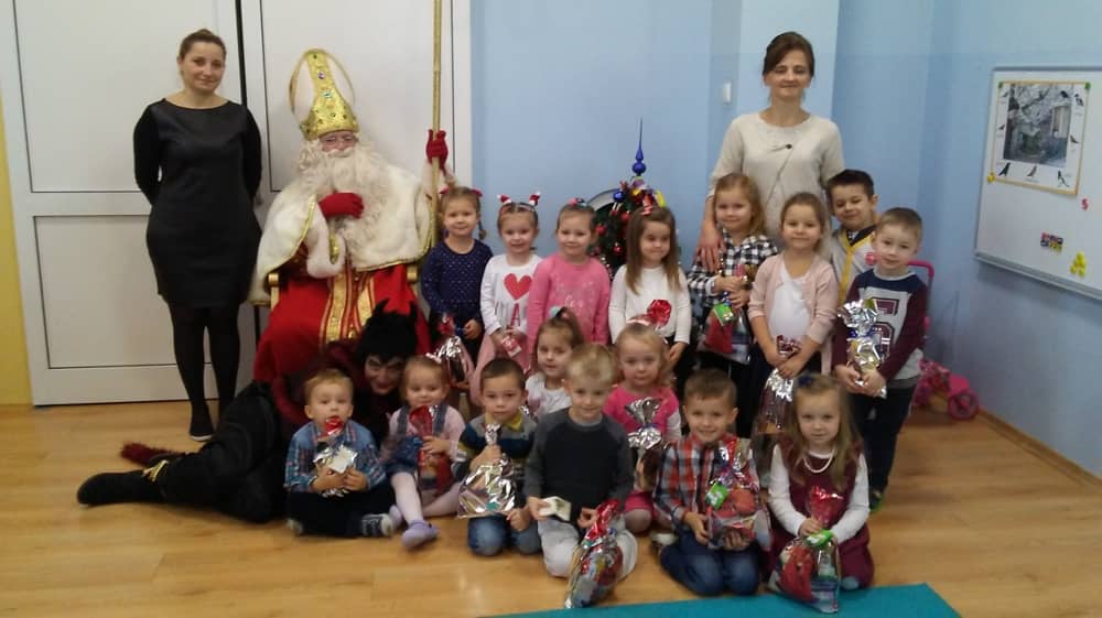 W dniu 07 grudnia do naszego przedszkola przybył bardzo wyjątkowy gość – ŚWIĘTY MIKOŁAJ. Towarzyszył mu złośliwy, ale bardzo śmieszny diabełek, który próbował zakłócić całą wizytę chowając worek Mikołaja pełen prezentów dla dzieci. Na szczęście w poszukiwaniach zaginionego worka pomogły nasze dzielne przedszkolaki. Szybko odzyskały worek z prezentami i przekazały go Mikołajowi razem ze złośliwym diabełkiem. Wszystkie prezenty szczęśliwie trafiły do dzieci, a diabełek sam pomagał w ich rozdawaniu. Radość i uśmiech na twarzach dzieci w tym pięknym dniu były ogromne, aż miło popatrzeć…