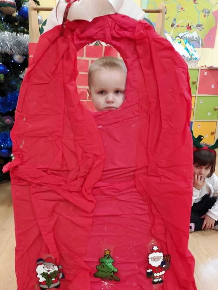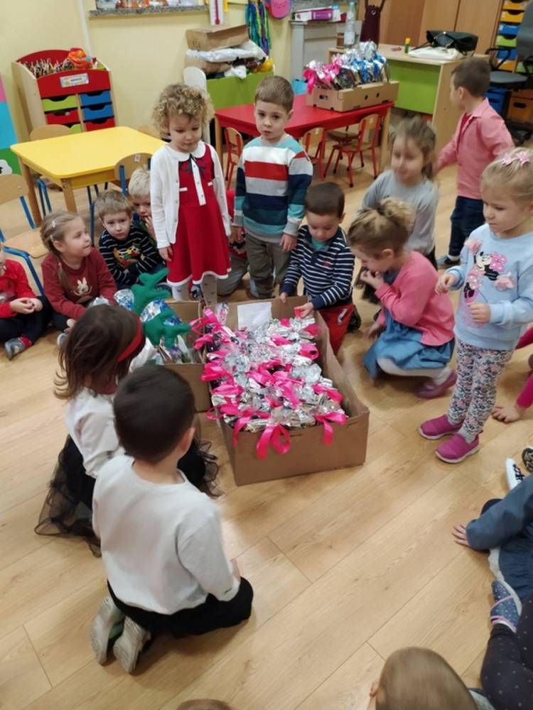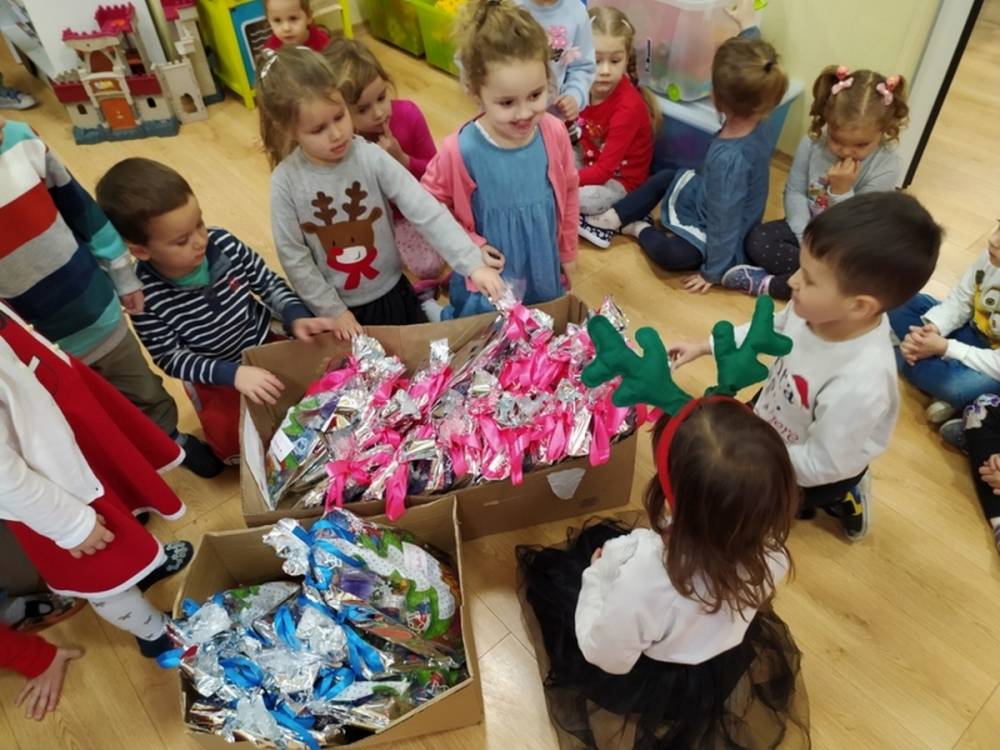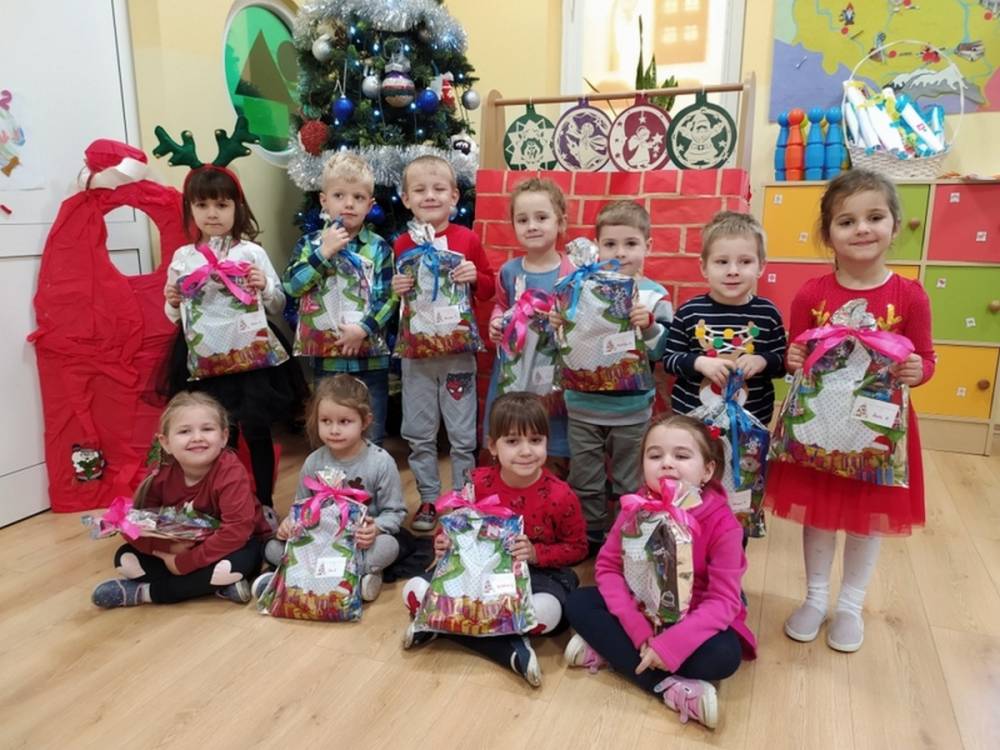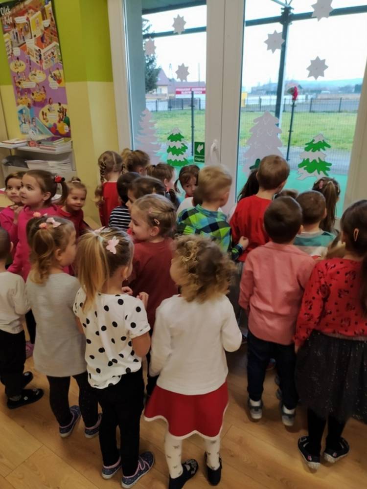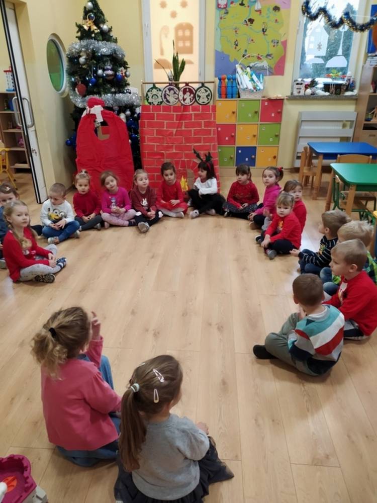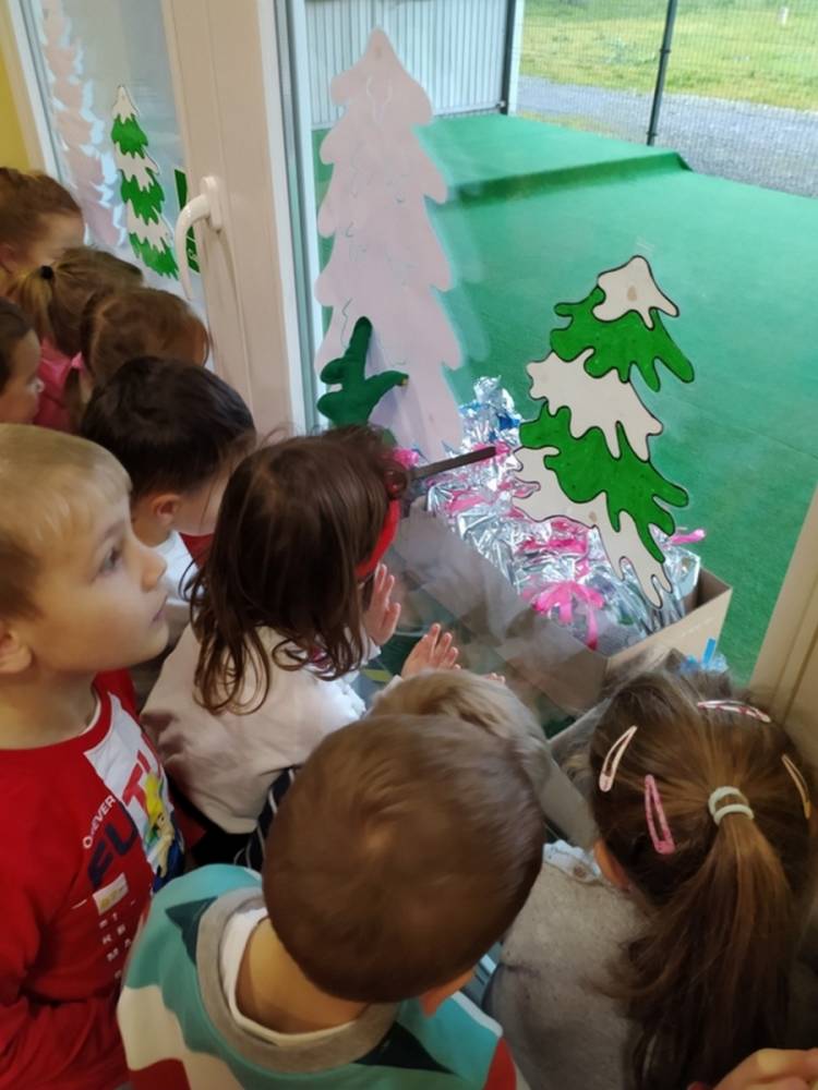 W pewien grudniowy poranek, w przedszkolnej sali, wybrzmiały wszystkim dobrze znane dzwony. Na twarzach dzieci widoczne było zdumienie i zadziwienie. Dźwięk było słychać tuż za oknem sali, w której gromadziły się przedszkolaki każdego dnia. Nagle jedna z nauczycielek krzyknęła- Dzieci chodźcie, coś słychać za oknem. Gdy dzieci podbiegły zainteresowane, Pani odsłoniła roletę okienną. Wtedy przedszkolaki dostrzegły mnóstwo pięknie zapakowanych prezentów oraz niezwykły skrawek czapki św. Mikołaja. Dzwony już nie grały, a Pani wyjaśniła dzieciom, że Mikołaj pozostawił ślad swej obecności, niczym kopciuszek pantofelek na balu… Radość towarzyszyła dzieciom przez cały dzień.