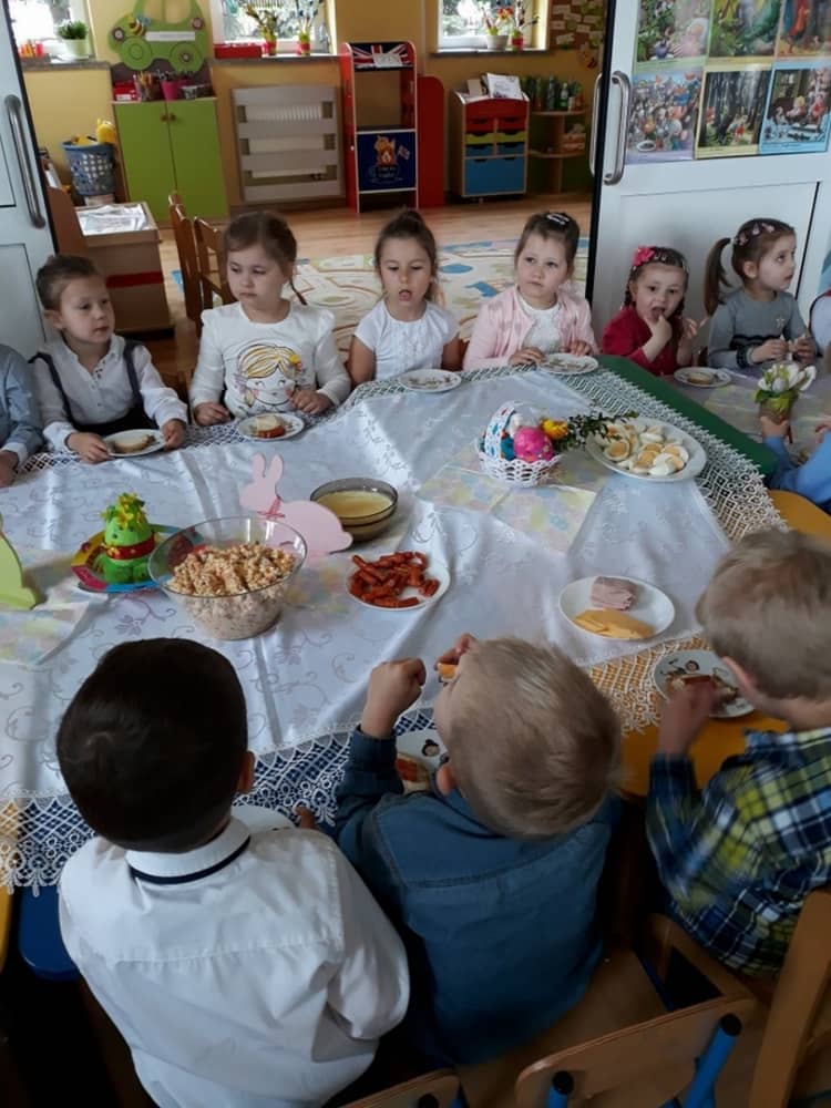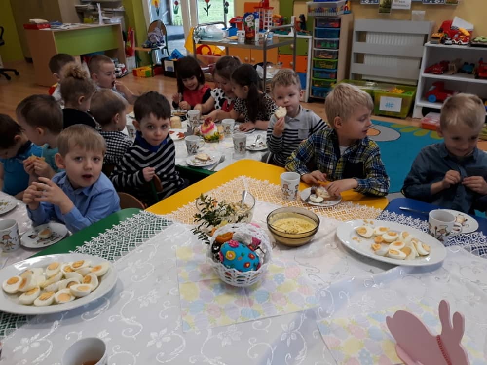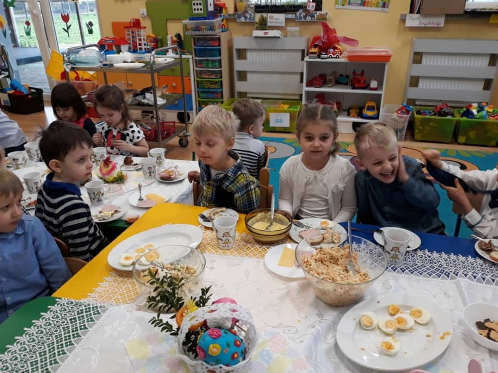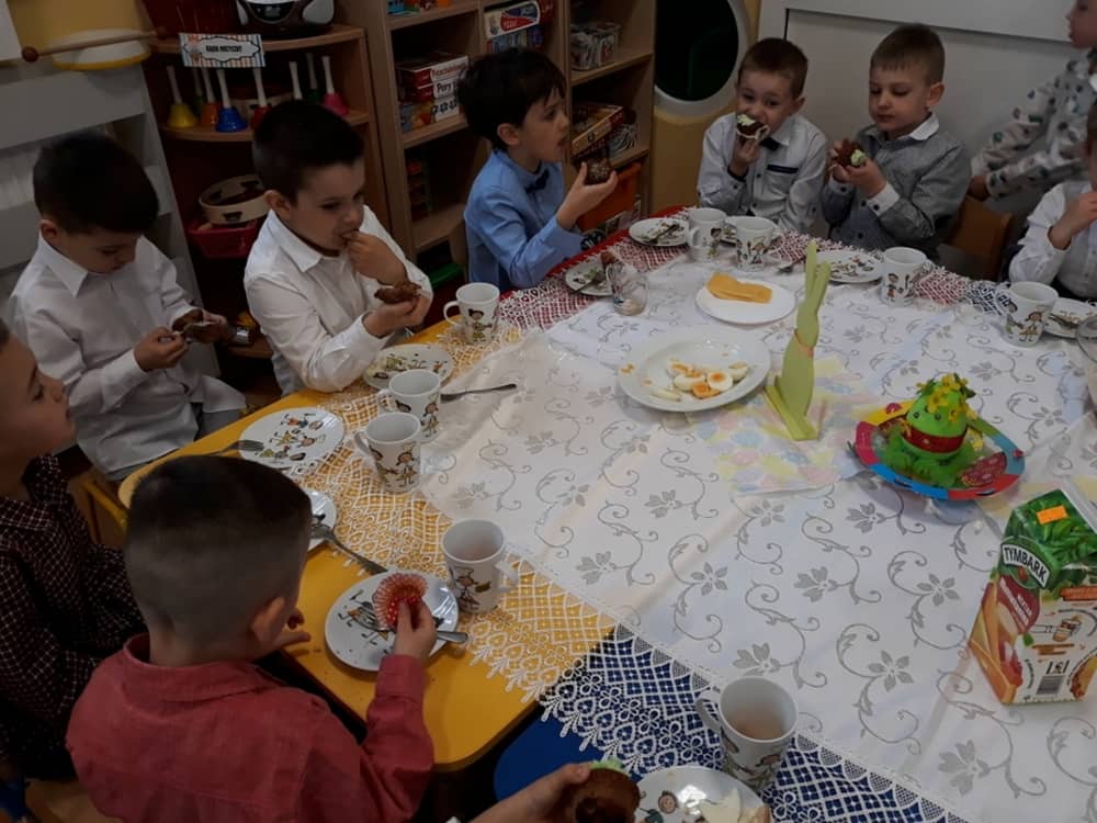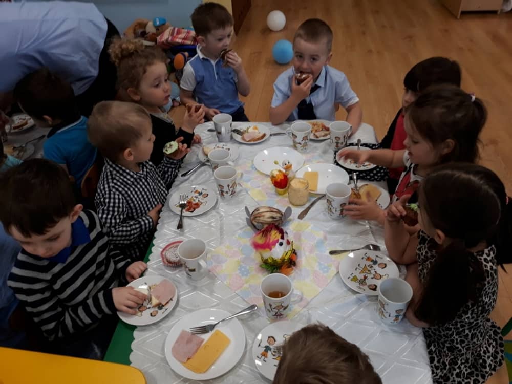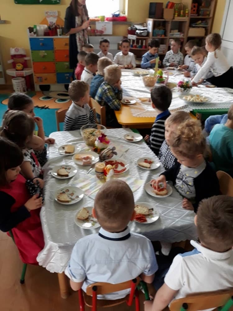 W dniu 17.04.2019 w naszym przedszkolu odbyło się Uroczyste Śniadanie Wielkanocne. W organizację tego świątecznego wydarzenia w pełni zaangażowali się Rodzice, którzy przygotowali wszystkie smaczne przekąski. Na pięknie udekorowanym stole znalazły się sałatki jarzynowe, chrzan, wędliny, kabanosy, sery i oczywiście jajeczka. Nie zabrakło pysznych słodkości- babeczek wielkanocnych, muffinków oraz kruchych ciasteczek. Zapewne dzieci poczuły zmysłem smaku zbliżające się święta i z radością zasiądą przy rodzinnym stole.