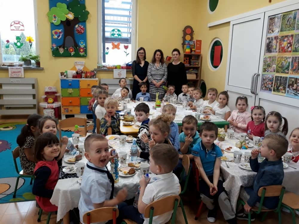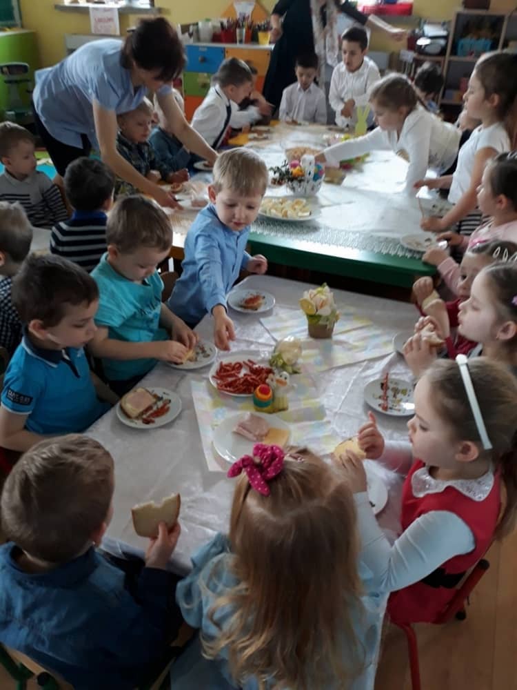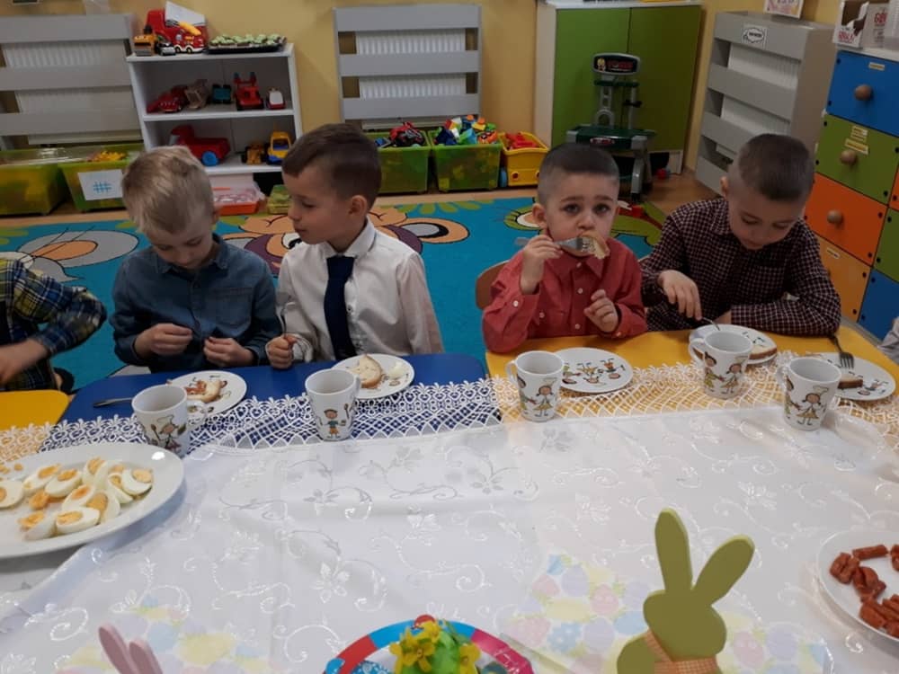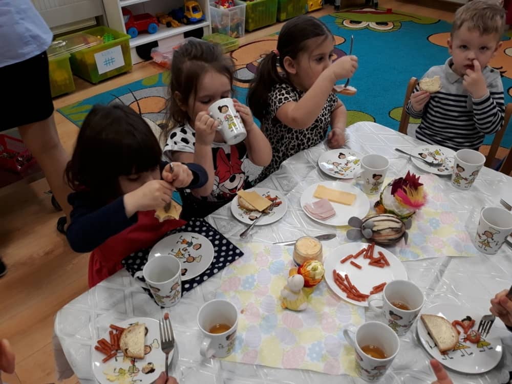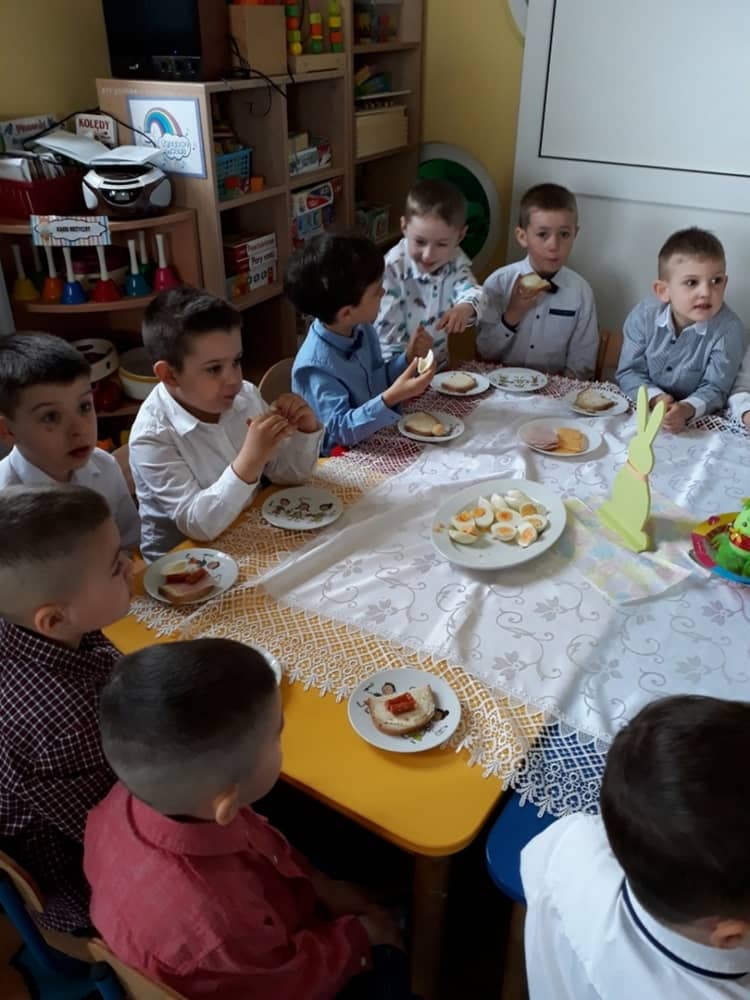 W dniu 17.04.2019 w naszym przedszkolu odbyło się Uroczyste Śniadanie Wielkanocne. W organizację tego świątecznego wydarzenia w pełni zaangażowali się Rodzice, którzy przygotowali wszystkie smaczne przekąski. Na pięknie udekorowanym stole znalazły się sałatki jarzynowe, chrzan, wędliny, kabanosy, sery i oczywiście jajeczka. Nie zabrakło pysznych słodkości- babeczek wielkanocnych, muffinków oraz kruchych ciasteczek. Zapewne dzieci poczuły zmysłem smaku zbliżające się święta i z radością zasiądą przy rodzinnym stole.