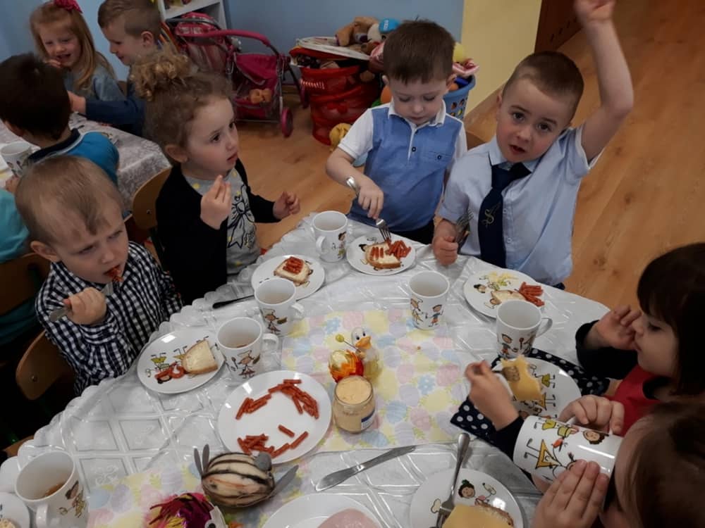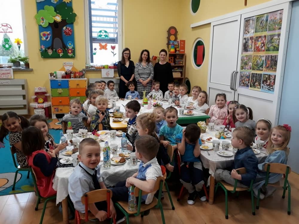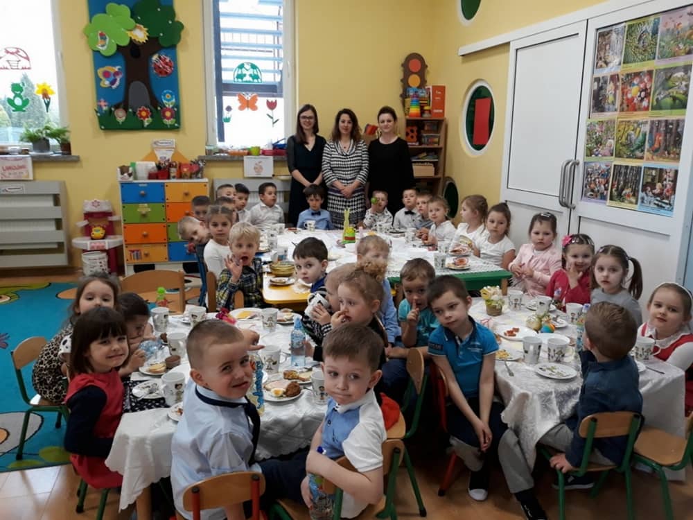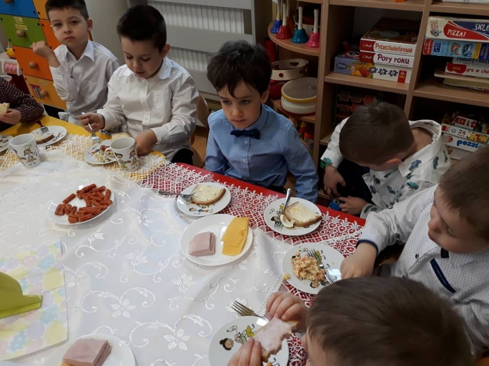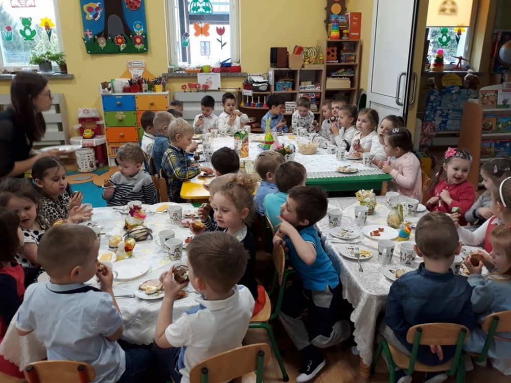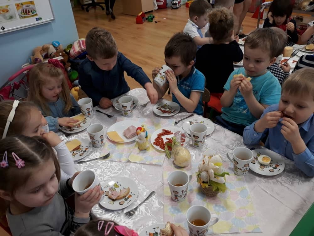 W dniu 17.04.2019 w naszym przedszkolu odbyło się Uroczyste Śniadanie Wielkanocne. W organizację tego świątecznego wydarzenia w pełni zaangażowali się Rodzice, którzy przygotowali wszystkie smaczne przekąski. Na pięknie udekorowanym stole znalazły się sałatki jarzynowe, chrzan, wędliny, kabanosy, sery i oczywiście jajeczka. Nie zabrakło pysznych słodkości- babeczek wielkanocnych, muffinków oraz kruchych ciasteczek. Zapewne dzieci poczuły zmysłem smaku zbliżające się święta i z radością zasiądą przy rodzinnym stole.