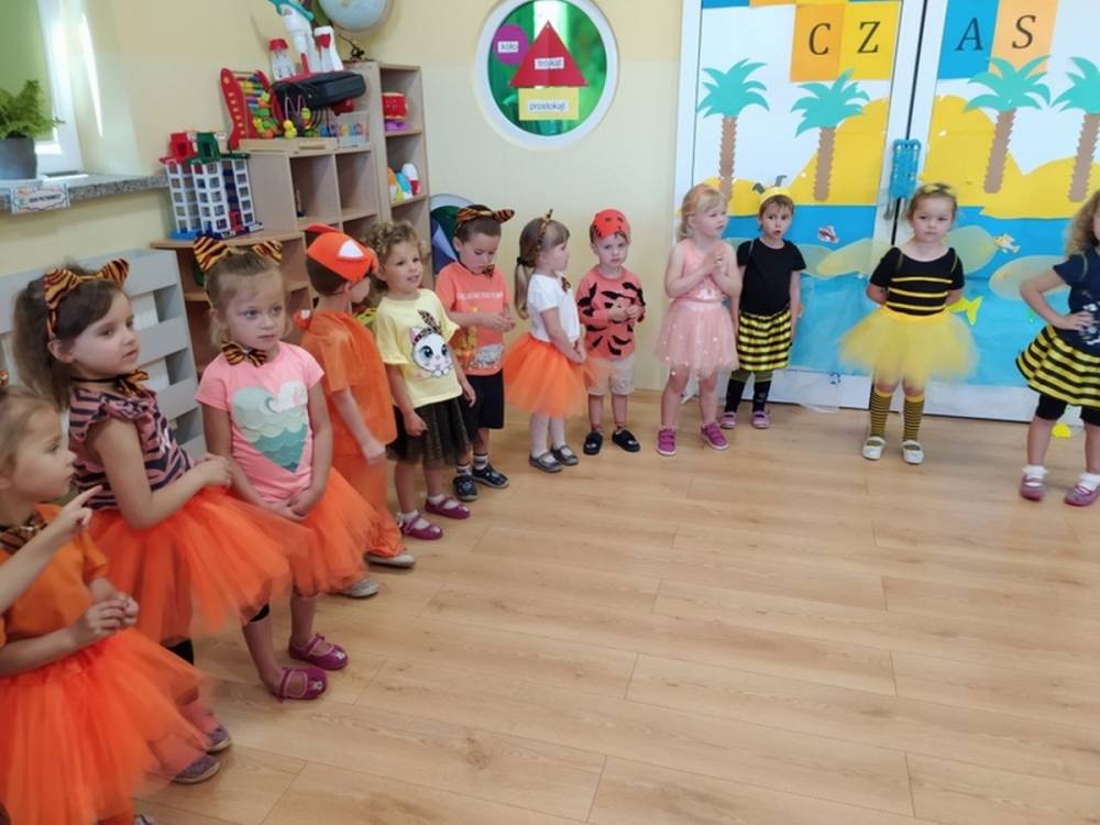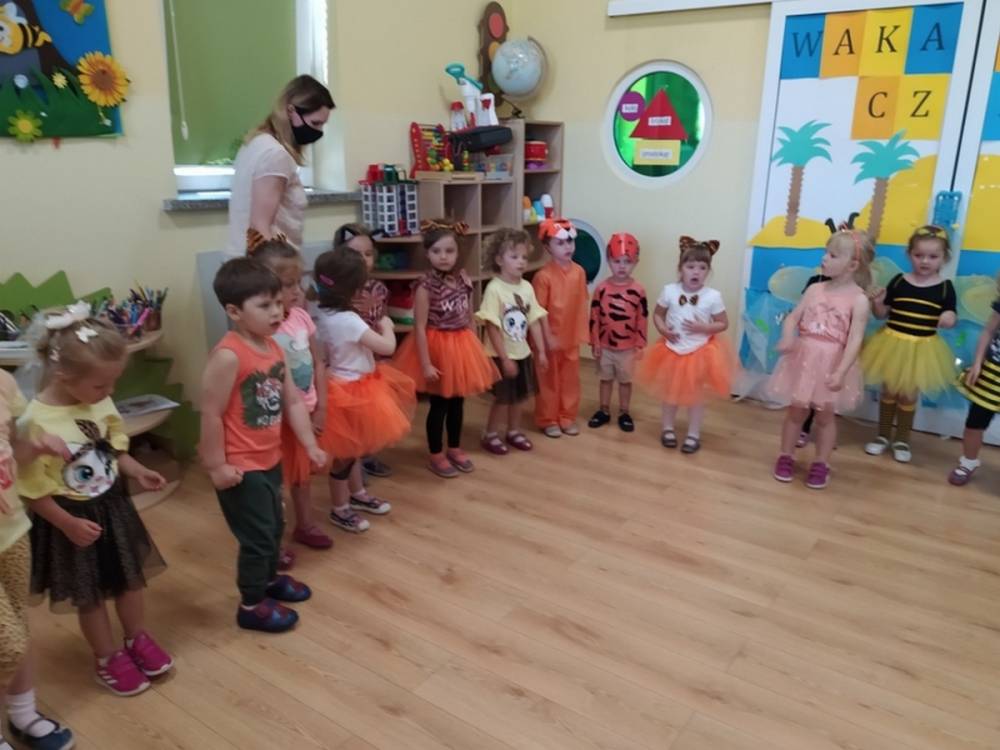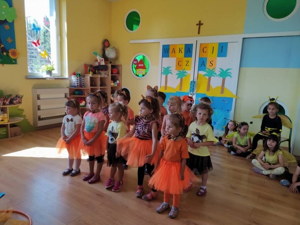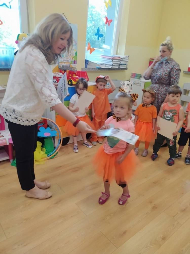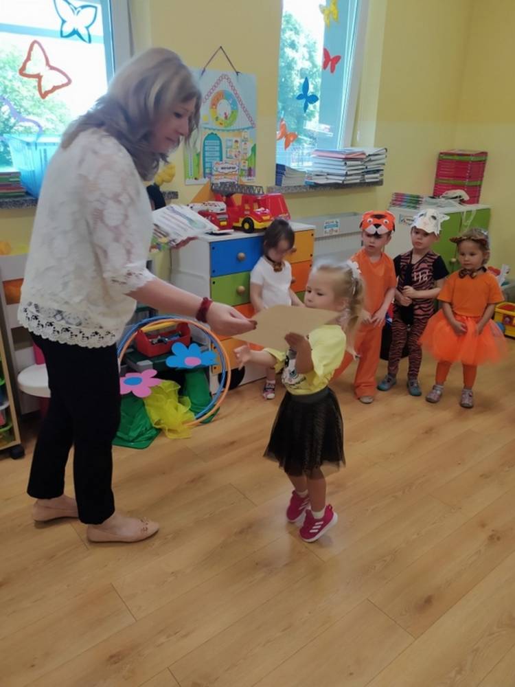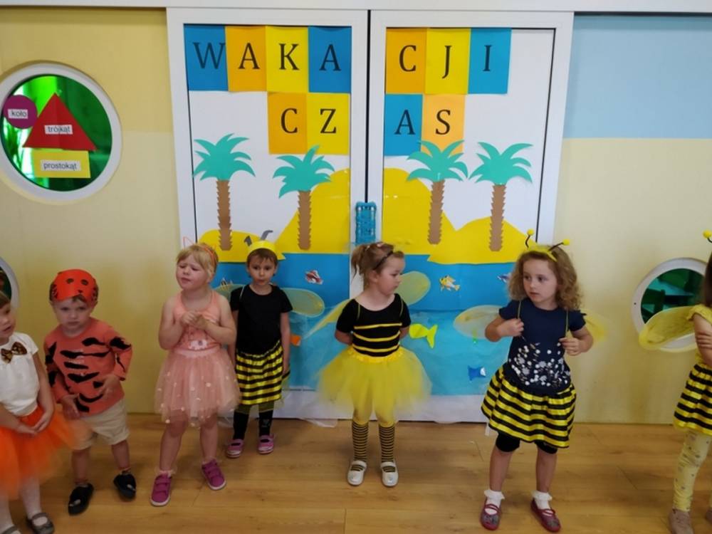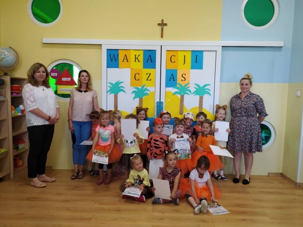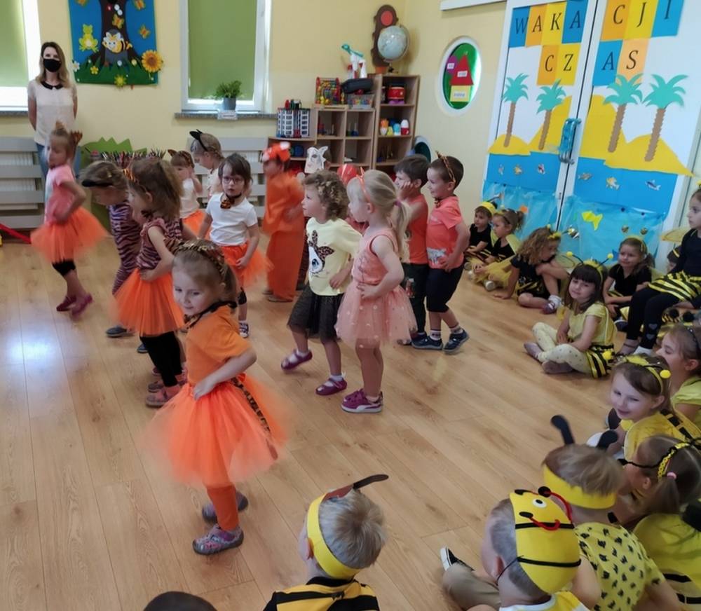 W dniu 16.06.2021 w naszym przedszkolu odbyło się Uroczyste Zakończenie. Wszystkie dzieci w tym dniu były pięknie przebrane i wystąpiły z repertuarem bogatym w piosenki, wiersze i tańce. Dekoracja w tle nawiązywała do letniej, wakacyjnej pogody, która w tym dniu rozpieszczała wszystkie dzieci. Na występach była obecna Pani Dyrektor, która pogratulowała dzieciom wspaniałego pokazu i wręczyła pamiątkowe dyplomy. Wspólne zdjęcia uwieczniły piękne chwile, które z pewnością zapadną wszystkim w pamięć.