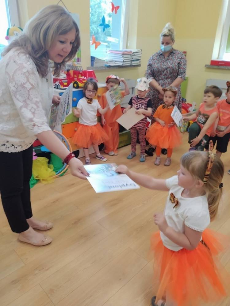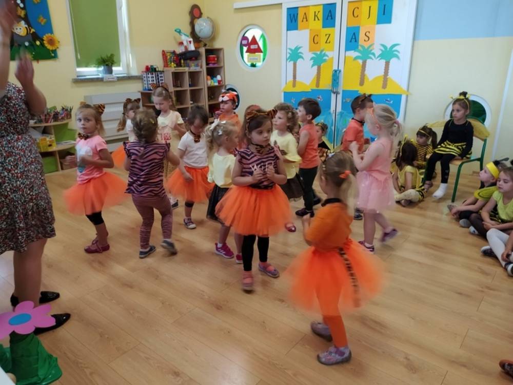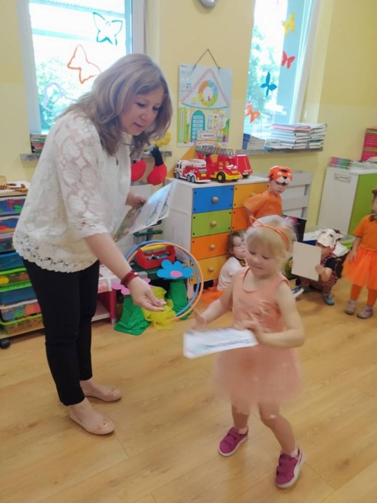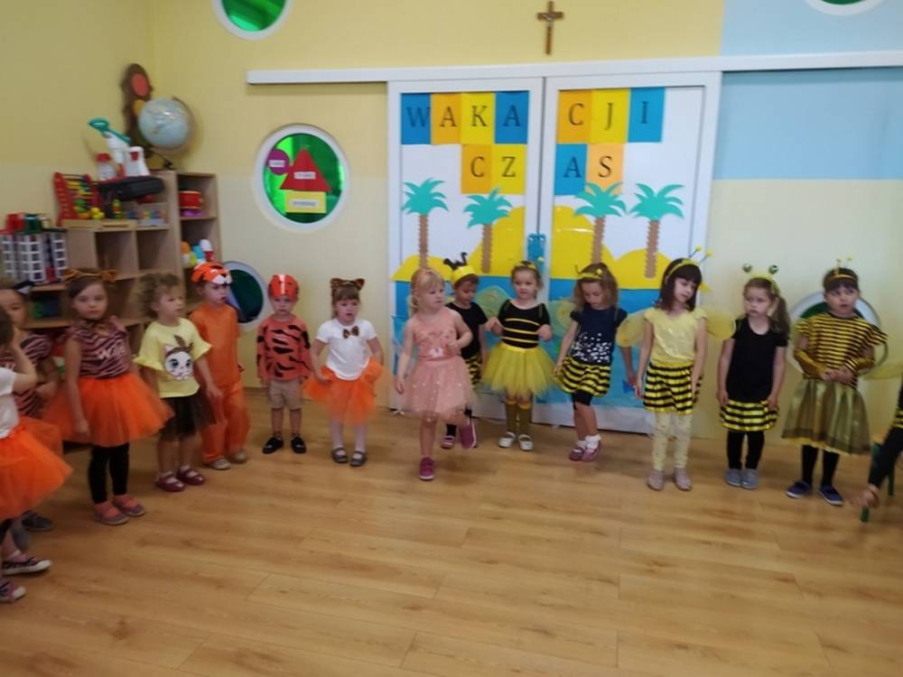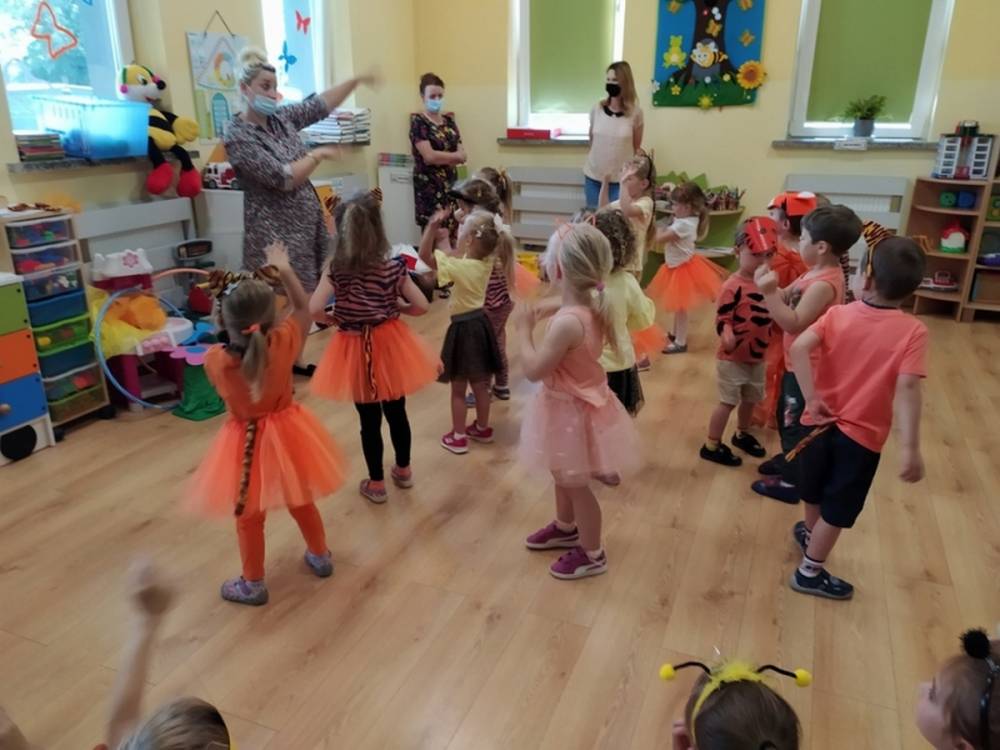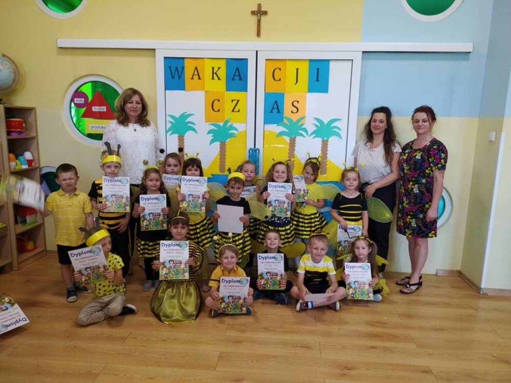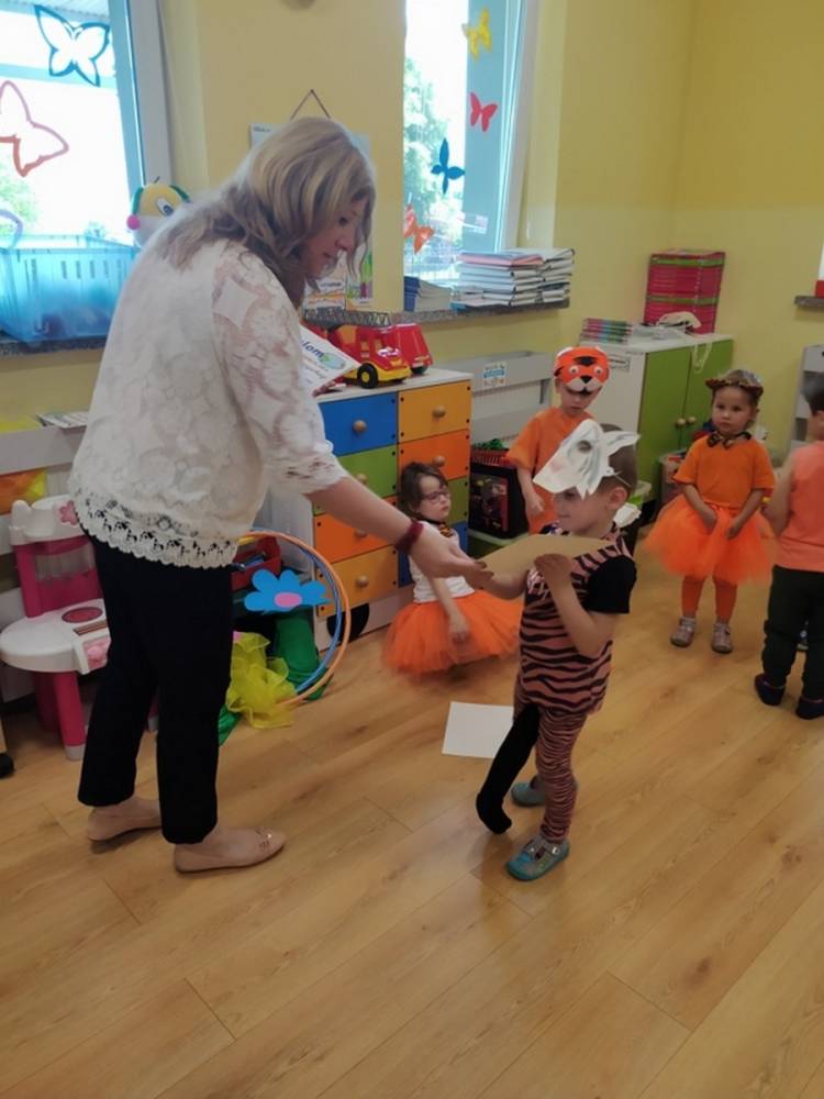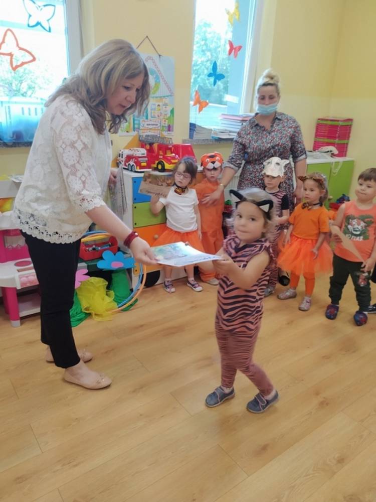 W dniu 16.06.2021 w naszym przedszkolu odbyło się Uroczyste Zakończenie. Wszystkie dzieci w tym dniu były pięknie przebrane i wystąpiły z repertuarem bogatym w piosenki, wiersze i tańce. Dekoracja w tle nawiązywała do letniej, wakacyjnej pogody, która w tym dniu rozpieszczała wszystkie dzieci. Na występach była obecna Pani Dyrektor, która pogratulowała dzieciom wspaniałego pokazu i wręczyła pamiątkowe dyplomy. Wspólne zdjęcia uwieczniły piękne chwile, które z pewnością zapadną wszystkim w pamięć.