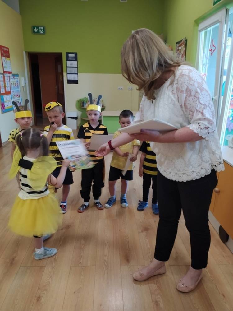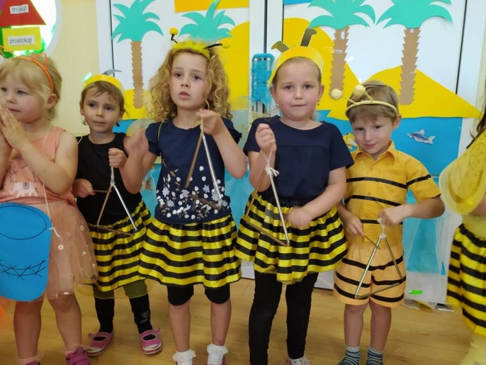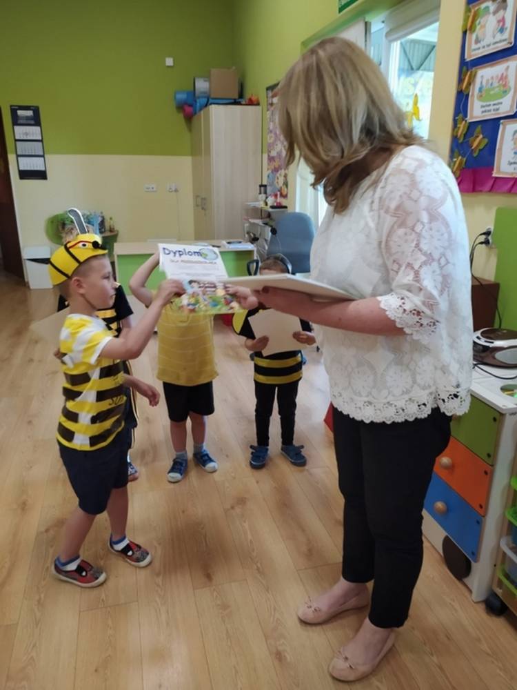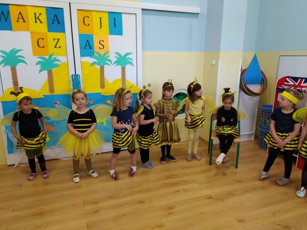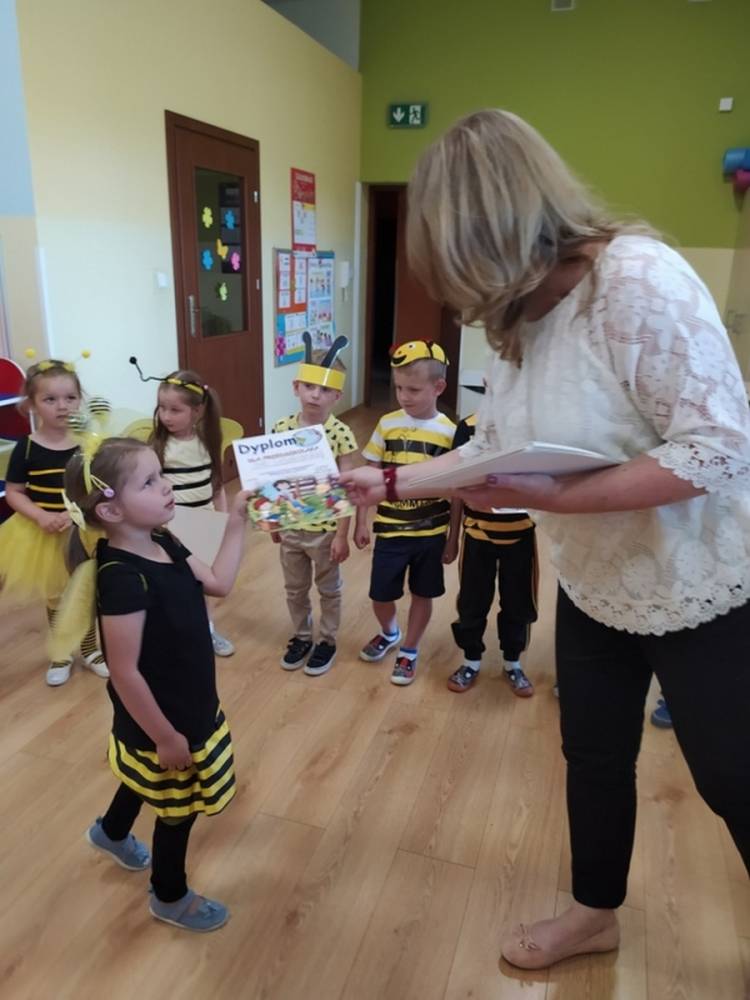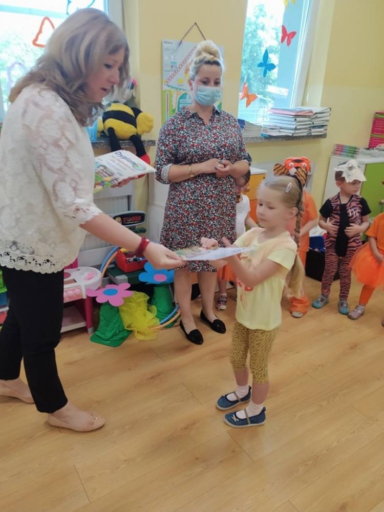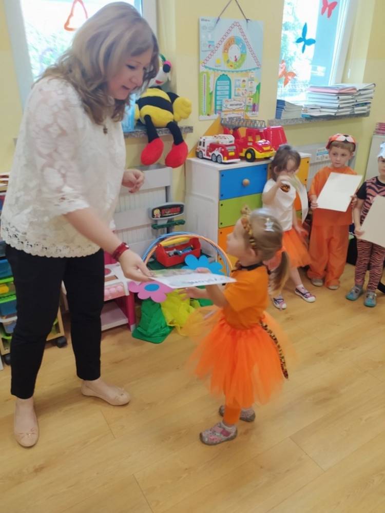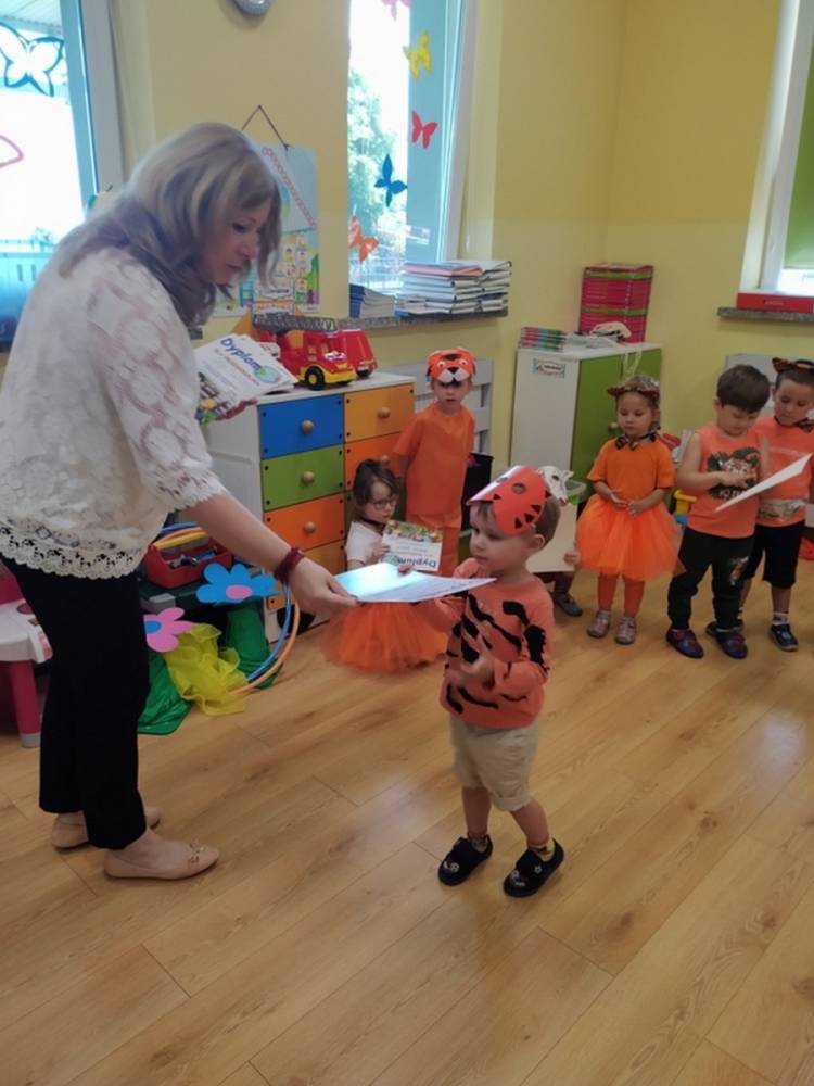 W dniu 16.06.2021 w naszym przedszkolu odbyło się Uroczyste Zakończenie. Wszystkie dzieci w tym dniu były pięknie przebrane i wystąpiły z repertuarem bogatym w piosenki, wiersze i tańce. Dekoracja w tle nawiązywała do letniej, wakacyjnej pogody, która w tym dniu rozpieszczała wszystkie dzieci. Na występach była obecna Pani Dyrektor, która pogratulowała dzieciom wspaniałego pokazu i wręczyła pamiątkowe dyplomy. Wspólne zdjęcia uwieczniły piękne chwile, które z pewnością zapadną wszystkim w pamięć.