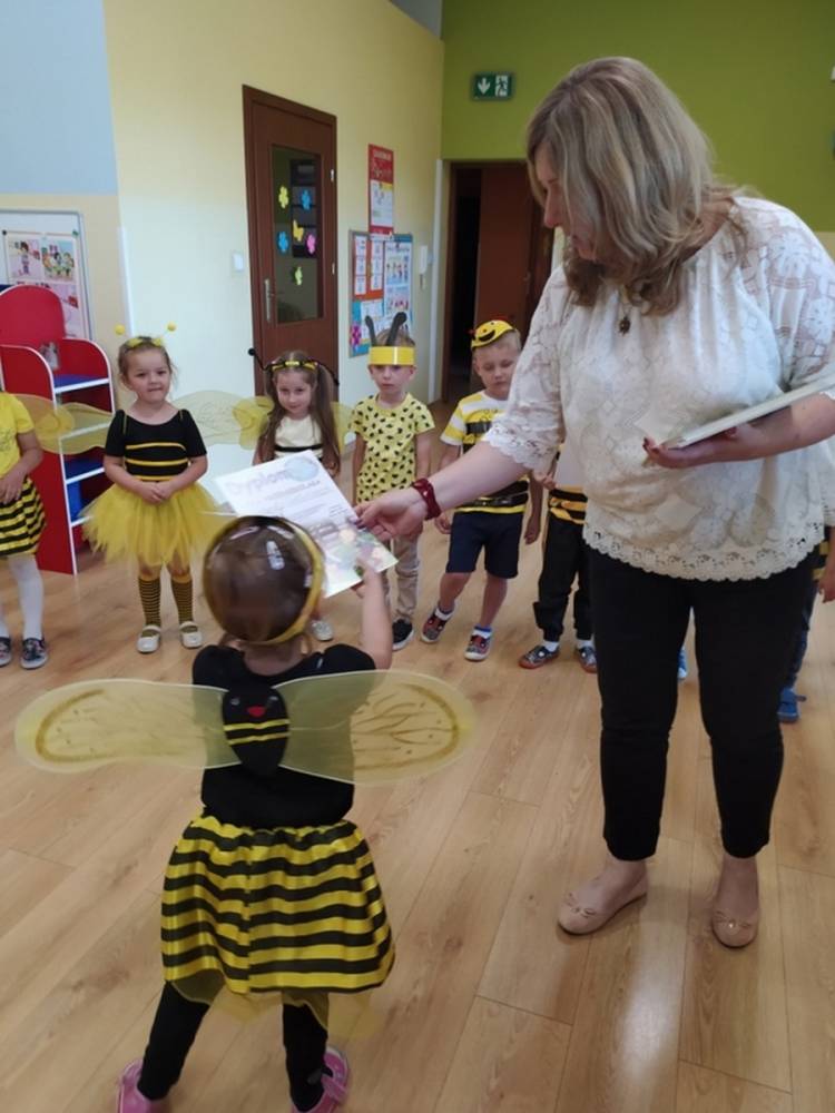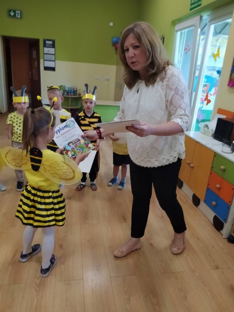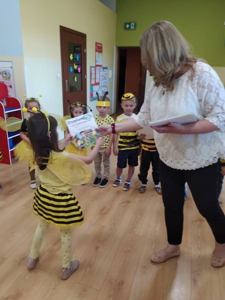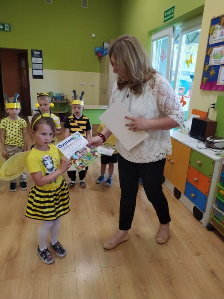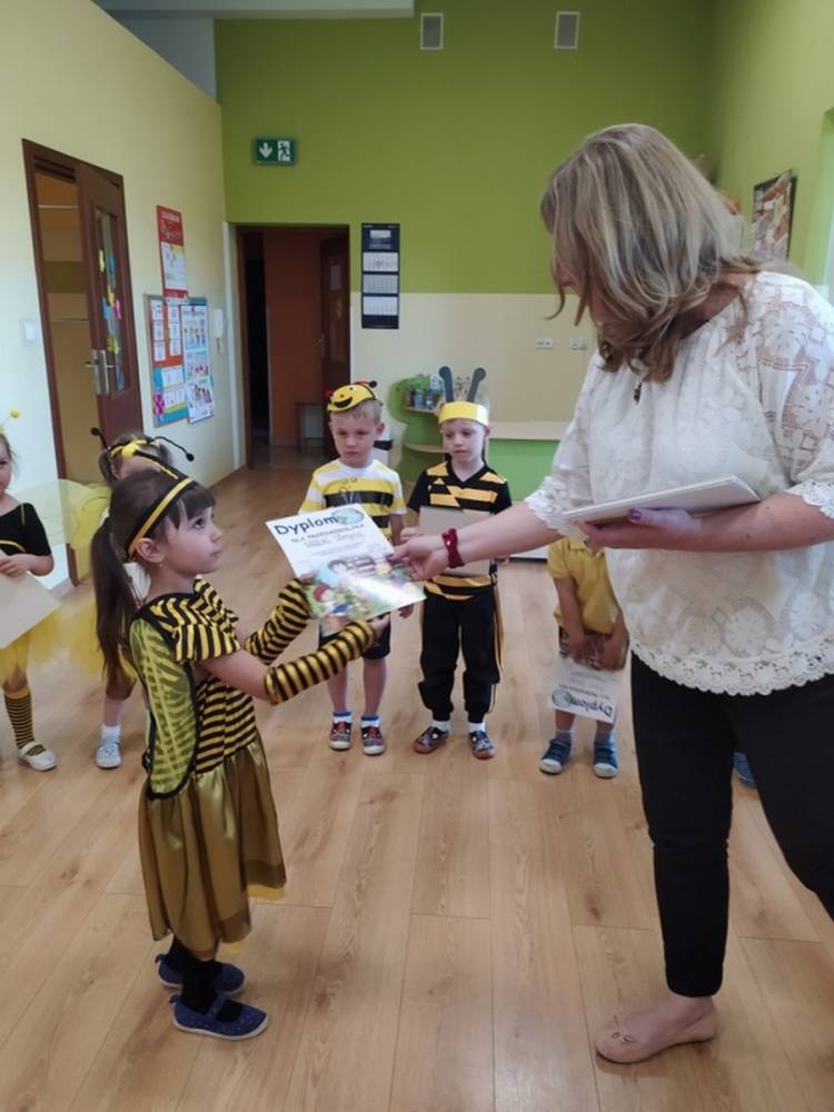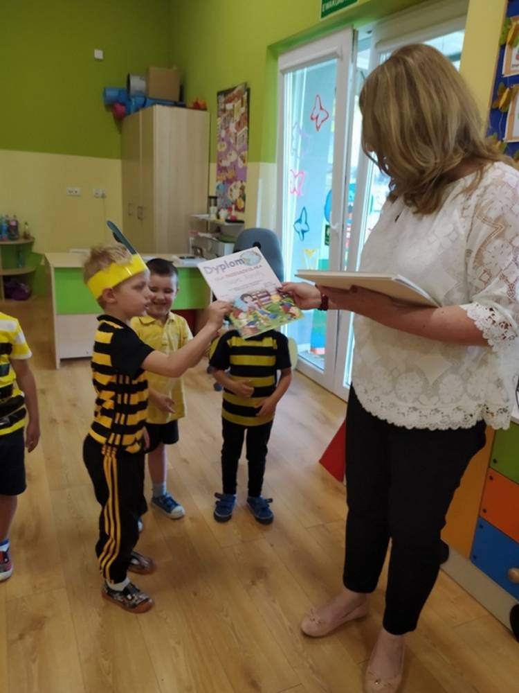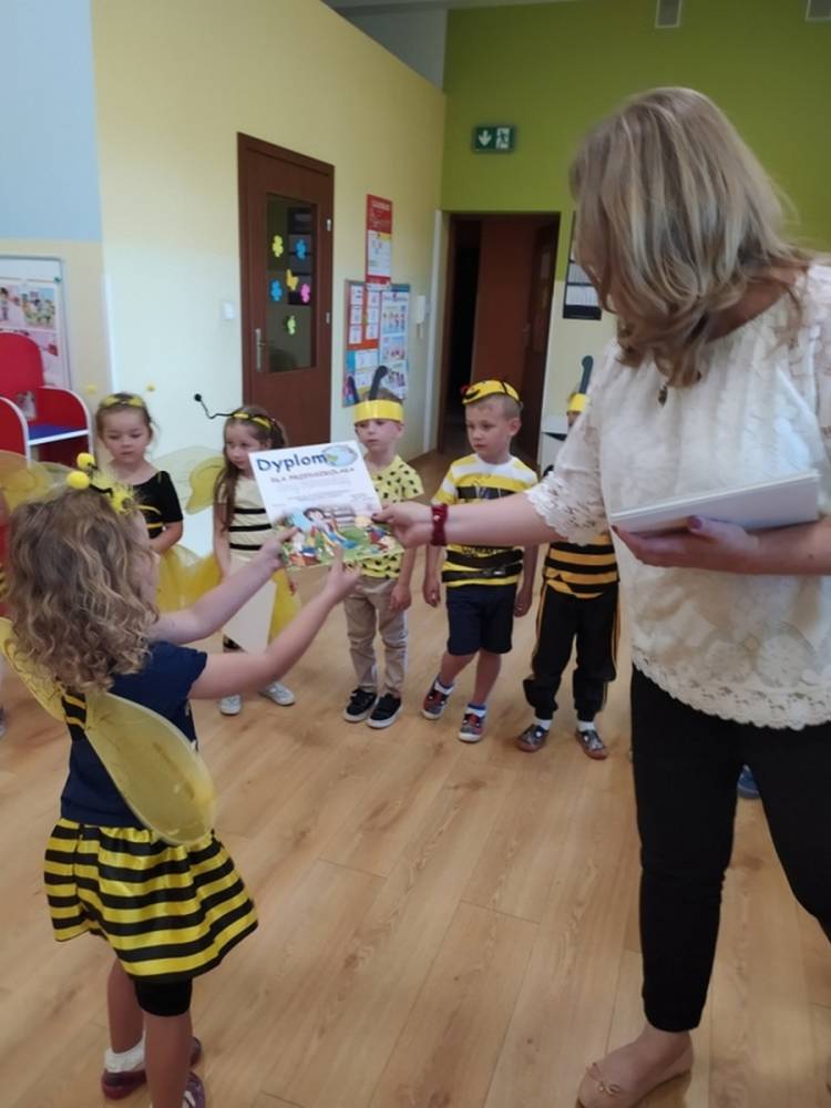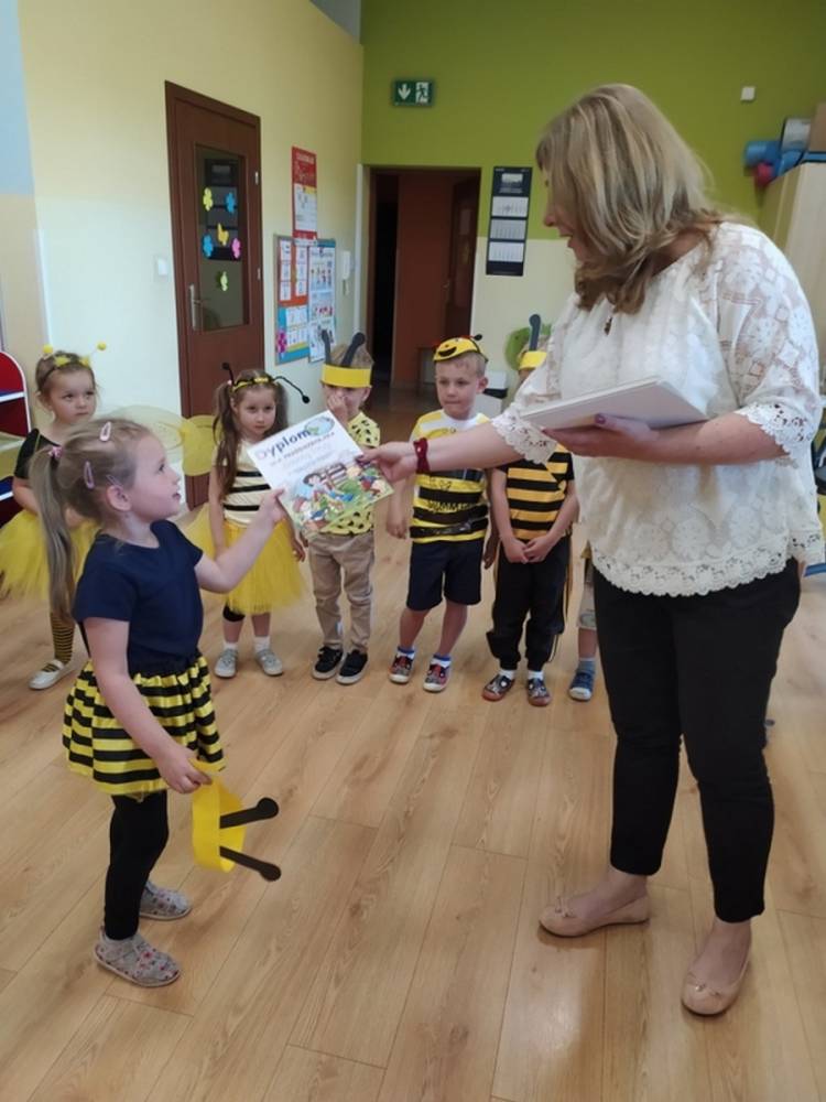 W dniu 16.06.2021 w naszym przedszkolu odbyło się Uroczyste Zakończenie. Wszystkie dzieci w tym dniu były pięknie przebrane i wystąpiły z repertuarem bogatym w piosenki, wiersze i tańce. Dekoracja w tle nawiązywała do letniej, wakacyjnej pogody, która w tym dniu rozpieszczała wszystkie dzieci. Na występach była obecna Pani Dyrektor, która pogratulowała dzieciom wspaniałego pokazu i wręczyła pamiątkowe dyplomy. Wspólne zdjęcia uwieczniły piękne chwile, które z pewnością zapadną wszystkim w pamięć.