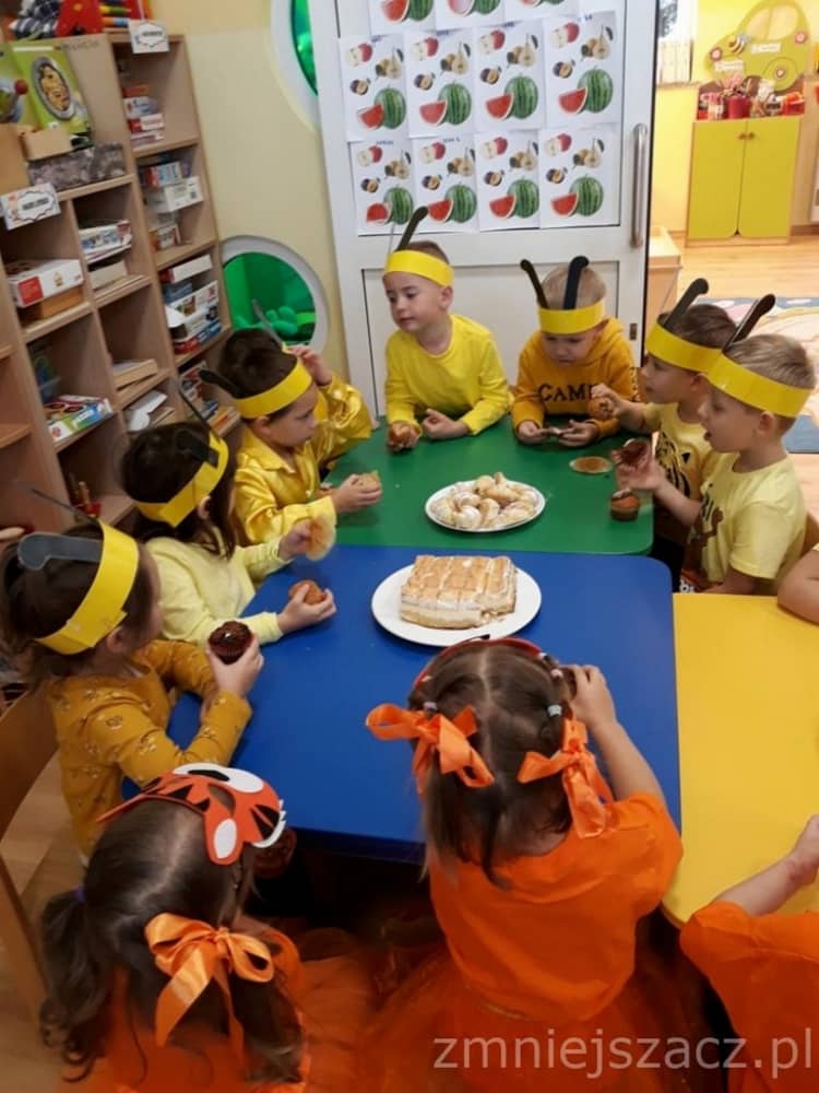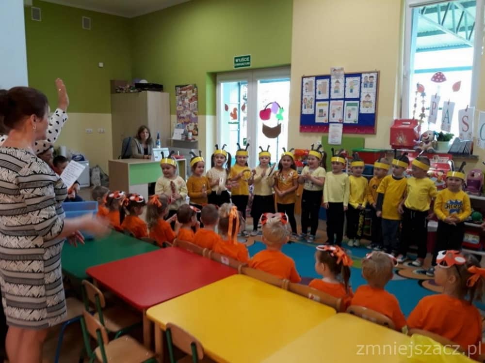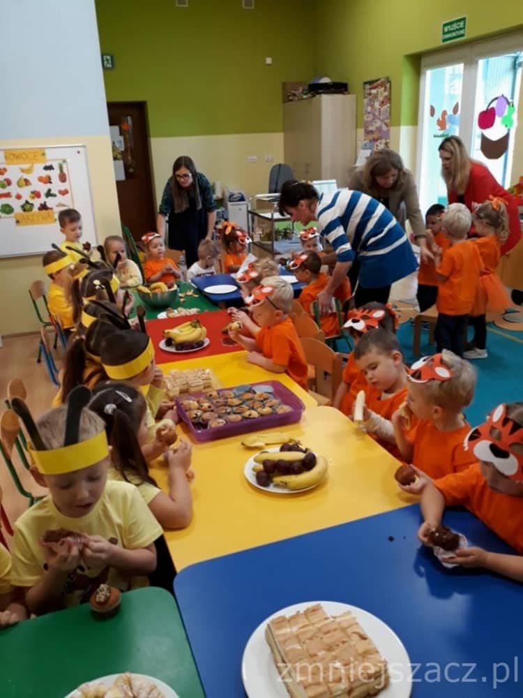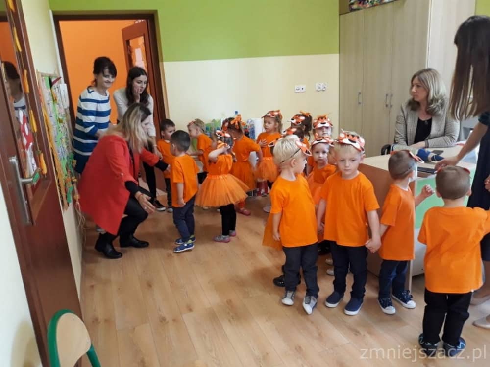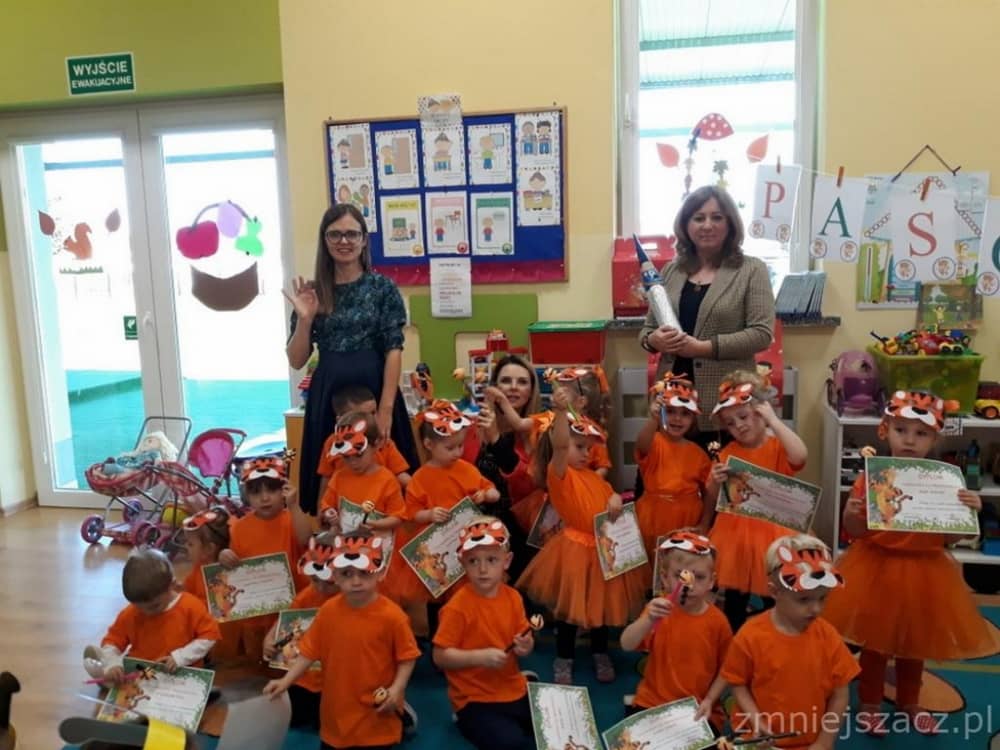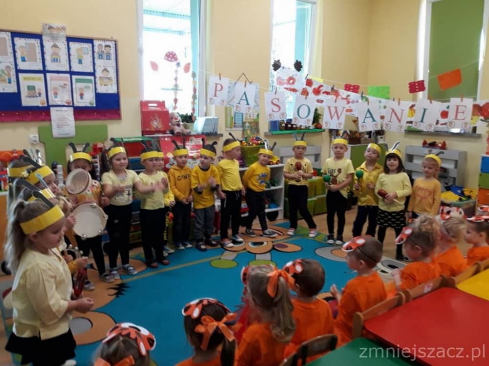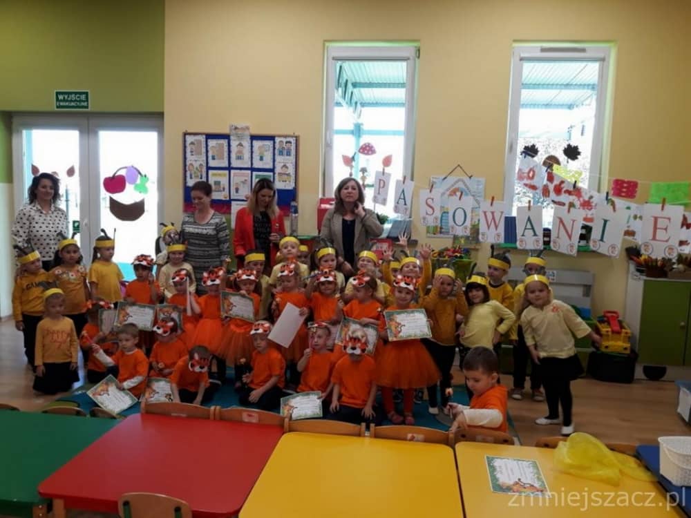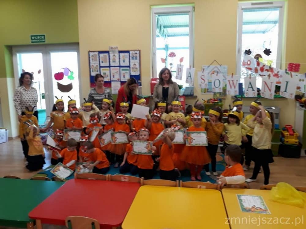 Dnia 11.10. 2019 roku odbyła się uroczystość Pasowania na Przedszkolaka. Nasze maluchy zostały pasowane przez Panią Dyrektor na dzielne "Tygryski" w oddziale przedszkolnym przy Szkole Podstawowej im. J. Długosza w Piekarach. Od początku roku przygotowywały repertuar piosenek "Kto to taki?", "Jestem zuch", Zróbmy duże koło". Zatańczyły dla nas jesienny "Taniec z liściem" oraz "Taniec tygrysków" do mel. J. Straussa "Polka Trisch Trasch". Ogromne podziękowania kieruję w stronę Rodziców obu grup przedszkolnych za ogromne zaangażowanie z okazji tego wydarzenia. Dziękuję za upieczenie ciast, zakup owoców i soków: Pani Marii - mamie Janinki, Pani Agacie - mamie Weroniki, Pani Paulinie - mamie Piotrusia, Pani Annie - mamie Karinki, Pani Weronice - mamie Leny P. oraz Pani Katarzynie - mamie Marcela. Wszystkim Rodzicom z grupy Tygrysków dziękuję za zakup koszulek i masek dla dzieci. Dziękuję mamie Zosi L. za wypożyczenie spódniczek na pasowanie. Dziękuję wszystkim Paniom za pomoc w organizacji, przygotowaniu dzieci z grupy starszej do śpiewu autorskiej piosenki na mel. "Pszczółka Maja", przebranie się za pracowite pszczółki oraz wykonanie upominków dla dzieci.
