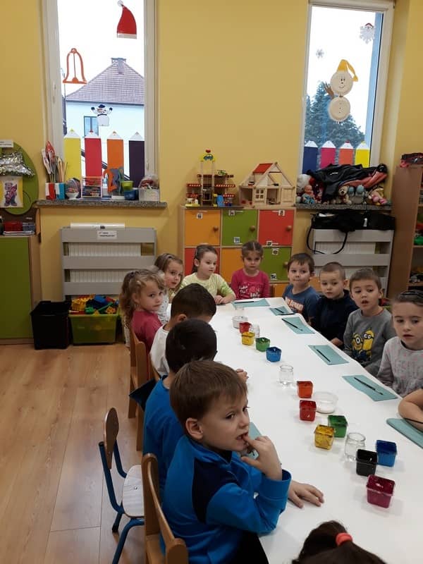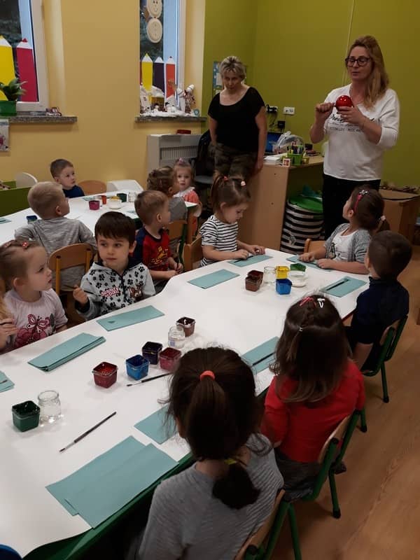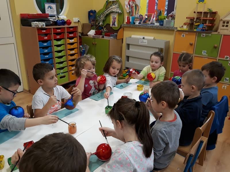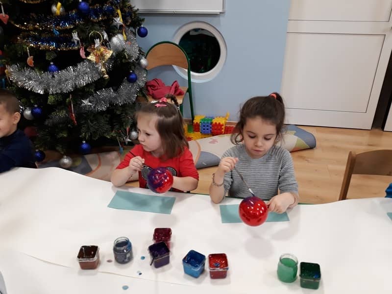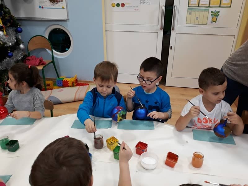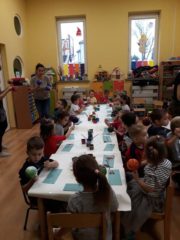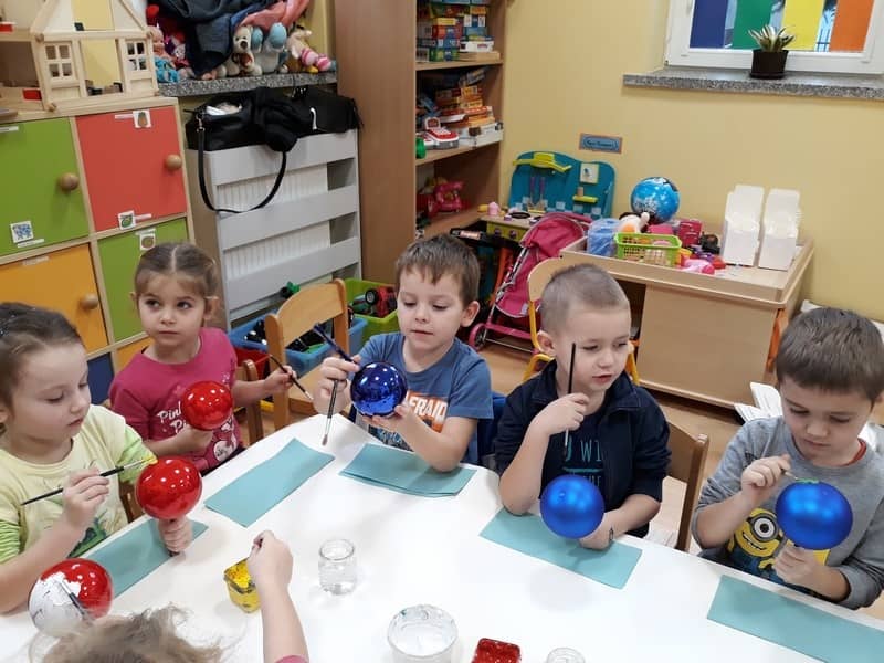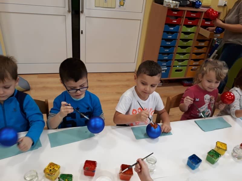 W dniu 14 grudnia 2017 roku w naszym przedszkolu zorganizowane zostały warsztaty Bożonarodzeniowe dla dzieci z grypy „Tygryski” oraz „Pracowite pszczółki”. Celem warsztatów było wykonanie prezentu z okazji Świąt Bożego Narodzenia .Przedszkolaki malowały bombki , wykazując się przy tym pomysłowością i kreatywnością. Był to naprawdę mile spędzony czas, podczas którego dzieci wspólnie pracowały oraz dobrze się przy tym bawiły. Piękne bombki wykonane przez dzieci na pewno ozdobią choinki w ich domach.