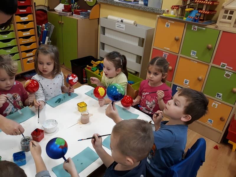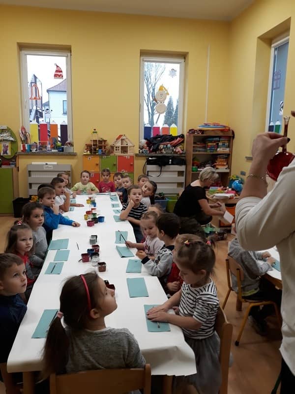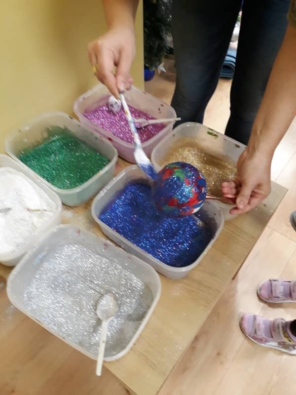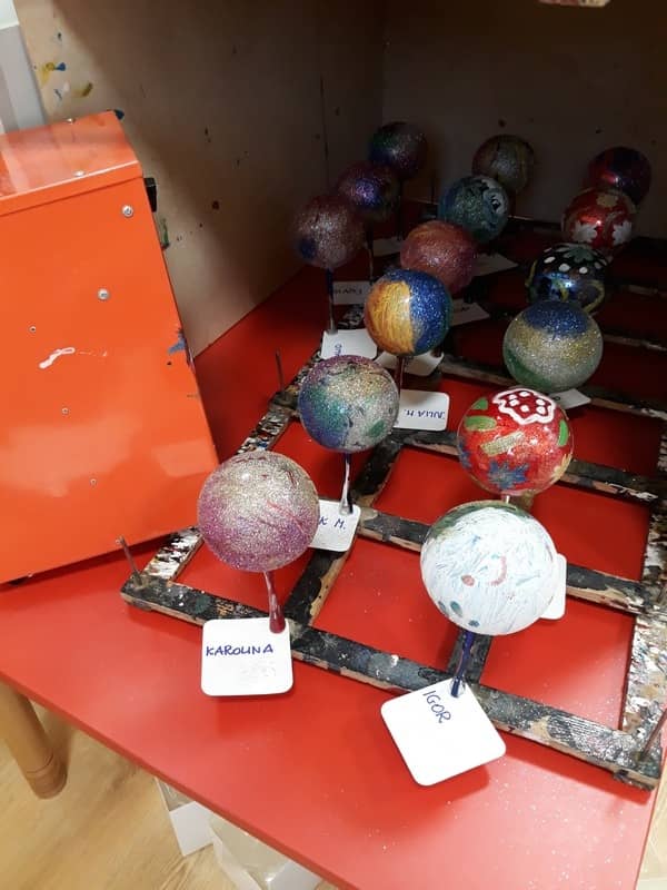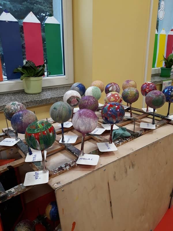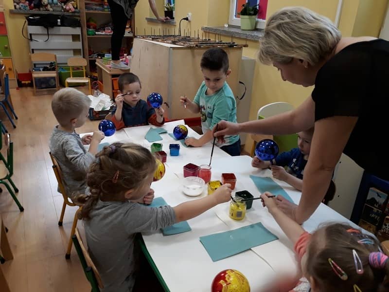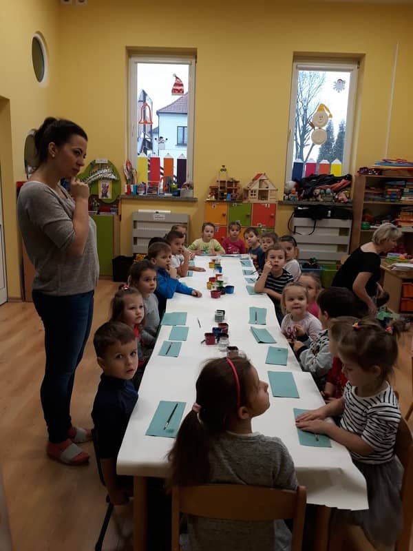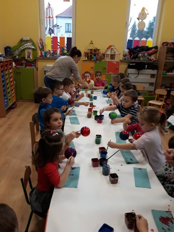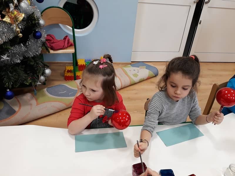 W dniu 14 grudnia 2017 roku w naszym przedszkolu zorganizowane zostały warsztaty Bożonarodzeniowe dla dzieci z grypy „Tygryski” oraz „Pracowite pszczółki”. Celem warsztatów było wykonanie prezentu z okazji Świąt Bożego Narodzenia .Przedszkolaki malowały bombki , wykazując się przy tym pomysłowością i kreatywnością. Był to naprawdę mile spędzony czas, podczas którego dzieci wspólnie pracowały oraz dobrze się przy tym bawiły. Piękne bombki wykonane przez dzieci na pewno ozdobią choinki w ich domach.