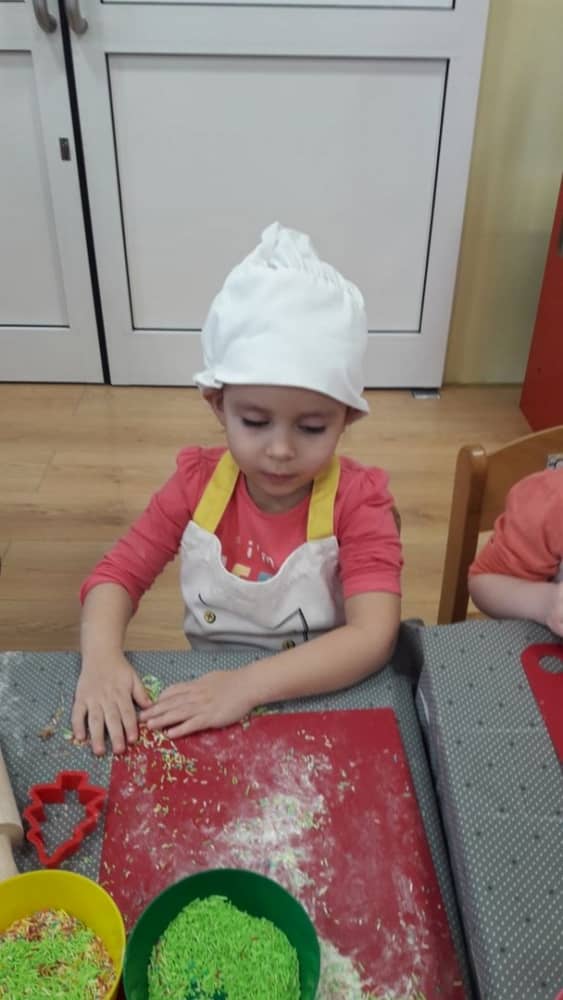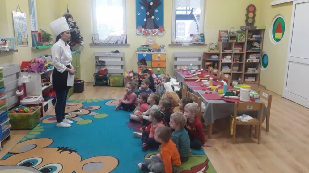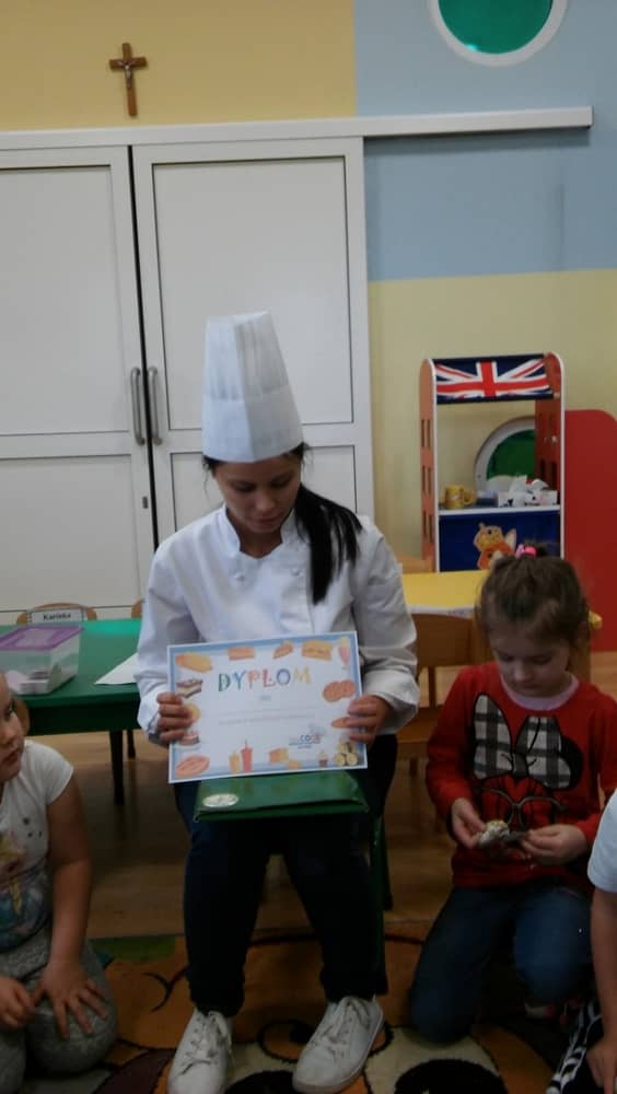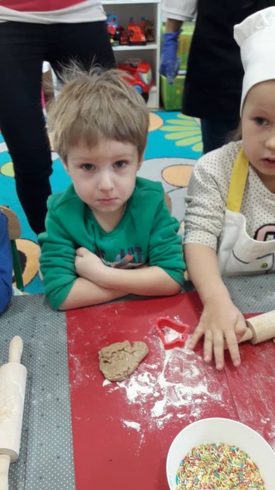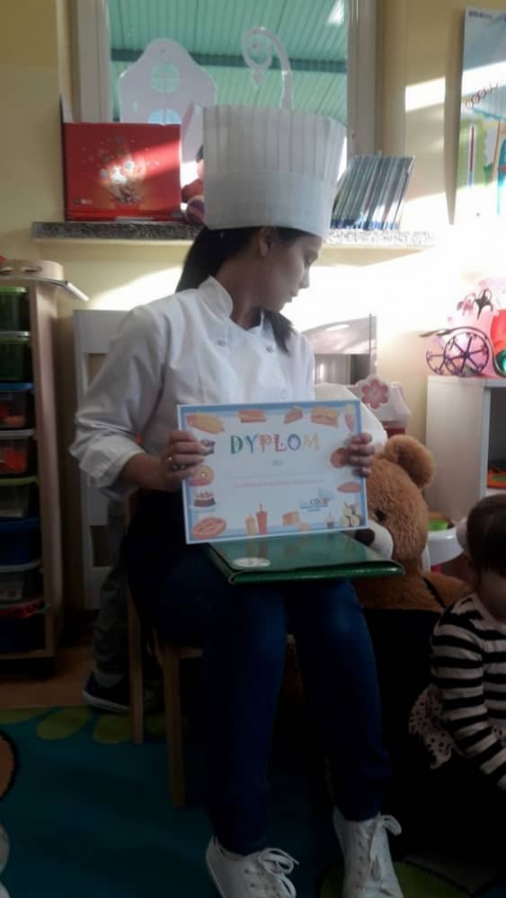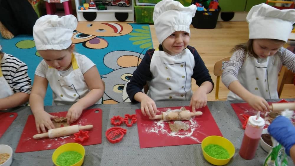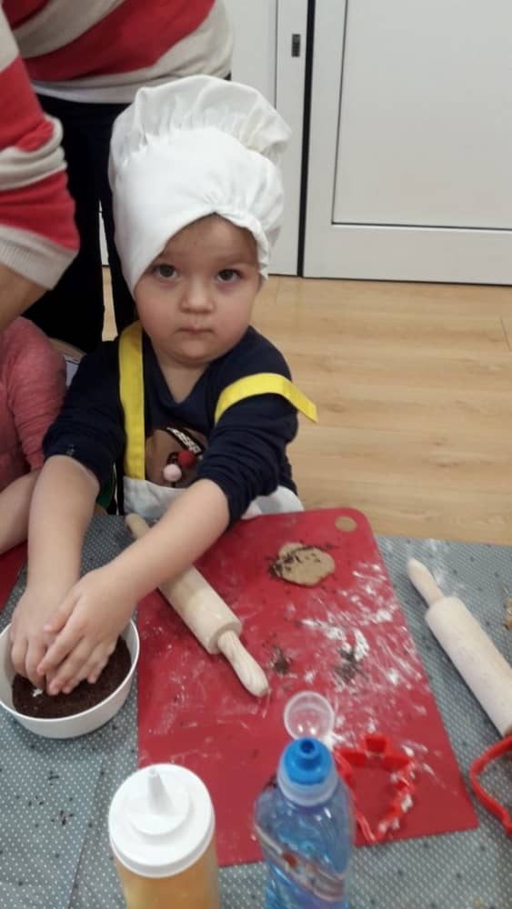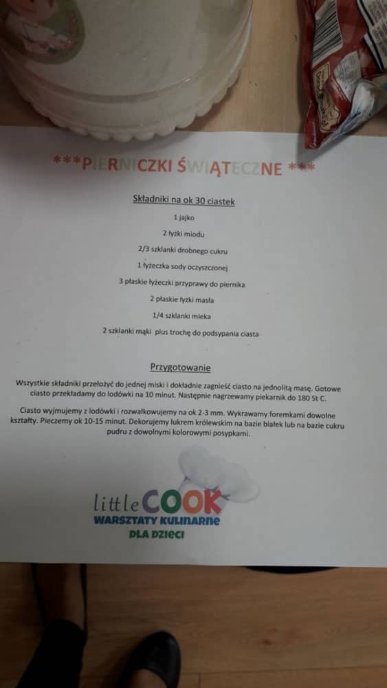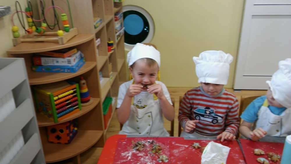 9 grudnia na długo pozostanie w pamięci przedszkolaków. Wszystko za sprawą pani Natalii, cukiernika z firmy Little Cook, która wprowadziła nas w prawdziwie świąteczny nastrój. Pani cukiernik przedstawiając dzieciom swojego pomocnika Misia Kuchcika, zaprosiła przedszkolaków do spróbowania swoich sił w niecodziennym zajęciu. Po założeniu fartuszków i czapeczek kucharza na przedszkolaki padł magiczny świąteczny czar. Za sprawą korzennych zapachów, które zapanowały w całym przedszkolu i zdolności maluchów, spod wałków na tackach zaczęły się pojawiać pierniczki w przepięknych świątecznych kształtach. Upieczone gwiazdeczki, renifery, bałwanki, dzwoneczki itp. zostały przez dzieci polukrowane i ozdobione kolorowymi posypkami. Smakowały wyśmienicie, dlatego dzieci poprosiły o przepisy dla swoich mam i obiecały upiec z nimi takie pyszności na święta. Każdy przedszkolak w nagrodę za swoją pracę otrzymał dyplom i naklejkę super kuchcika.