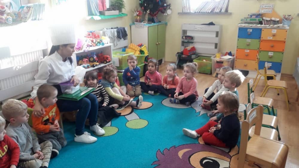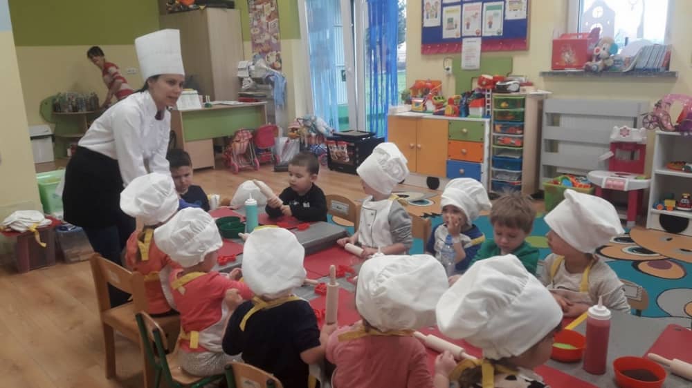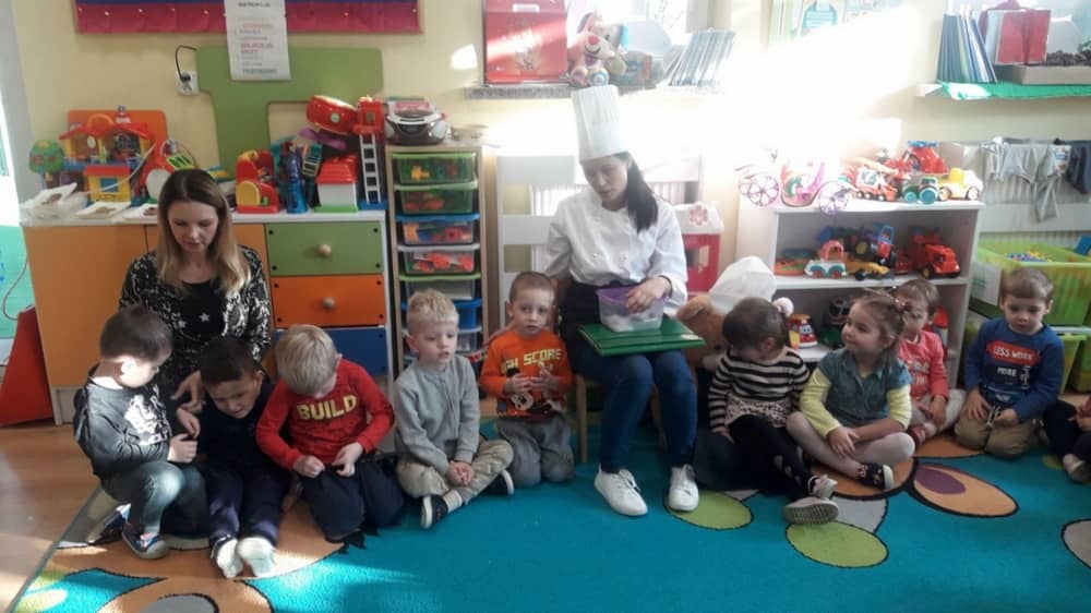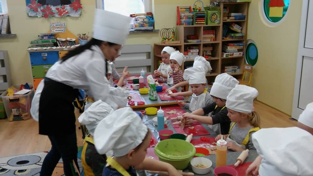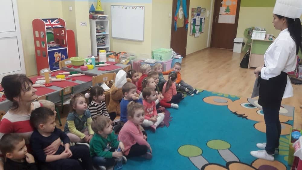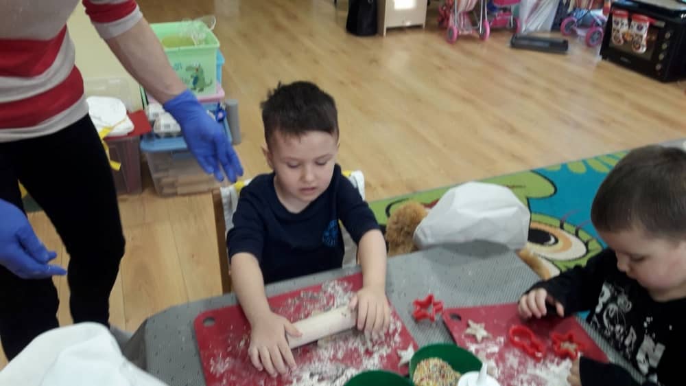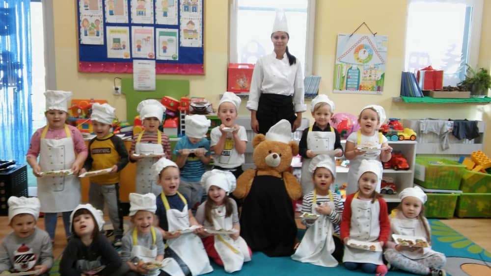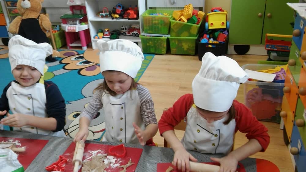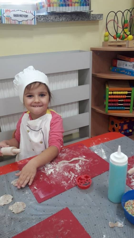 9 grudnia na długo pozostanie w pamięci przedszkolaków. Wszystko za sprawą pani Natalii, cukiernika z firmy Little Cook, która wprowadziła nas w prawdziwie świąteczny nastrój. Pani cukiernik przedstawiając dzieciom swojego pomocnika Misia Kuchcika, zaprosiła przedszkolaków do spróbowania swoich sił w niecodziennym zajęciu. Po założeniu fartuszków i czapeczek kucharza na przedszkolaki padł magiczny świąteczny czar. Za sprawą korzennych zapachów, które zapanowały w całym przedszkolu i zdolności maluchów, spod wałków na tackach zaczęły się pojawiać pierniczki w przepięknych świątecznych kształtach. Upieczone gwiazdeczki, renifery, bałwanki, dzwoneczki itp. zostały przez dzieci polukrowane i ozdobione kolorowymi posypkami. Smakowały wyśmienicie, dlatego dzieci poprosiły o przepisy dla swoich mam i obiecały upiec z nimi takie pyszności na święta. Każdy przedszkolak w nagrodę za swoją pracę otrzymał dyplom i naklejkę super kuchcika.