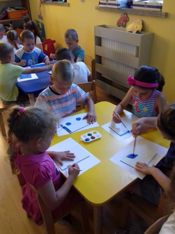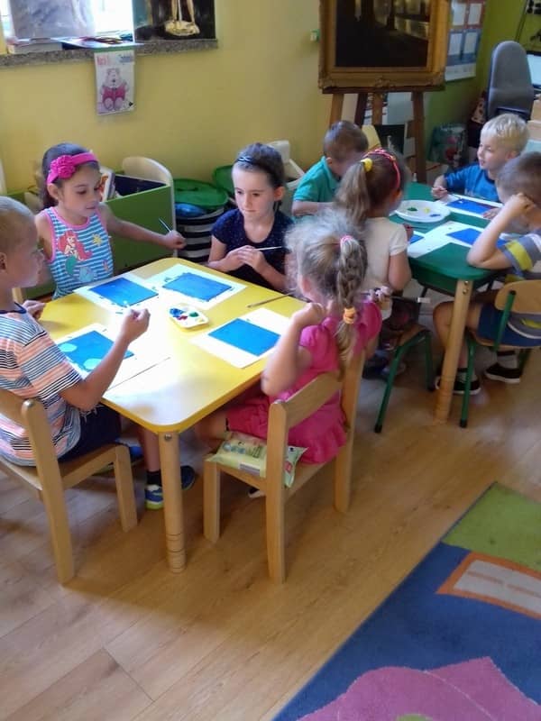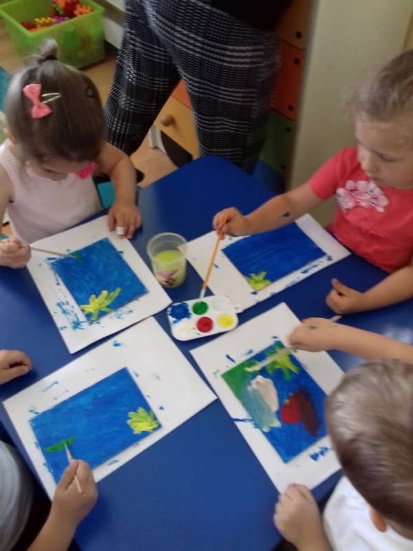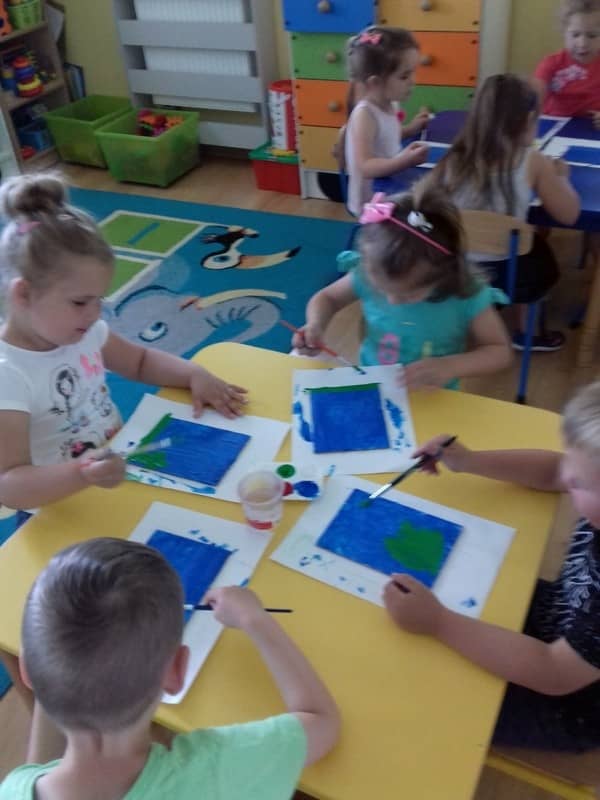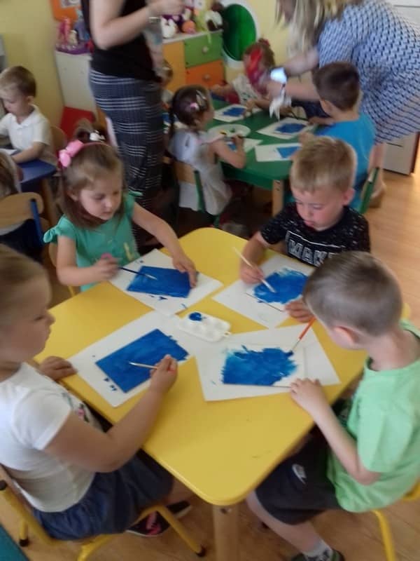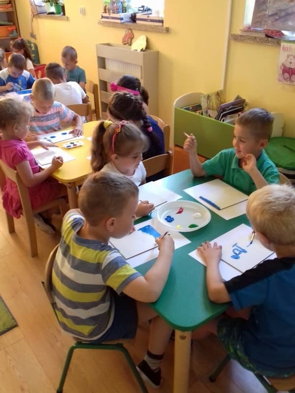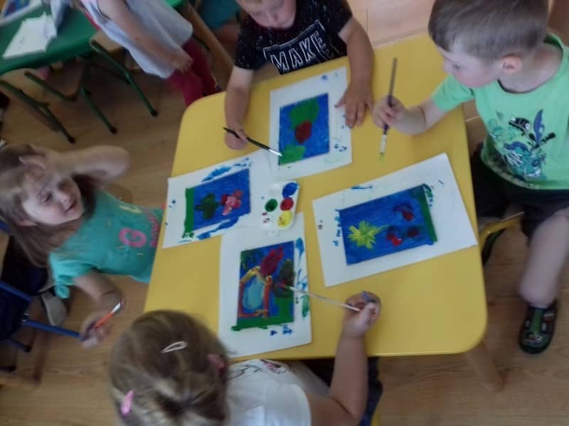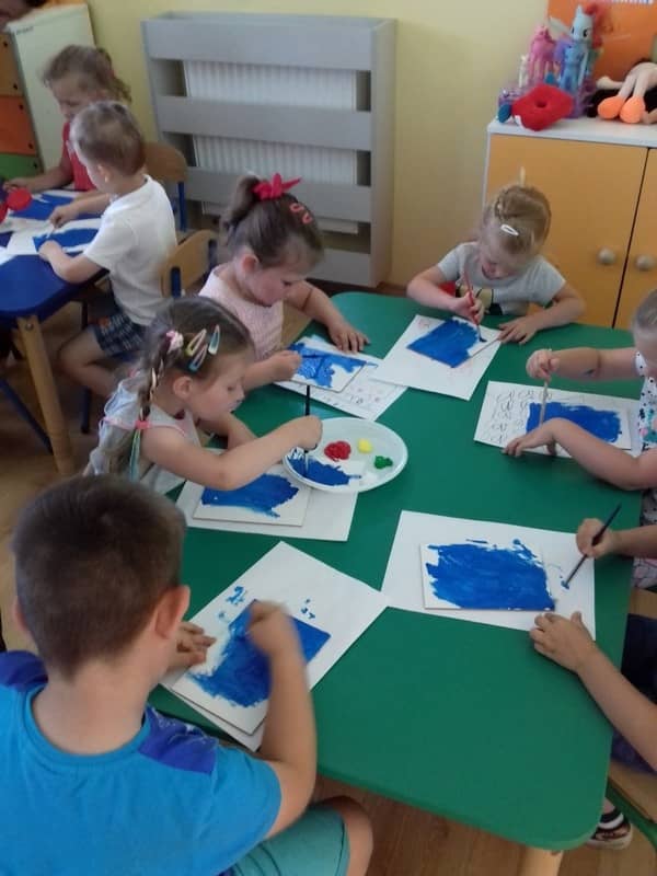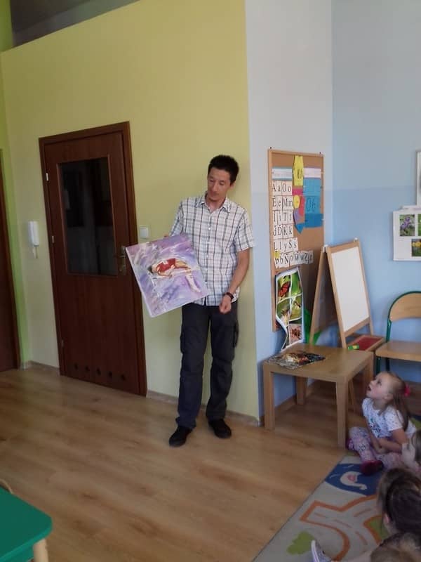 W dniu 30.05.2018 w naszym przedszkolu odbyły się warsztaty malarskie z udziałem profesjonalnego Artysty - Malarza. Na początku zaprezentował on swoją twórczość, opowiedział o historii i genezie swojego malarstwa. Następnie dzieci zapoznane zostały w warsztatem i narzędziami wykorzystywanymi w pracy malarza, a także z etapami tworzenia dzieł malarskich. Kolejną atrakcją był pokaz multimedialny z dorobkiem artystycznym malarza. Na końcu wszystkie dzieci wcieliły się w role artystów i na specjalnych podkładach malarskich oraz przy użyciu farb akrylowych wykonywały swoje dzieła. Tematem prac były kwiaty.