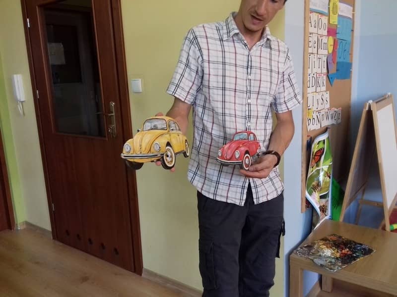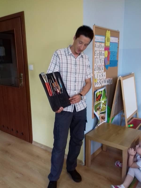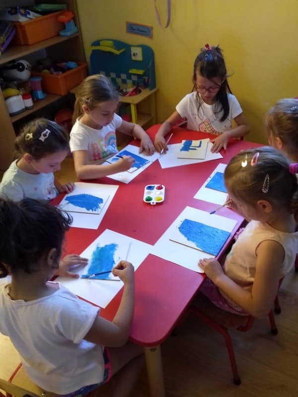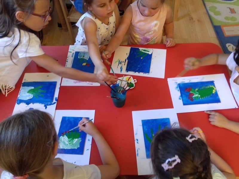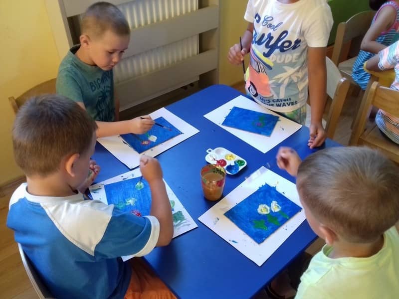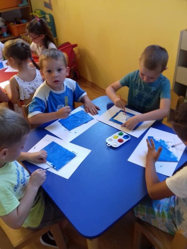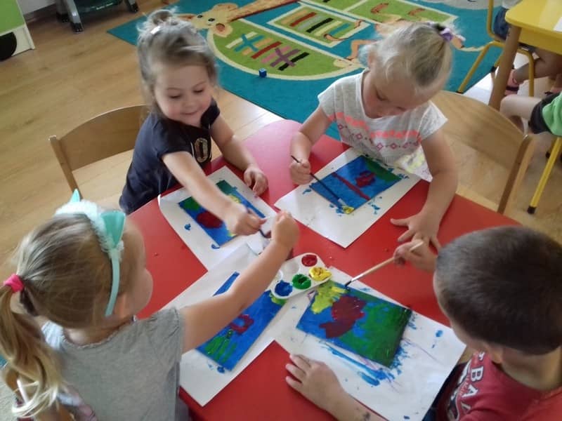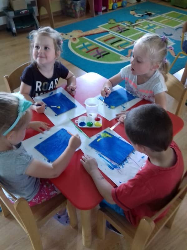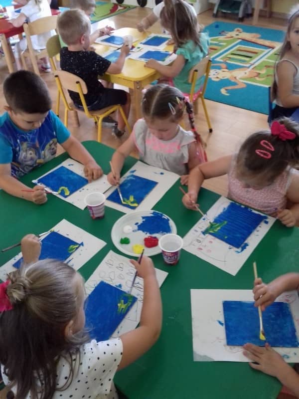 W dniu 30.05.2018 w naszym przedszkolu odbyły się warsztaty malarskie z udziałem profesjonalnego Artysty - Malarza. Na początku zaprezentował on swoją twórczość, opowiedział o historii i genezie swojego malarstwa. Następnie dzieci zapoznane zostały w warsztatem i narzędziami wykorzystywanymi w pracy malarza, a także z etapami tworzenia dzieł malarskich. Kolejną atrakcją był pokaz multimedialny z dorobkiem artystycznym malarza. Na końcu wszystkie dzieci wcieliły się w role artystów i na specjalnych podkładach malarskich oraz przy użyciu farb akrylowych wykonywały swoje dzieła. Tematem prac były kwiaty.