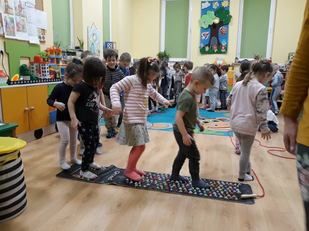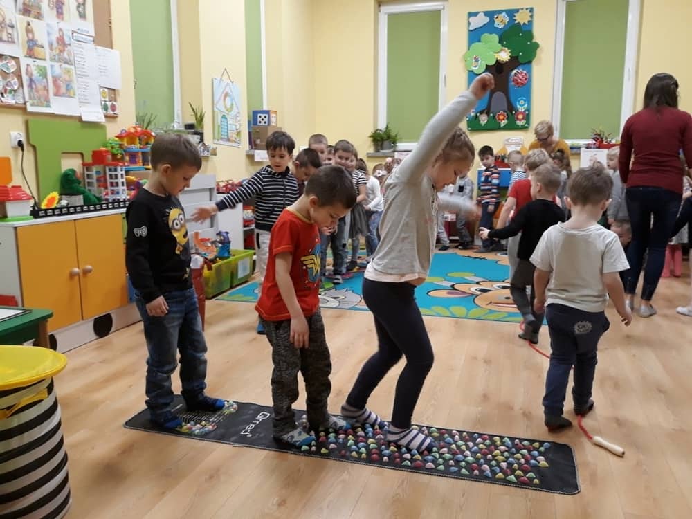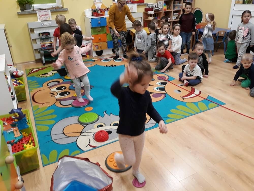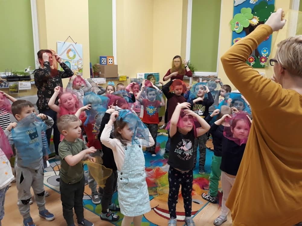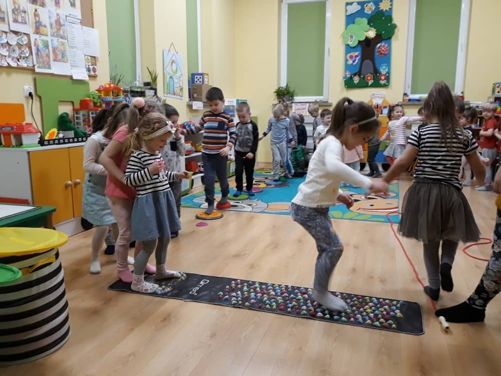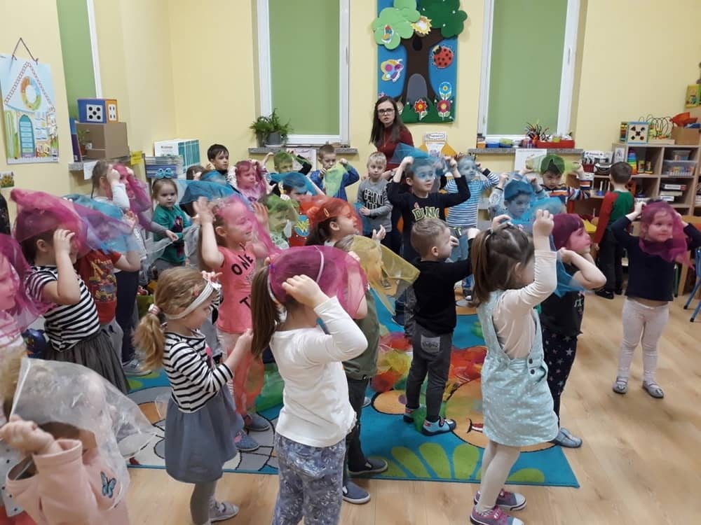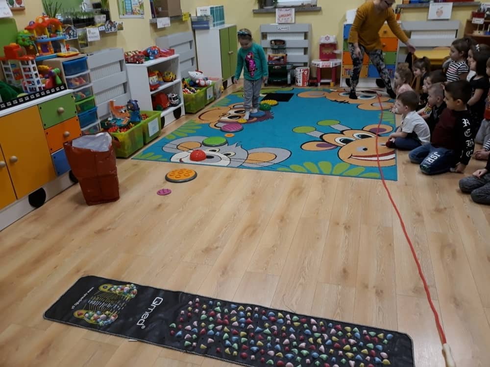 W dniu 18.03.2019 w naszym przedszkolu odbyły się nietypowe warsztaty edukacyjne oparte o zasady integracji sensorycznej. Naszym gościem była Famiga. Przeprowadzone przez nią zabawy miały na celu usprawniać koordynację wzrokowo-ruchową, stymulować zmysły, ćwiczyć poczucie równowagi, uczyć cierpliwości i wytrwałości, a także dać wiele satysfakcji i radości. W trakcie warsztatów ruchowo-sensorycznych stymulowano 7 systemów zmysłowych. Używano do tego specjalistycznych lamp oraz laserów, sensorycznych torów przeszkód, puszek zapachowych, masażerów, rekwizytów cyrkowych. Najważniejsze, że dzieci przeżyły wspaniałą przygodę i poprzez zabawę oraz ruch mogły wyrażać siebie i odkrywać świat.