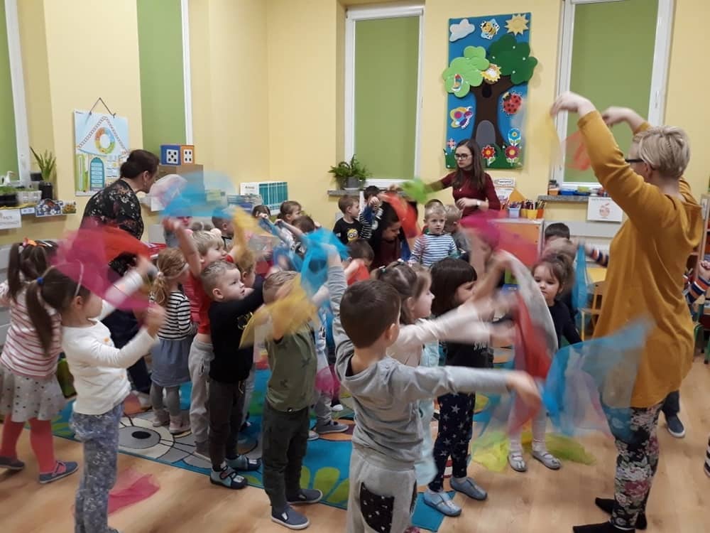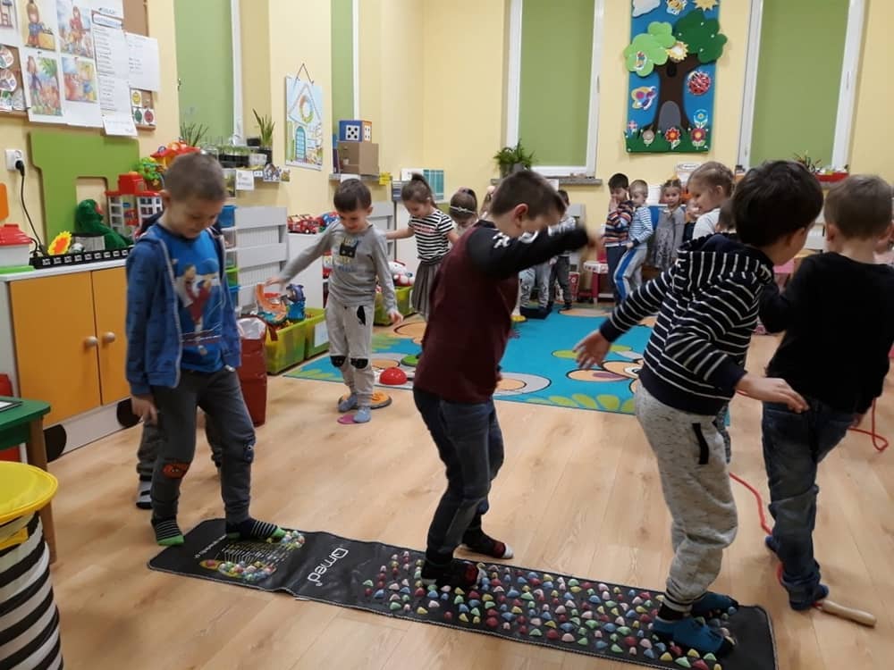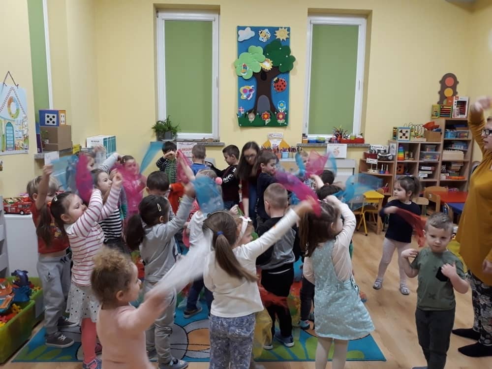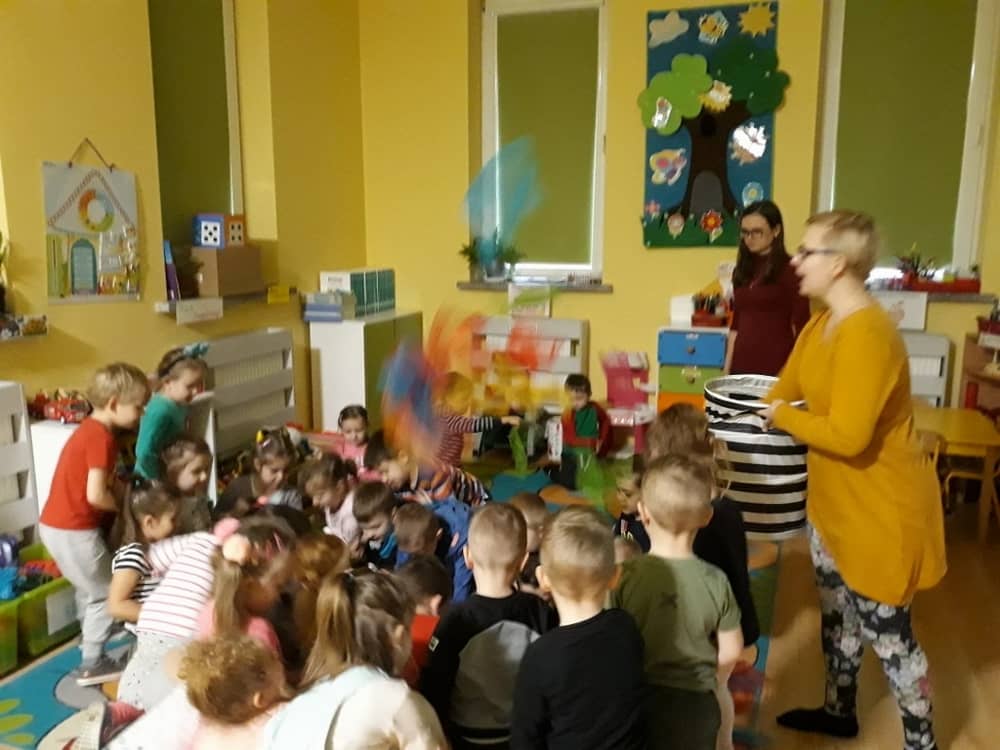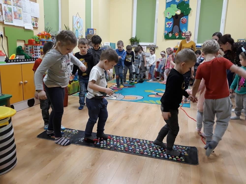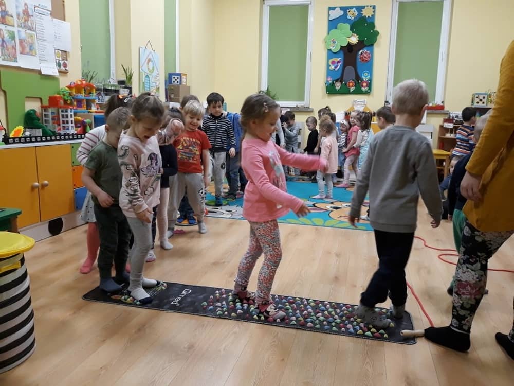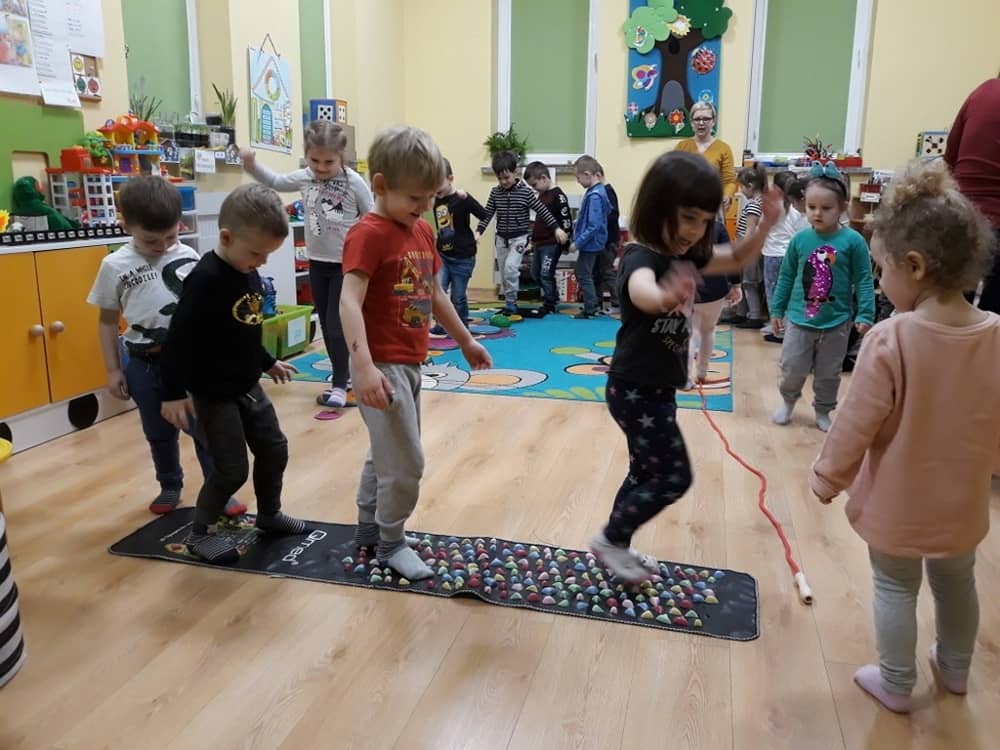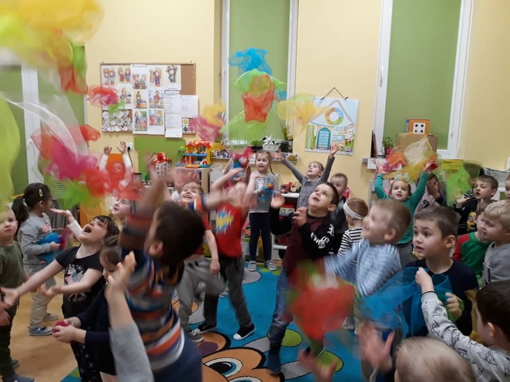 W dniu 18.03.2019 w naszym przedszkolu odbyły się nietypowe warsztaty edukacyjne oparte o zasady integracji sensorycznej. Naszym gościem była Famiga. Przeprowadzone przez nią zabawy miały na celu usprawniać koordynację wzrokowo-ruchową, stymulować zmysły, ćwiczyć poczucie równowagi, uczyć cierpliwości i wytrwałości, a także dać wiele satysfakcji i radości. W trakcie warsztatów ruchowo-sensorycznych stymulowano 7 systemów zmysłowych. Używano do tego specjalistycznych lamp oraz laserów, sensorycznych torów przeszkód, puszek zapachowych, masażerów, rekwizytów cyrkowych. Najważniejsze, że dzieci przeżyły wspaniałą przygodę i poprzez zabawę oraz ruch mogły wyrażać siebie i odkrywać świat.