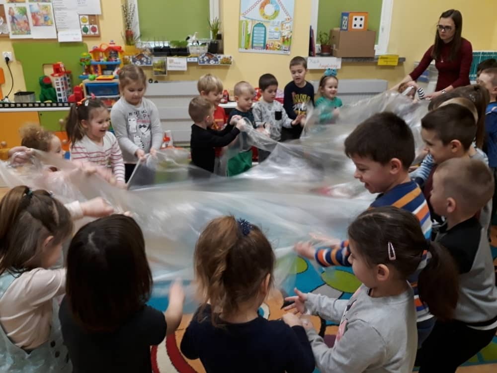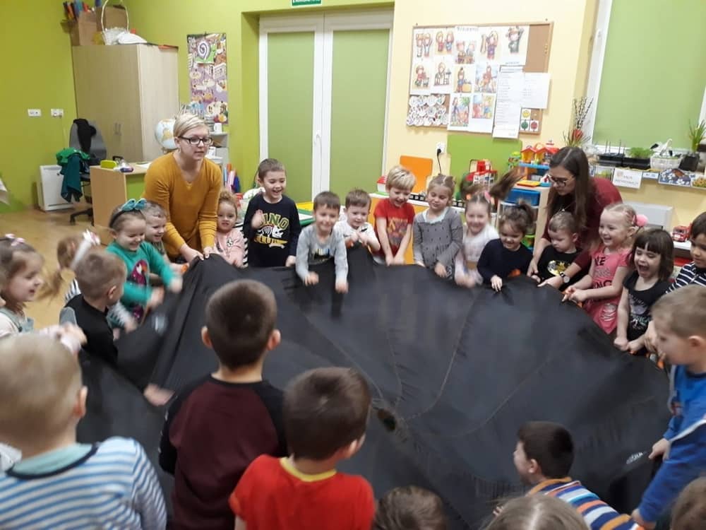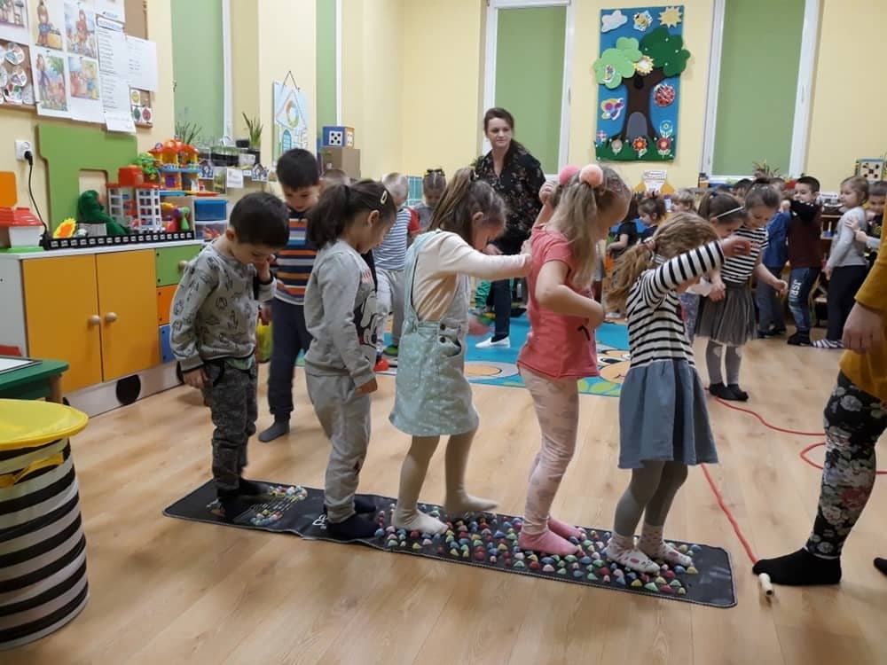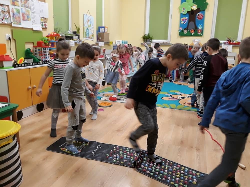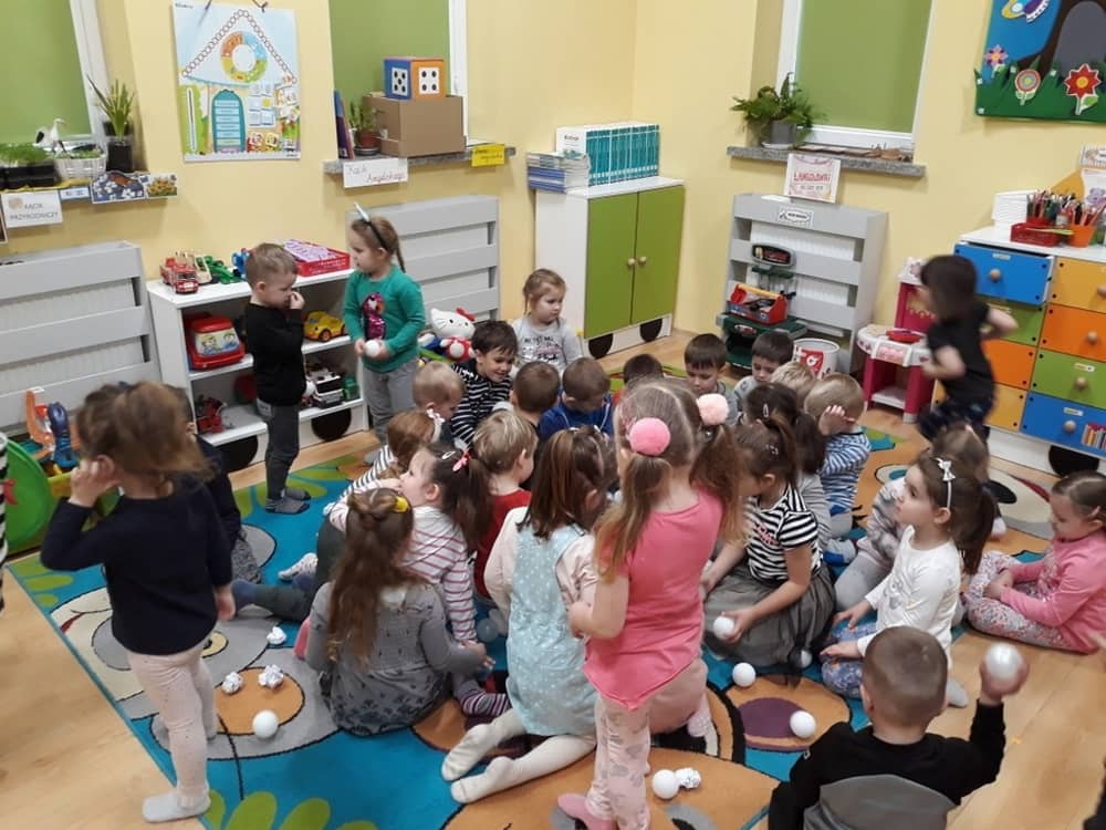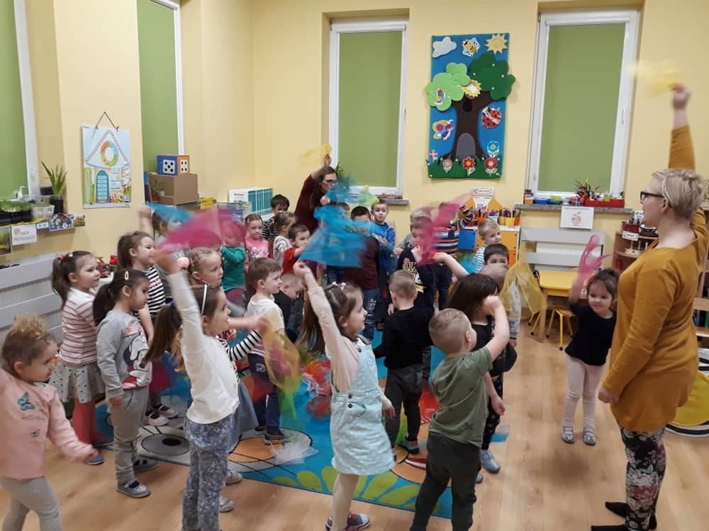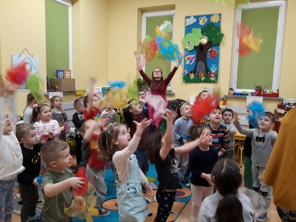 W dniu 18.03.2019 w naszym przedszkolu odbyły się nietypowe warsztaty edukacyjne oparte o zasady integracji sensorycznej. Naszym gościem była Famiga. Przeprowadzone przez nią zabawy miały na celu usprawniać koordynację wzrokowo-ruchową, stymulować zmysły, ćwiczyć poczucie równowagi, uczyć cierpliwości i wytrwałości, a także dać wiele satysfakcji i radości. W trakcie warsztatów ruchowo-sensorycznych stymulowano 7 systemów zmysłowych. Używano do tego specjalistycznych lamp oraz laserów, sensorycznych torów przeszkód, puszek zapachowych, masażerów, rekwizytów cyrkowych. Najważniejsze, że dzieci przeżyły wspaniałą przygodę i poprzez zabawę oraz ruch mogły wyrażać siebie i odkrywać świat.