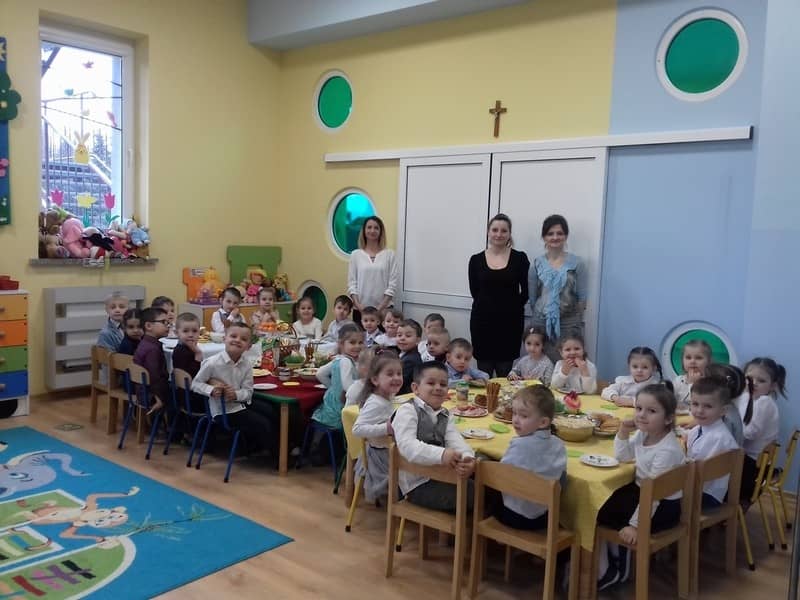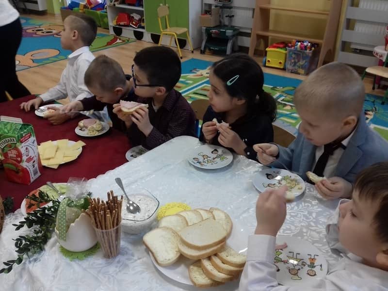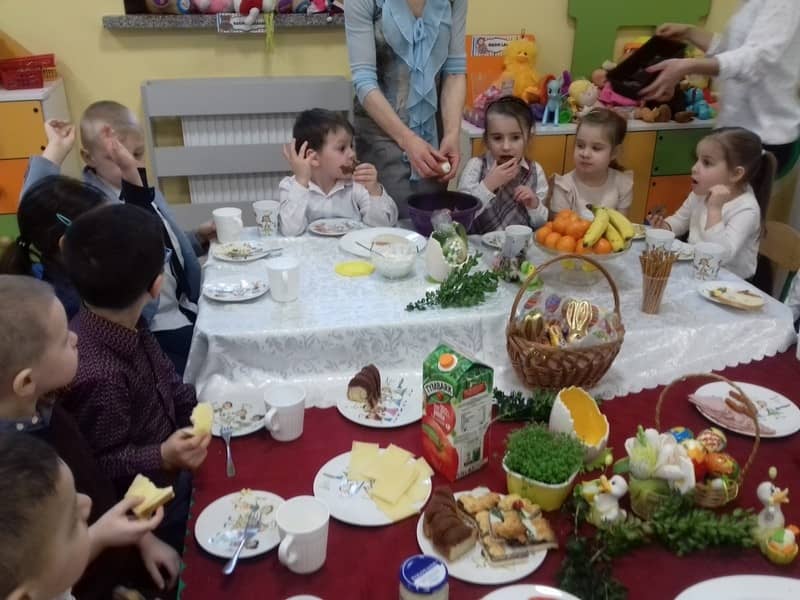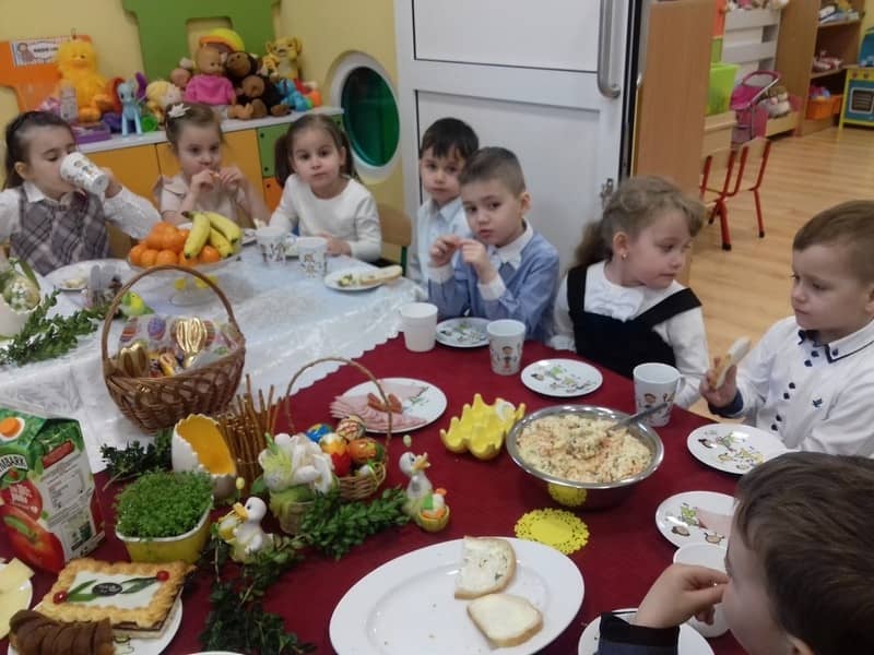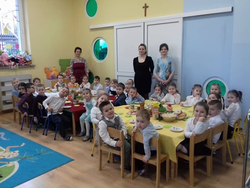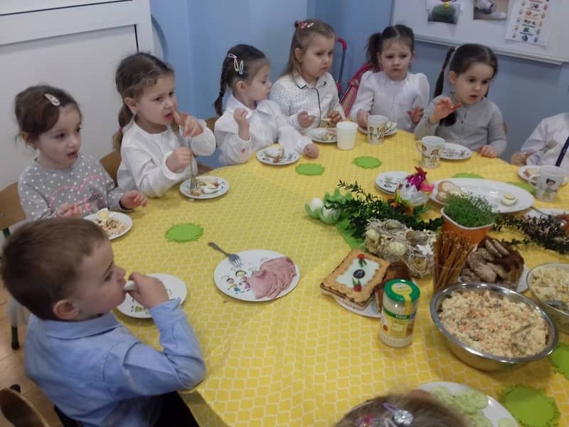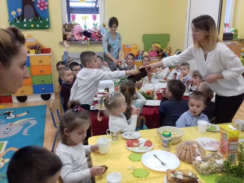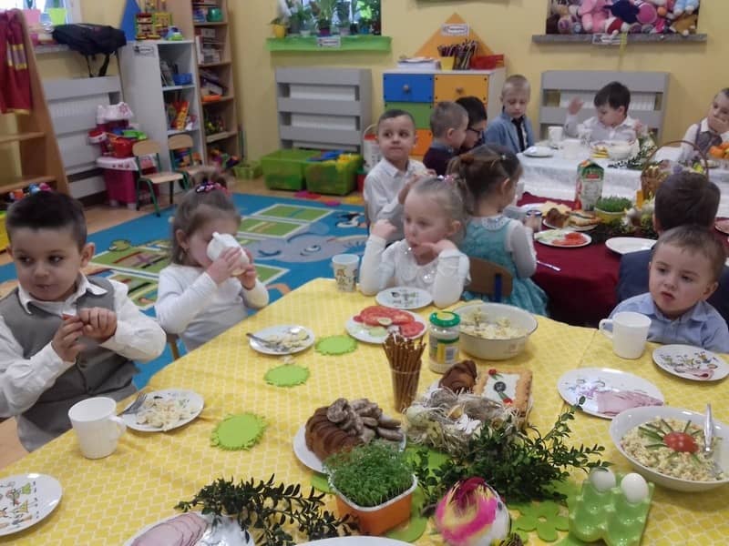 W dniu 28.03.2018 w naszym przedszkolu odbyło się Uroczyste Wielkanocne Śniadanie. Wszystkie dzieci wraz z nauczycielami i opiekunami usiadły przy suto zastawionym stole, pełnym nie tylko smakowitych, ale przede wszystkim tradycyjnych wielkanocnych potraw. Dzięki zaangażowaniu Rodziców w przygotowywanie potraw, dzieci mogły poczuć zbliżające się święta. W tym dniu dzieci również wręczyły swoim rodzicom wykonane przez siebie upominki z okazji Świąt Wielkanocnych.