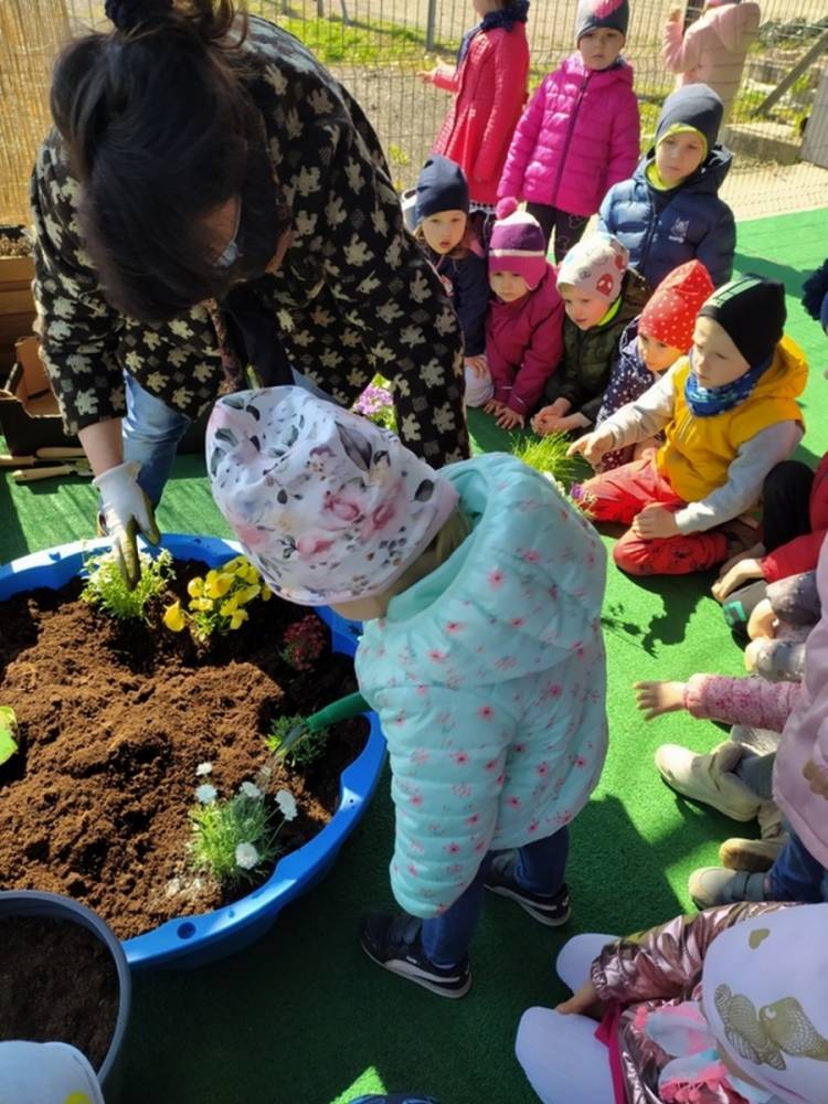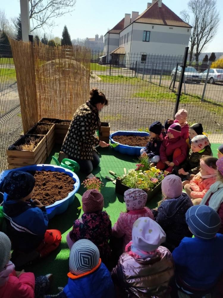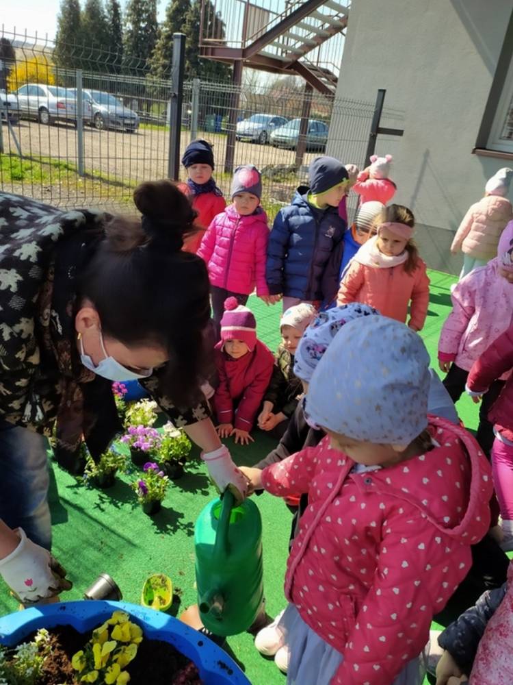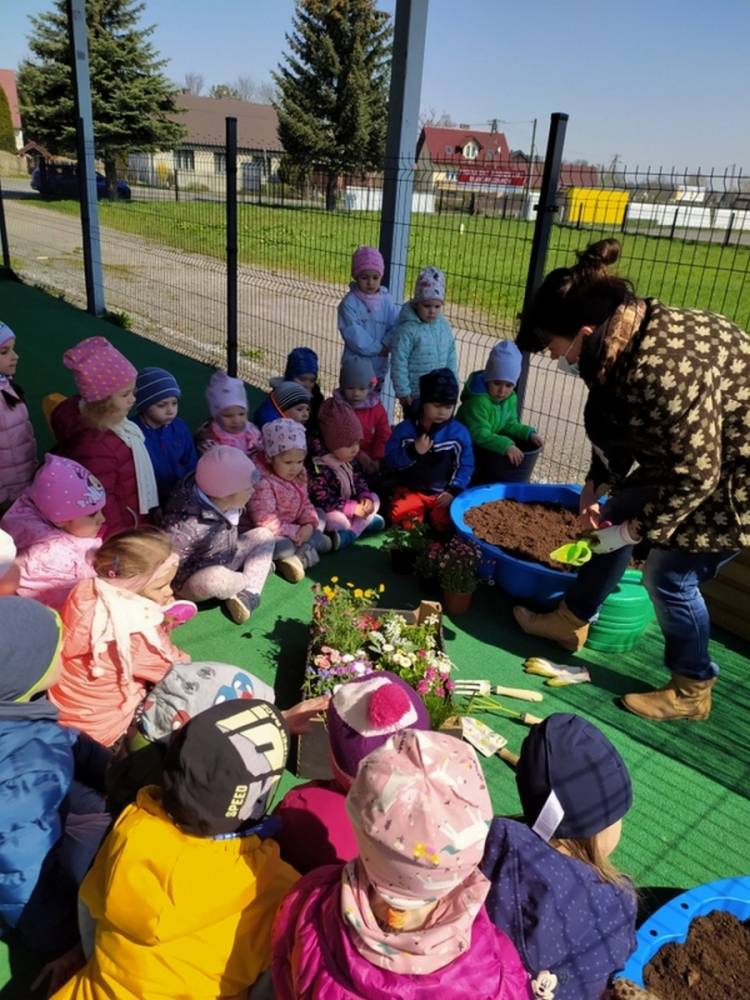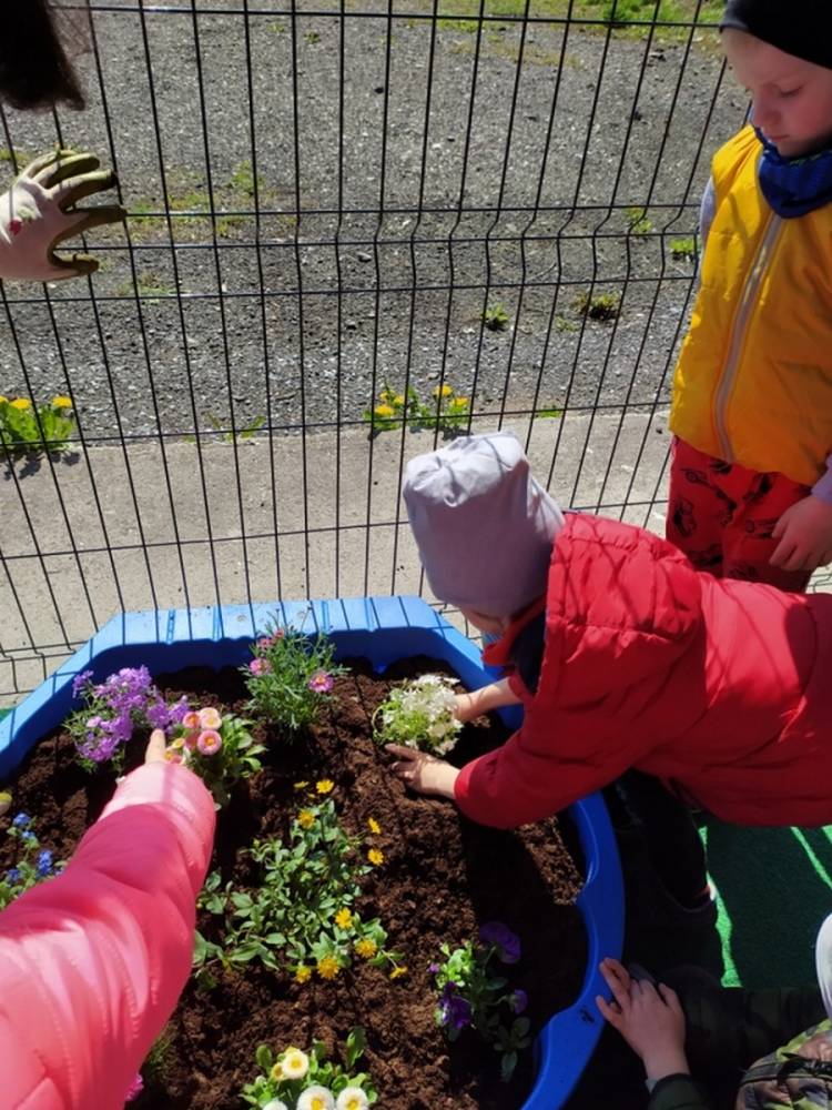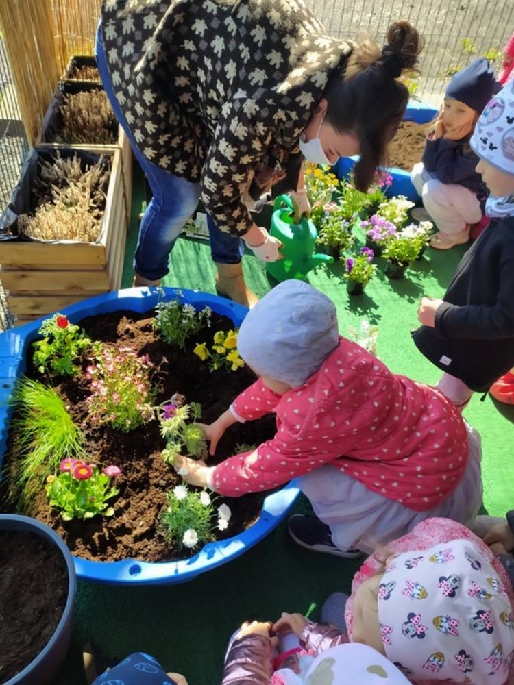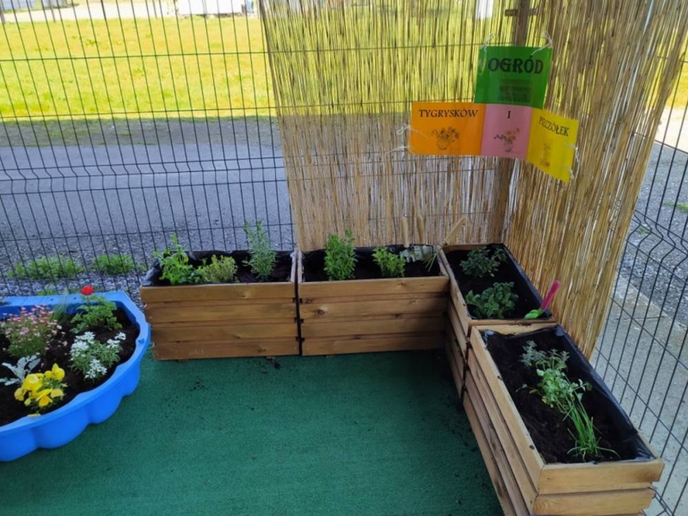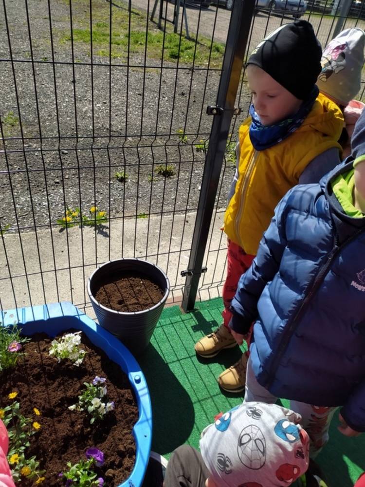 W ostatnich dniach kwietnia nasze przedszkolaki doczekały się swojego wiosennego ogródka. Na tarasie przedszkolnym ustawiono zakupione donice, kwiaty oraz zioła. Dzieci zaangażowały się w ogródkowe prace- posadziły kwiaty i zioła oraz starannie podlały wszystkie rośliny. Inicjatywa założenia ogródka przedszkolnego była efektem bardzo udanego kiermaszu wielkanocnego, który pozwolił zgromadzić potrzebne fundusze, a wszystko dzięki zaangażowaniu rodziców. Ogródek będzie cieszył wszystkie dzieci i zachwycał ich swymi kolorami oraz zapachami.