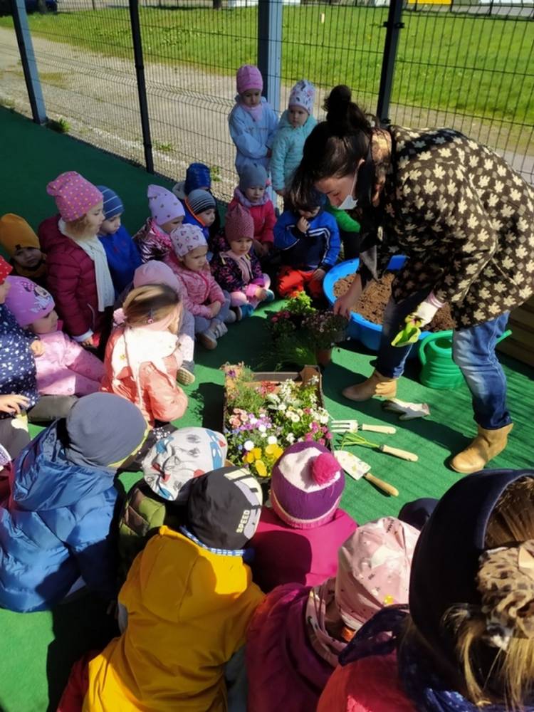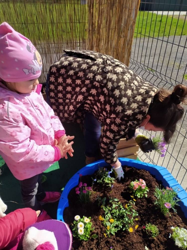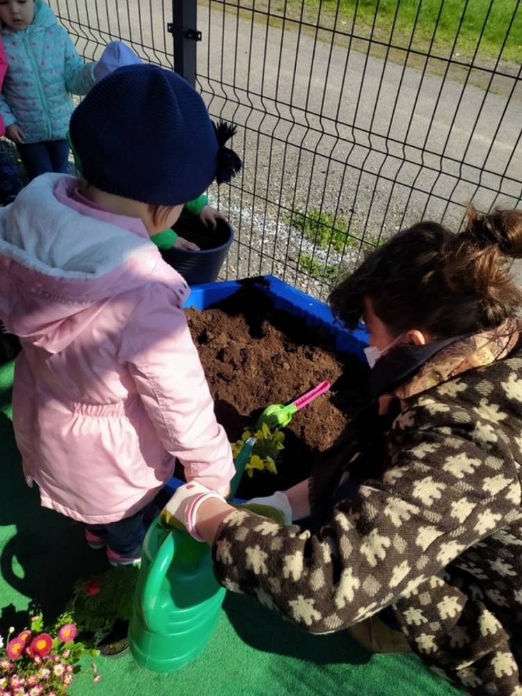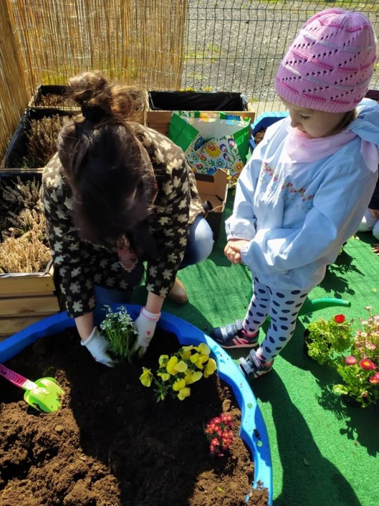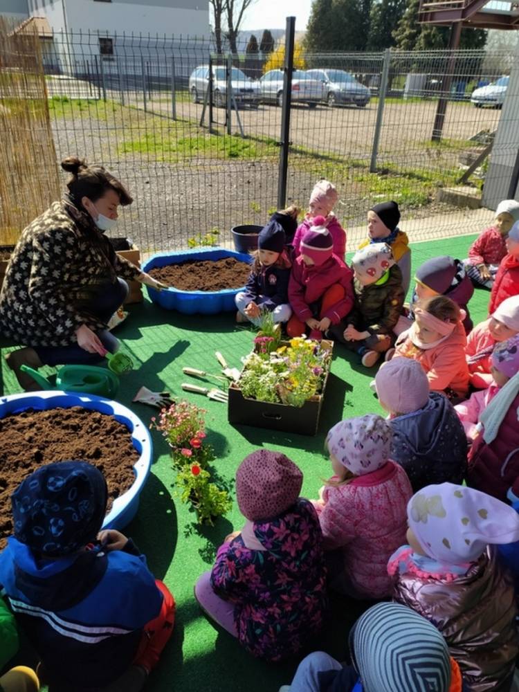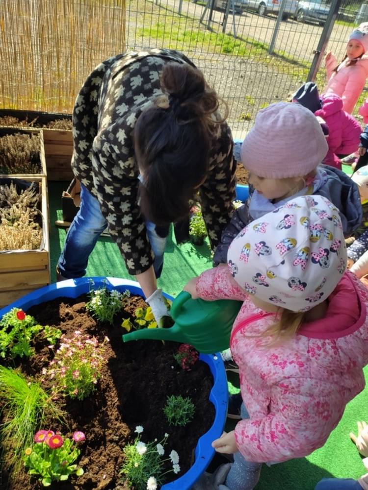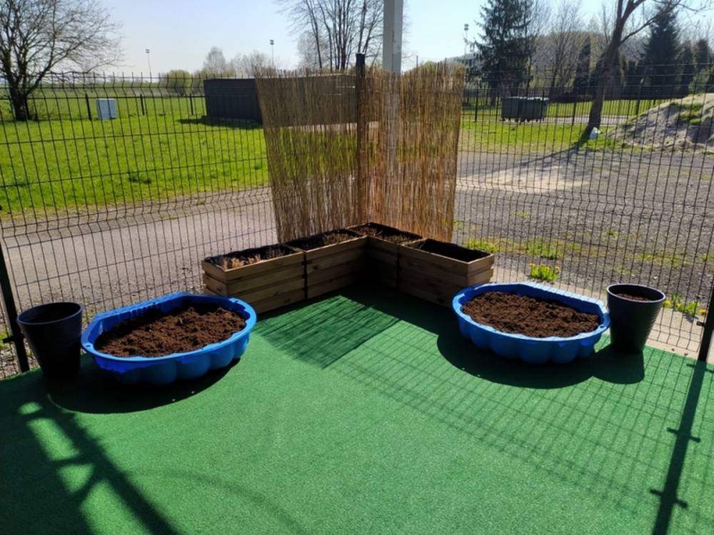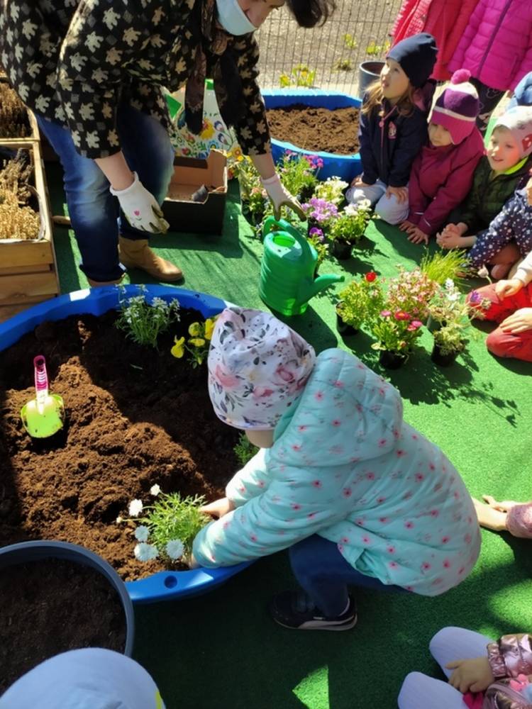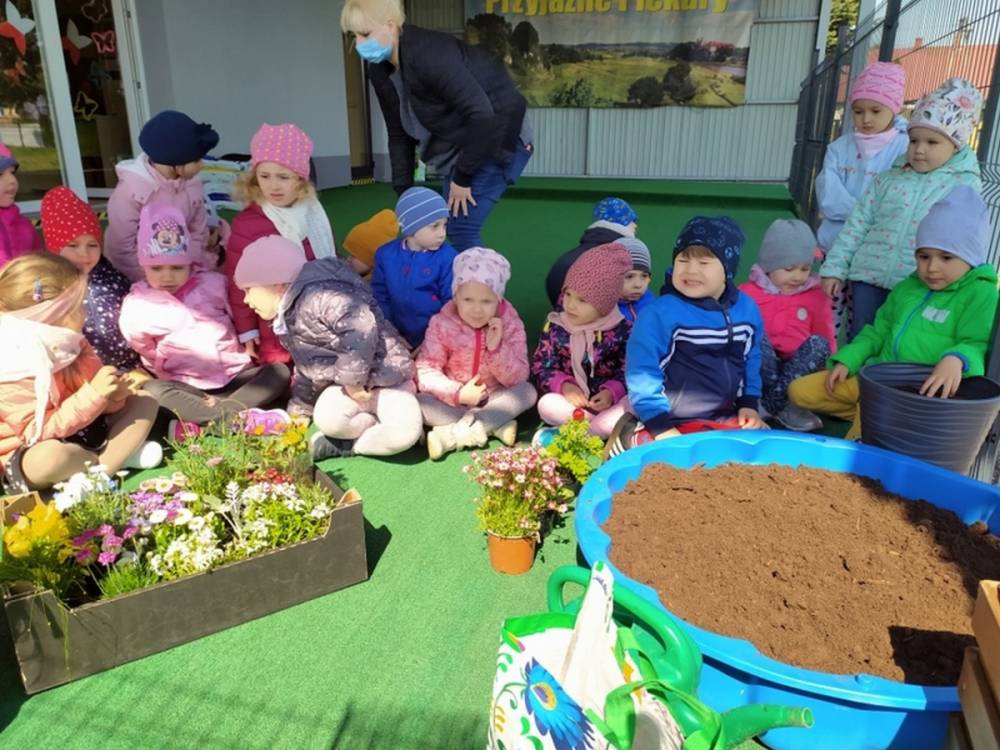 W ostatnich dniach kwietnia nasze przedszkolaki doczekały się swojego wiosennego ogródka. Na tarasie przedszkolnym ustawiono zakupione donice, kwiaty oraz zioła. Dzieci zaangażowały się w ogródkowe prace- posadziły kwiaty i zioła oraz starannie podlały wszystkie rośliny. Inicjatywa założenia ogródka przedszkolnego była efektem bardzo udanego kiermaszu wielkanocnego, który pozwolił zgromadzić potrzebne fundusze, a wszystko dzięki zaangażowaniu rodziców. Ogródek będzie cieszył wszystkie dzieci i zachwycał ich swymi kolorami oraz zapachami.