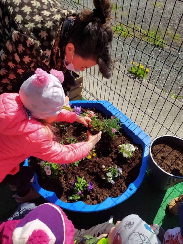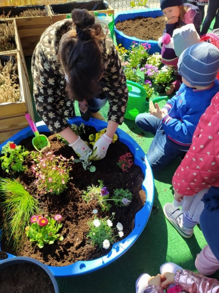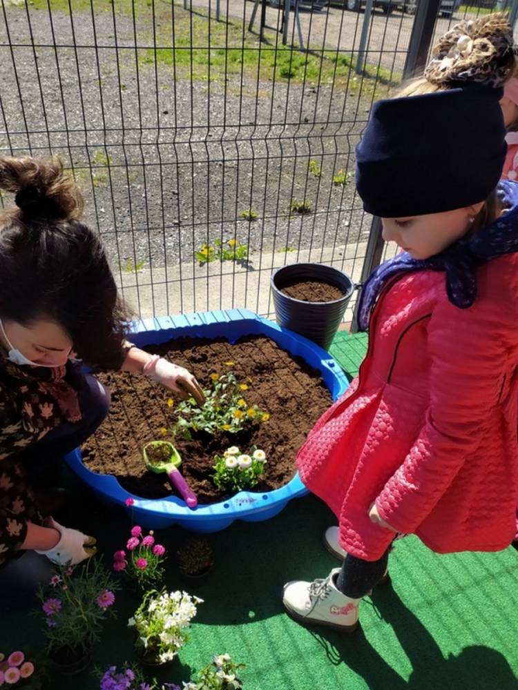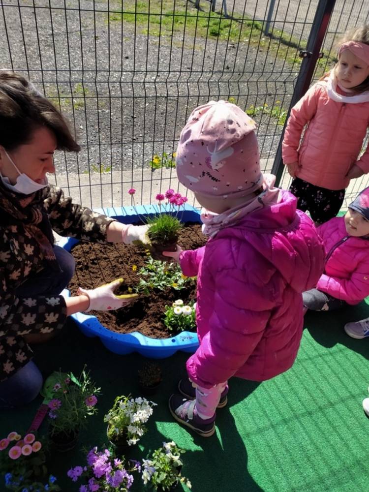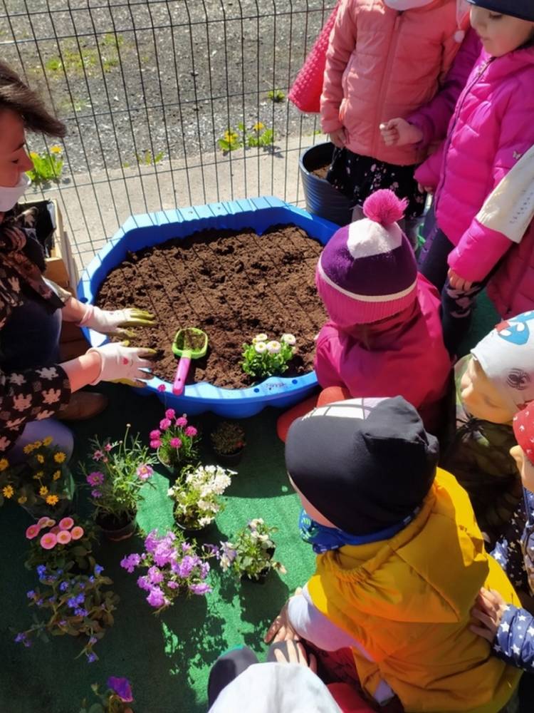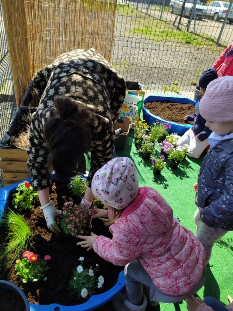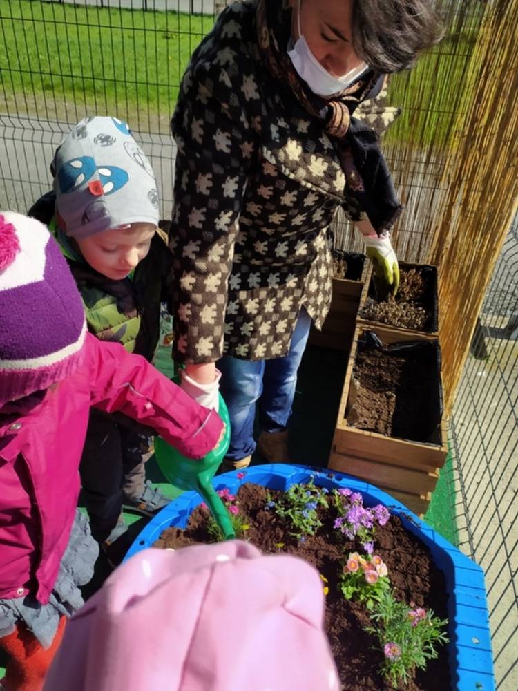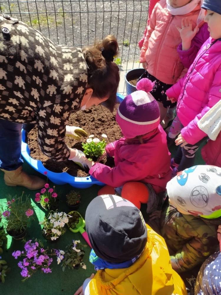 W ostatnich dniach kwietnia nasze przedszkolaki doczekały się swojego wiosennego ogródka. Na tarasie przedszkolnym ustawiono zakupione donice, kwiaty oraz zioła. Dzieci zaangażowały się w ogródkowe prace- posadziły kwiaty i zioła oraz starannie podlały wszystkie rośliny. Inicjatywa założenia ogródka przedszkolnego była efektem bardzo udanego kiermaszu wielkanocnego, który pozwolił zgromadzić potrzebne fundusze, a wszystko dzięki zaangażowaniu rodziców. Ogródek będzie cieszył wszystkie dzieci i zachwycał ich swymi kolorami oraz zapachami.