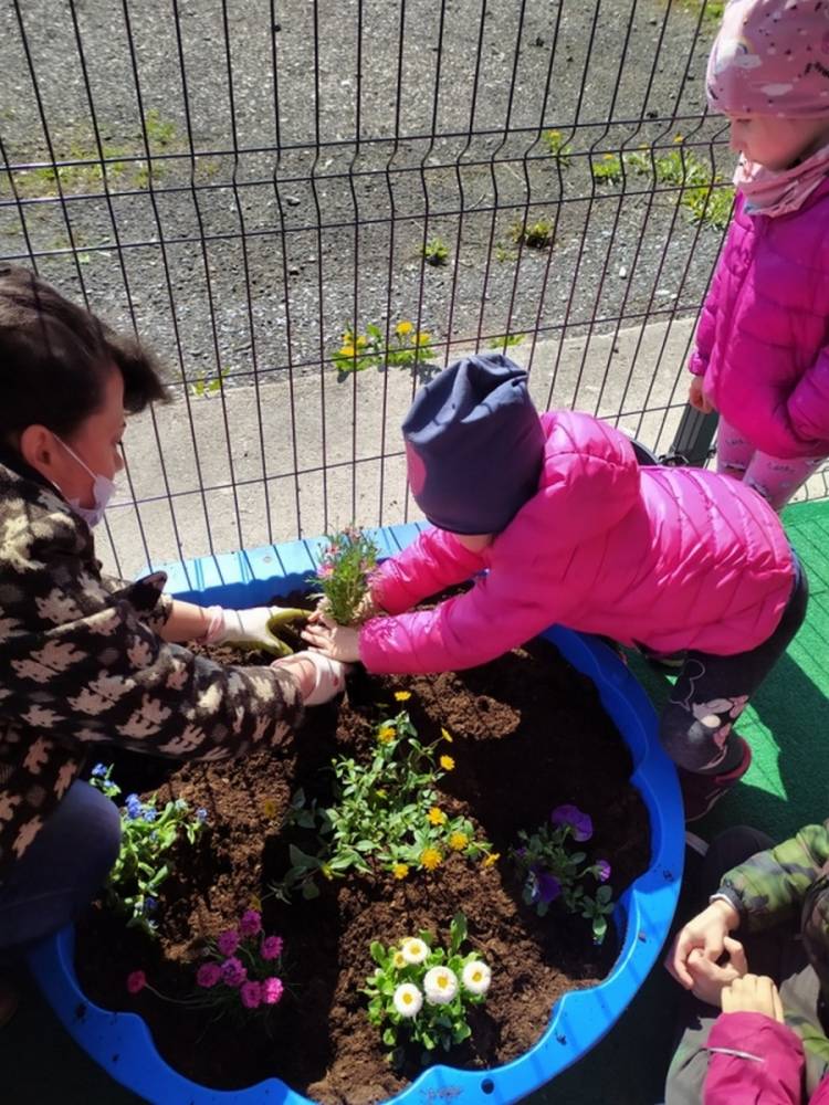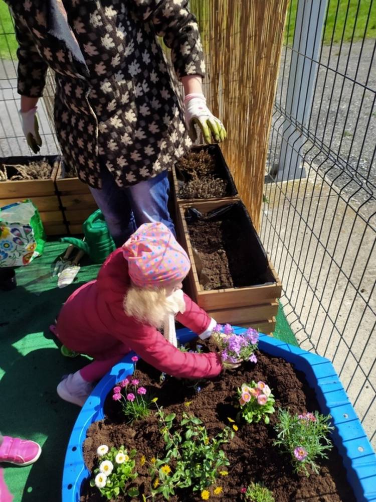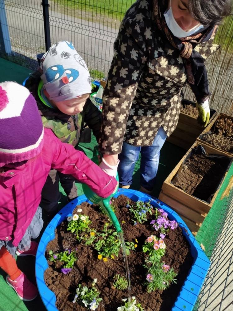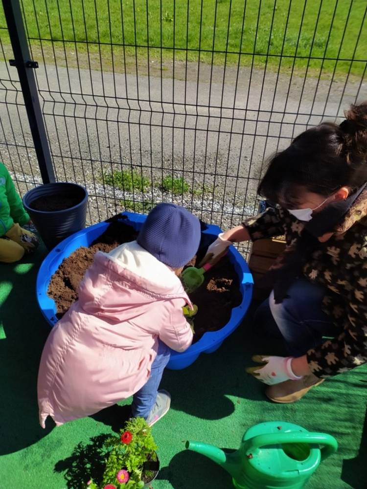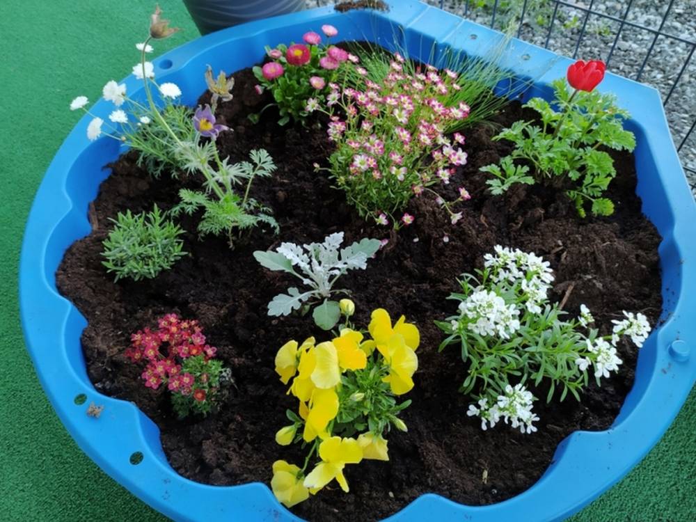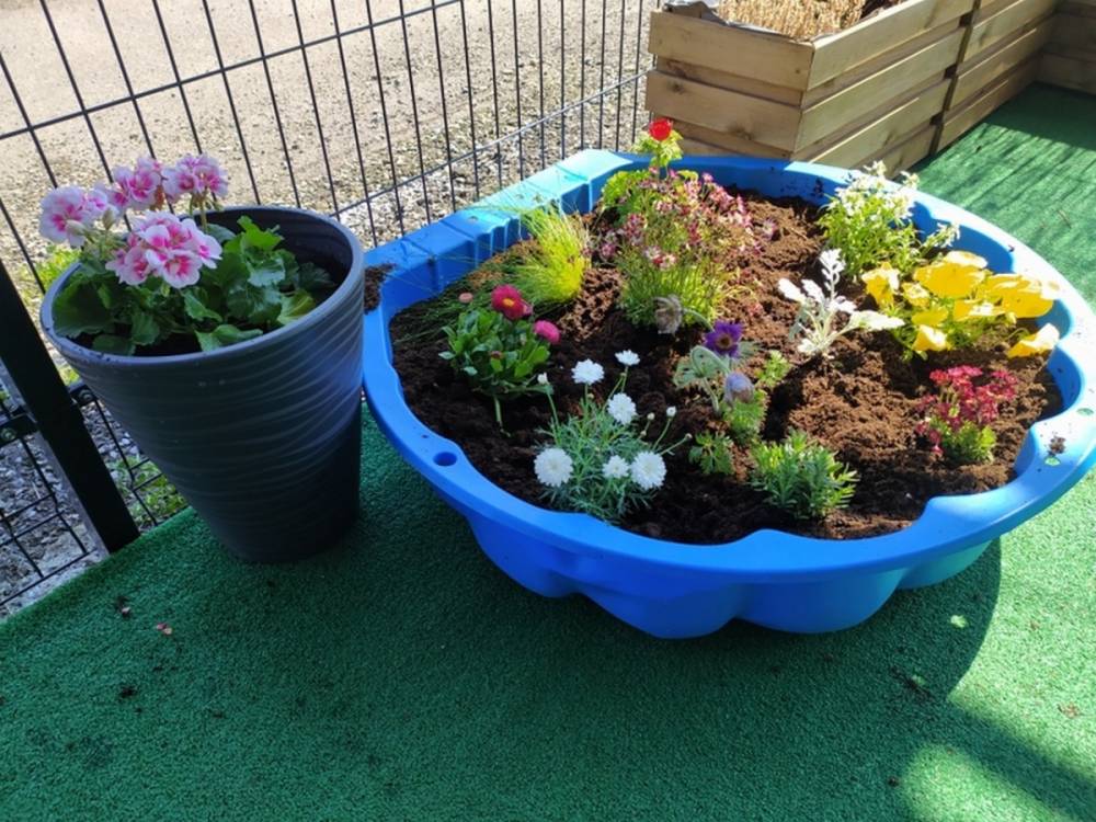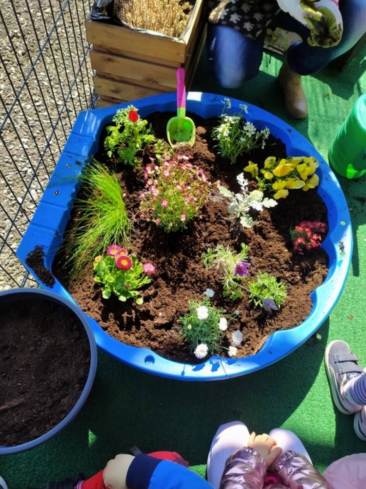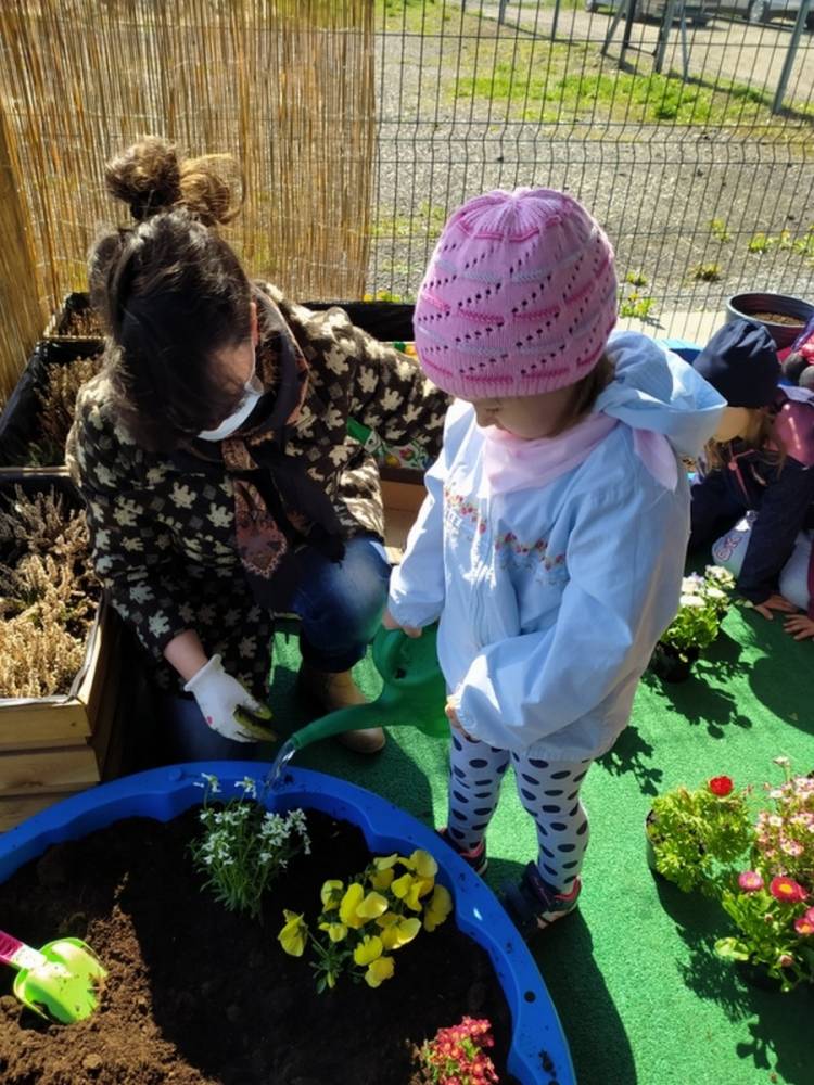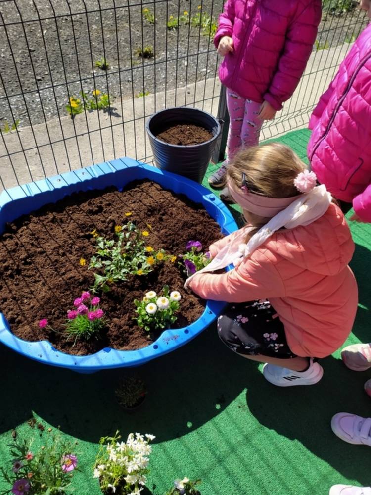 W ostatnich dniach kwietnia nasze przedszkolaki doczekały się swojego wiosennego ogródka. Na tarasie przedszkolnym ustawiono zakupione donice, kwiaty oraz zioła. Dzieci zaangażowały się w ogródkowe prace- posadziły kwiaty i zioła oraz starannie podlały wszystkie rośliny. Inicjatywa założenia ogródka przedszkolnego była efektem bardzo udanego kiermaszu wielkanocnego, który pozwolił zgromadzić potrzebne fundusze, a wszystko dzięki zaangażowaniu rodziców. Ogródek będzie cieszył wszystkie dzieci i zachwycał ich swymi kolorami oraz zapachami.