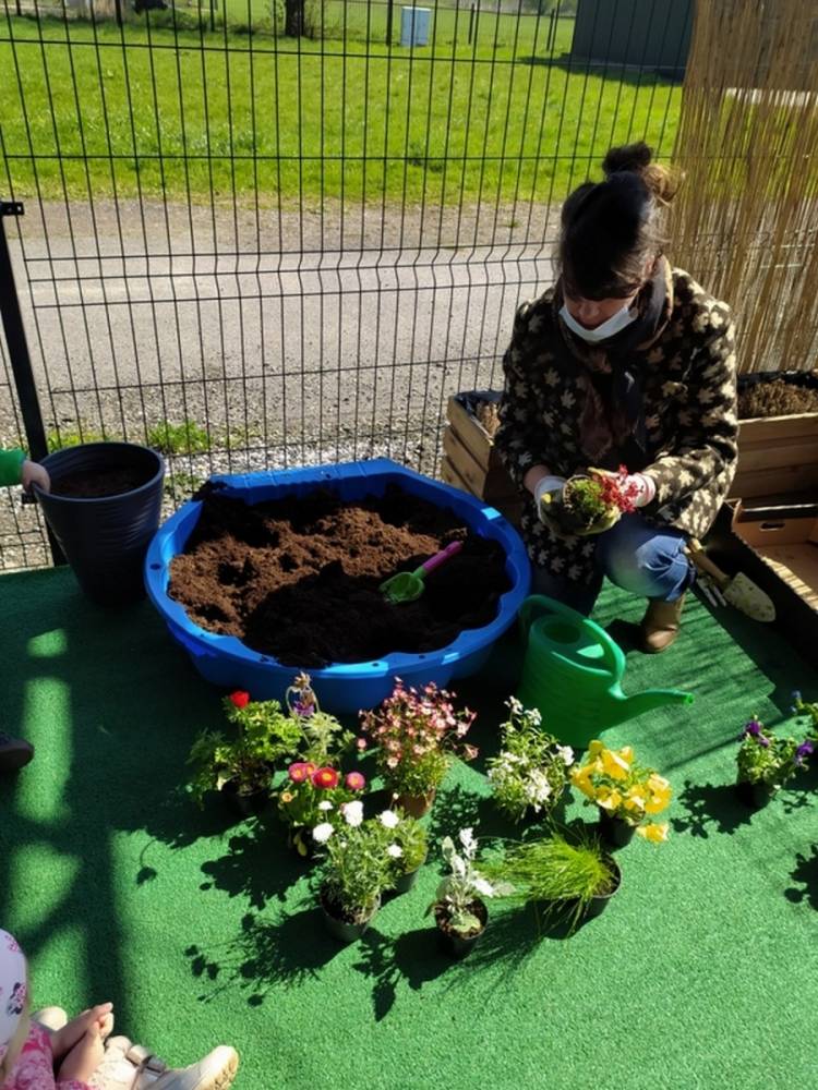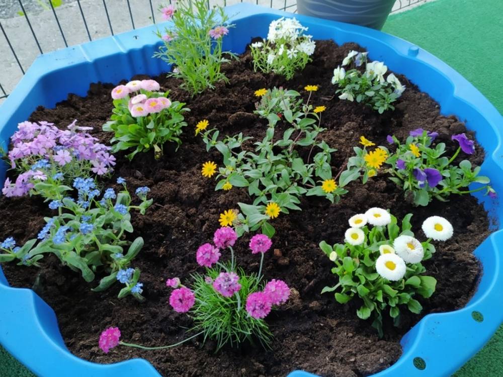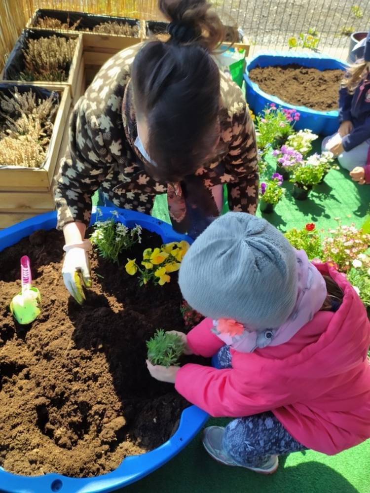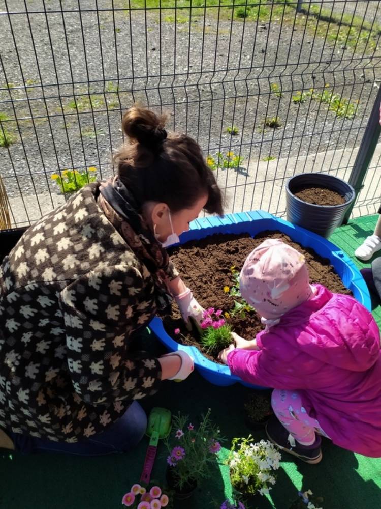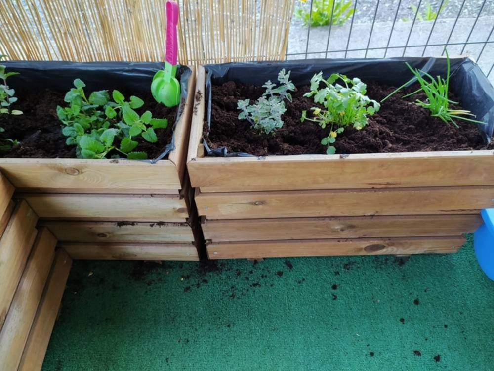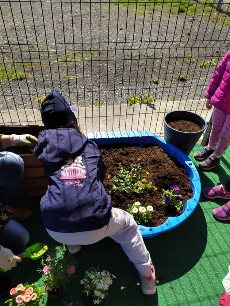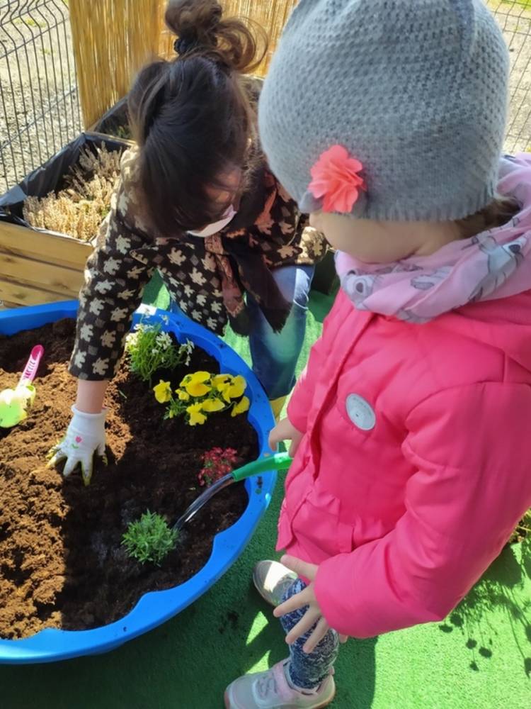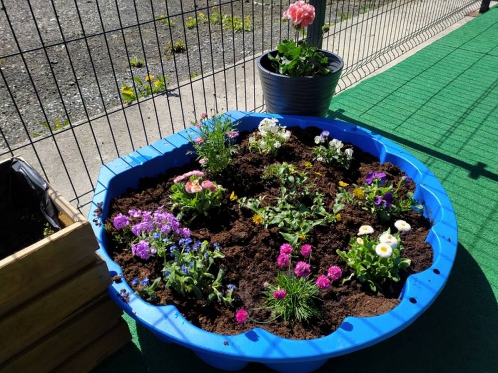 W ostatnich dniach kwietnia nasze przedszkolaki doczekały się swojego wiosennego ogródka. Na tarasie przedszkolnym ustawiono zakupione donice, kwiaty oraz zioła. Dzieci zaangażowały się w ogródkowe prace- posadziły kwiaty i zioła oraz starannie podlały wszystkie rośliny. Inicjatywa założenia ogródka przedszkolnego była efektem bardzo udanego kiermaszu wielkanocnego, który pozwolił zgromadzić potrzebne fundusze, a wszystko dzięki zaangażowaniu rodziców. Ogródek będzie cieszył wszystkie dzieci i zachwycał ich swymi kolorami oraz zapachami.