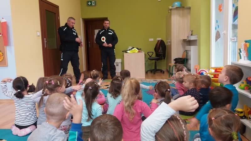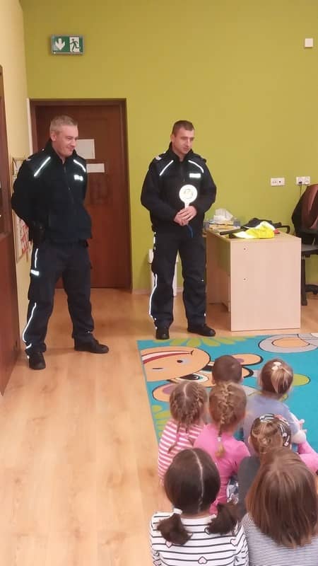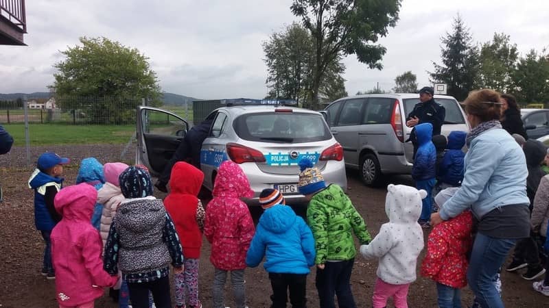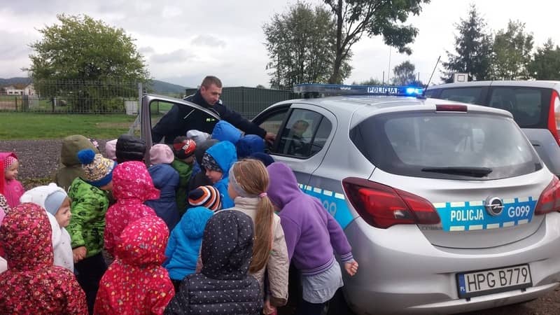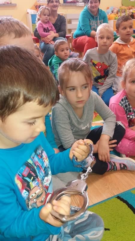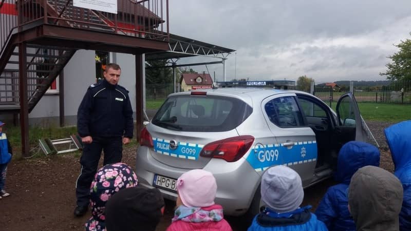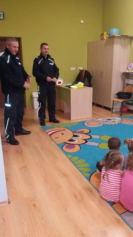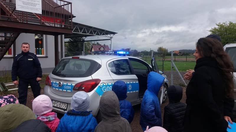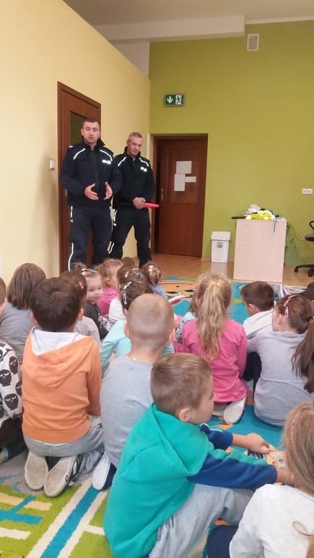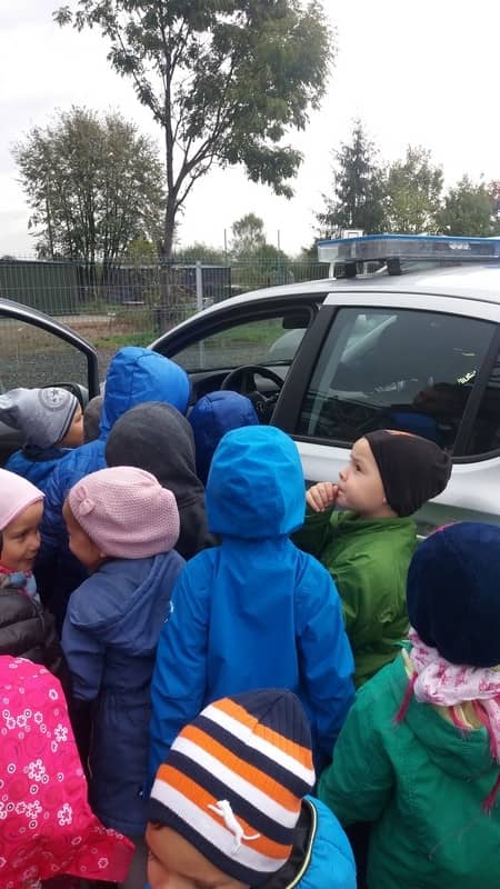 W dniu 06.10.2017r. nasze przedszkole odwiedzili policjanci. Panowie przeprowadzili prelekcję na temat bezpieczeństwa, której celem było kształtowanie prawidłowych zachowań oraz postaw wśród przedszkolaków. Policjanci uświadomili przedszkolaków o konieczności jeżdżenia w fotelikach z zapiętymi pasami, a także o nie zawieraniu znajomości z obcą osobą dorosłą. Dzieci zapoznały się z zasadami bezpiecznego poruszania się podczas przechodzenia przez jezdnię oraz zapamiętały ważne numery alarmowe. Na zakończenie spotkania dzieci mogły zobaczyć policyjny samochód oraz posłuchać syreny policyjnej. Przedszkolaki były bardzo zadowolone.