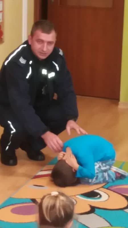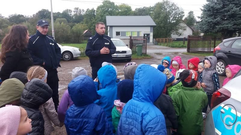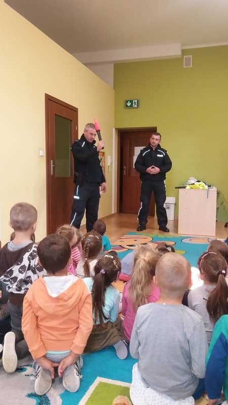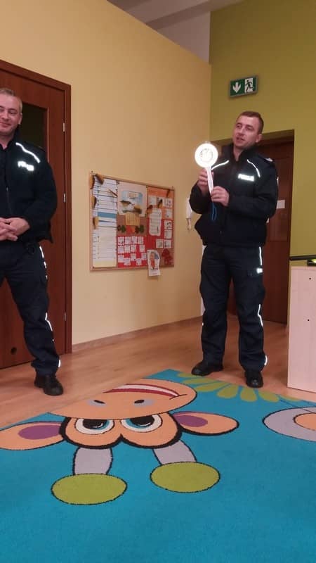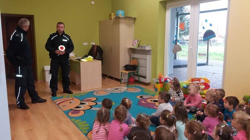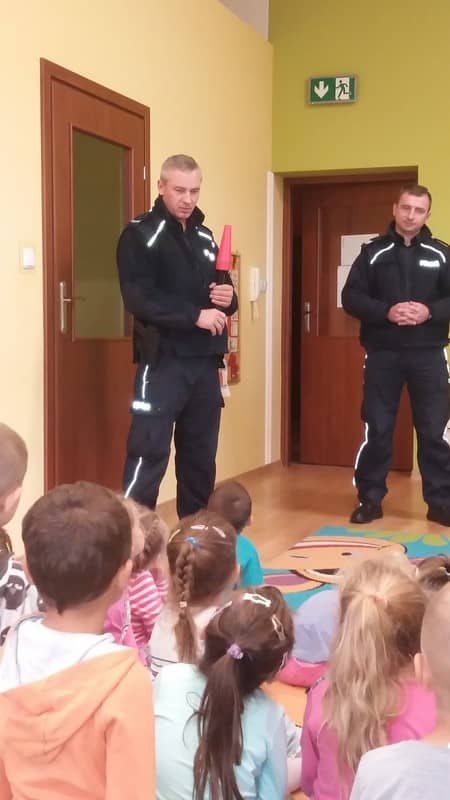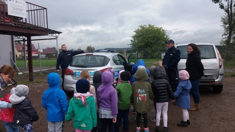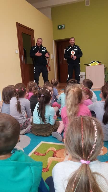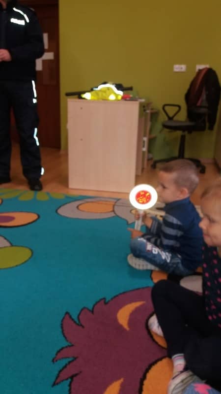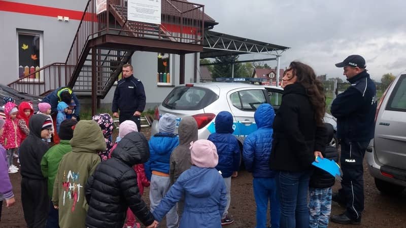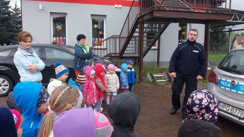 W dniu 06.10.2017r. nasze przedszkole odwiedzili policjanci. Panowie przeprowadzili prelekcję na temat bezpieczeństwa, której celem było kształtowanie prawidłowych zachowań oraz postaw wśród przedszkolaków. Policjanci uświadomili przedszkolaków o konieczności jeżdżenia w fotelikach z zapiętymi pasami, a także o nie zawieraniu znajomości z obcą osobą dorosłą. Dzieci zapoznały się z zasadami bezpiecznego poruszania się podczas przechodzenia przez jezdnię oraz zapamiętały ważne numery alarmowe. Na zakończenie spotkania dzieci mogły zobaczyć policyjny samochód oraz posłuchać syreny policyjnej. Przedszkolaki były bardzo zadowolone.