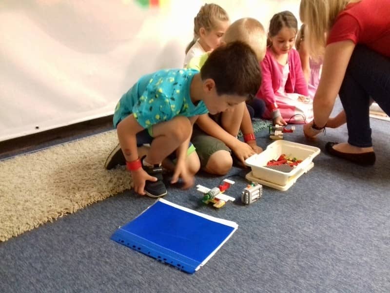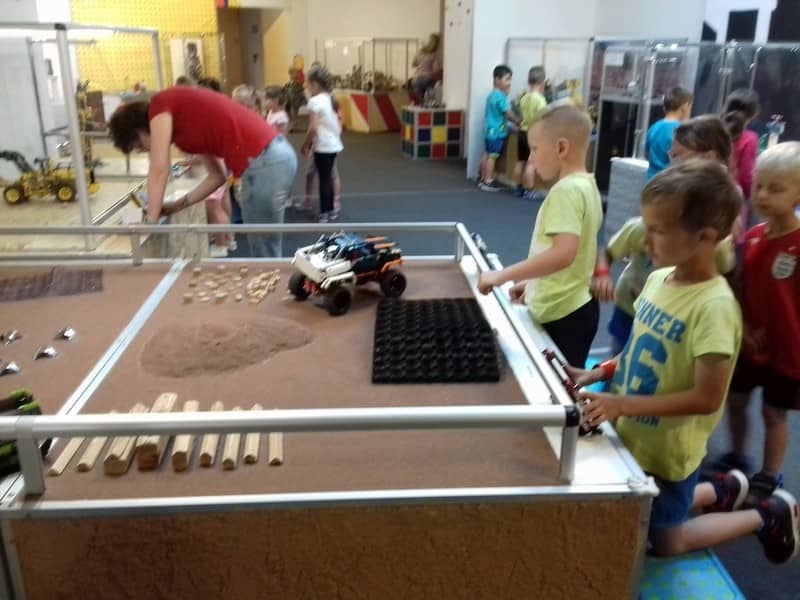 Tematem przewodnim zajęć była podróż dookoła świata. Wraz z prowadzącymi warsztaty Paniami, dzieci odwiedziły różne części naszego globu, a następnie zbudowały środek transportu, którym podróżnicy często przemieszczają się do kolejnych miejsc. Na końcu wraz z opiekunami dzieci zwiedzały Klockoland i wykorzystywały klocki do zabawy. Mogły sterować robotami, wszystkimi zbudowanymi konstrukcjami, pojazdami. Atrakcji było bardzo wiele. Zainteresowanie dzieci i radość towarzyszyły im na każdym kroku.