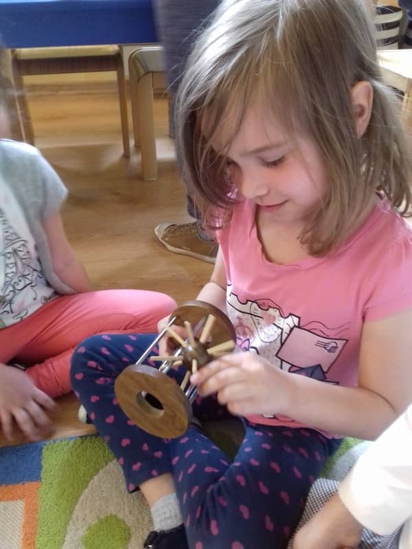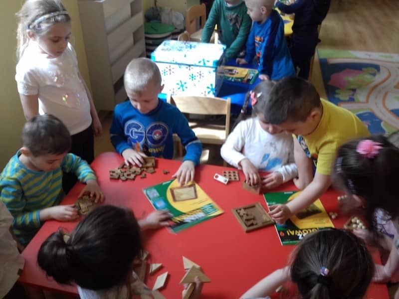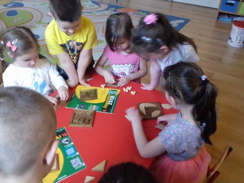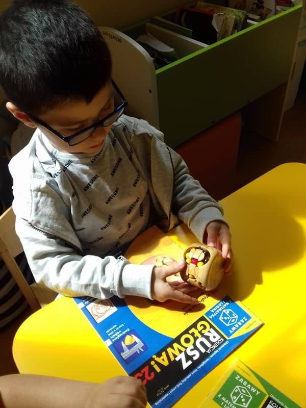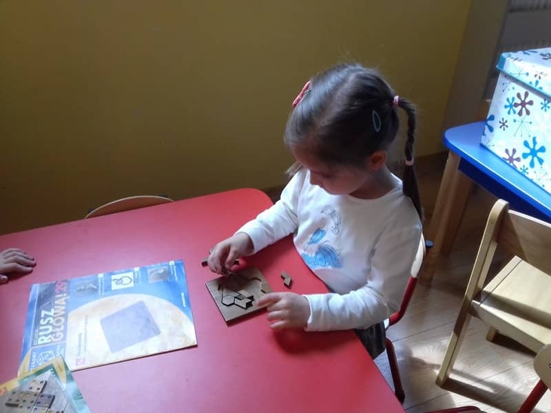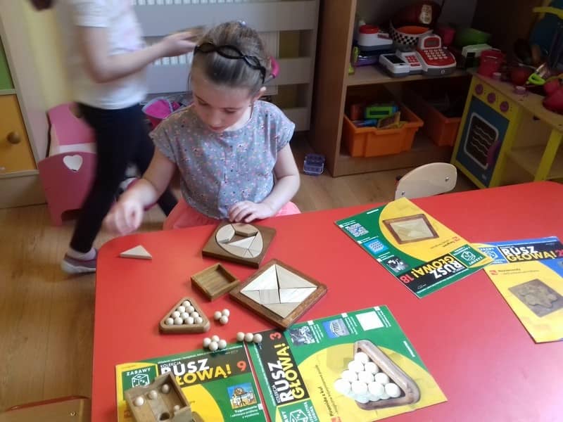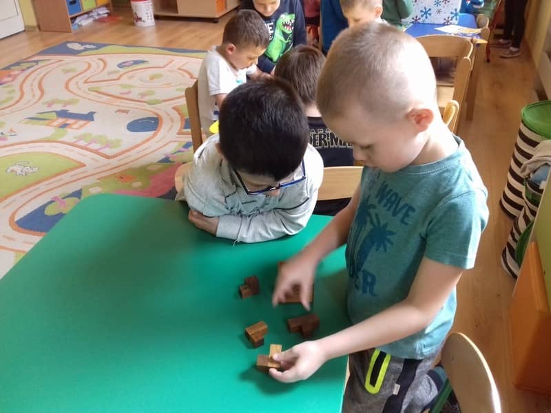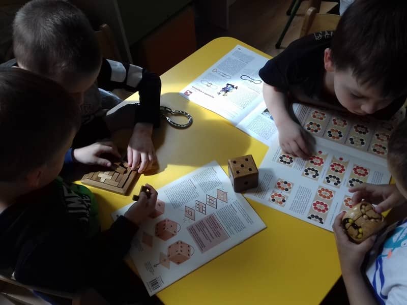 Dzieci swobodnie manipulowały przedmiotami i kierując się wskazówkami nauczyciela próbowały rozwiązać niemożliwe na pierwszy rzut oka zagadki. Kilkoro dzieci odniosło wielki sukces. Największym jednak zaskoczeniem było to, że po godzinie wytężonej pracy, dzieci wciąż podejmowały kolejne wyzwania. Miały do dyspozycji poprzednie łamigłówki. Na zajęciach można było dostrzec postępy wielu dzieci, a przede wszystkim radość, jaką im przynosi ta forma zabawy.