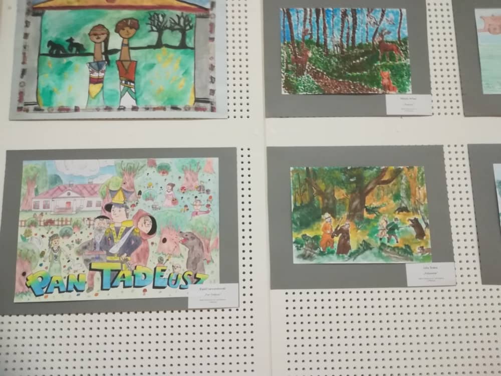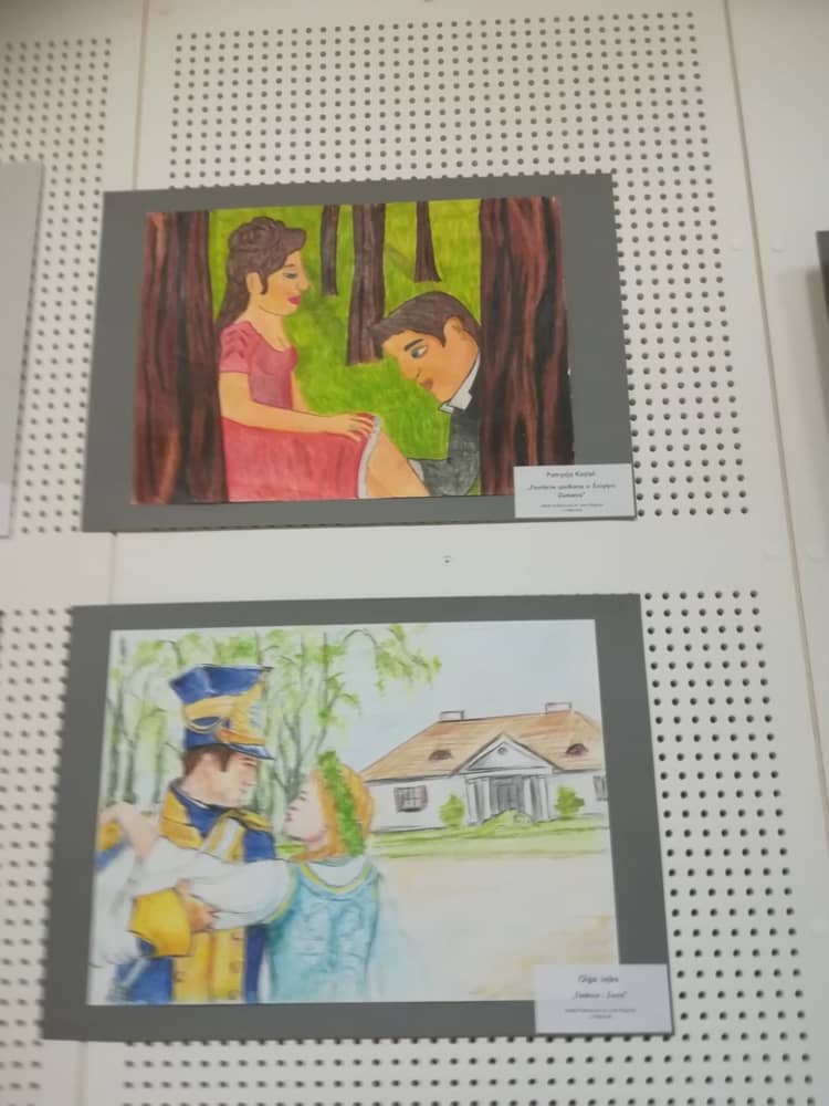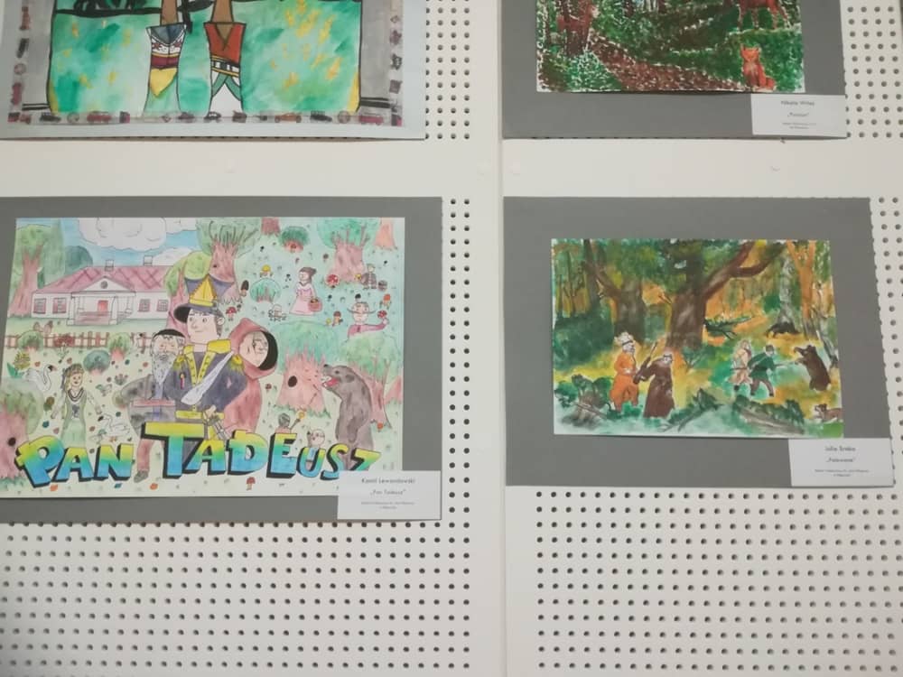 III miejsce ex aequo zajęli Kamil Lewandowski z klasy VII z rysunkiem "Pan Tadeusz" oraz Olga Jajko z kl. VIII za portret "Tadeusz i Zosia".