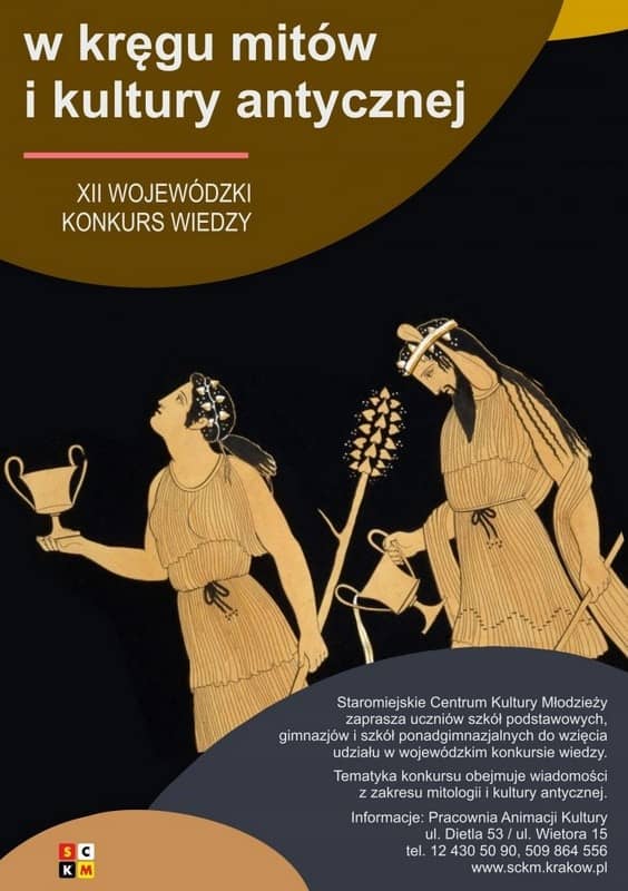 17 maja 2018 r. o godz. 12.30 w sali teatralnej siedziby Staromiejskiego Centrum Kultury Młodzieży przy ul. Wietora 13 miała miejsce uroczystość rozdania nagród XII Wojewódzkiego Konkursu Wiedzy „W kręgu mitów i kultury antycznej” skierowanego do uczniów szkół podstawowych, gimnazjów i uczniów szkół ponadgimnazjalnych z województwa małopolskiego. W tym roku tematem wiodącym konkursu było życie codzienne w starożytnej Grecji oraz mity dotyczące powstania świata i wojny trojańskiej. Konkurs poprzedzony był warsztatami i wykładami. Do konkursu przystąpiło 746 uczestników.