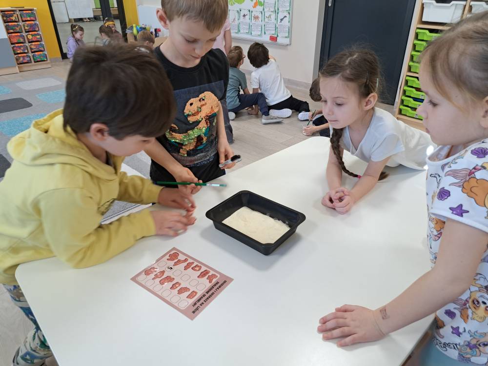 Dzieci z oddziałów przedszkolnych „Tropicieli Bajek” oraz „Mali Odkrywcy” wcieliły się w role małych paleontologów i zgłębiały wiedzę na temat prehistorycznych stworzeń obchodząc Dzień Dinozaura. Przedszkolaki pracując w grupach wykonywały zadania przygotowane przez diplodoka Dinusia. Brały między innymi udział w turnieju wiedzy na temat dinozaurów, poszukiwały skamielin, wykonywały pracę plastyczną i wiele, wiele innych. Na zakończenie zajęć czekała ich wspaniała nagroda.