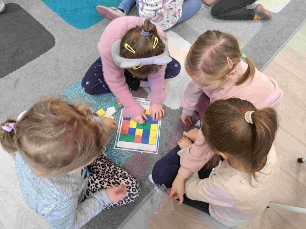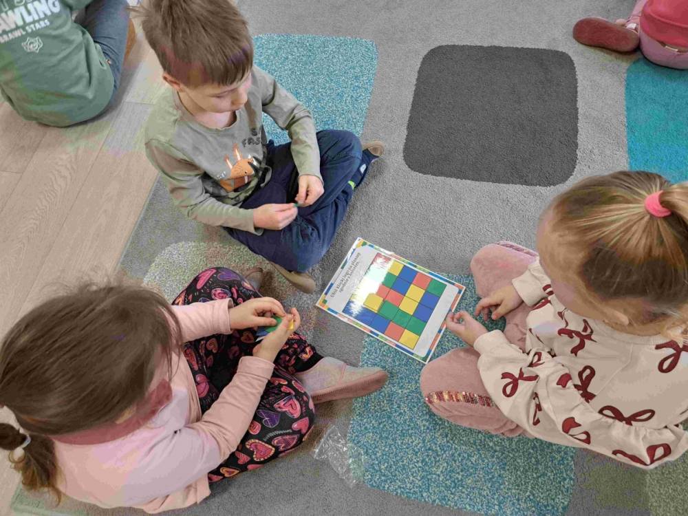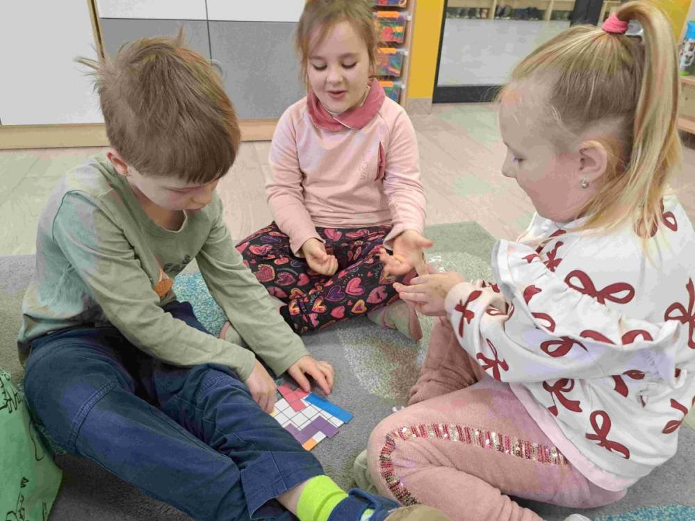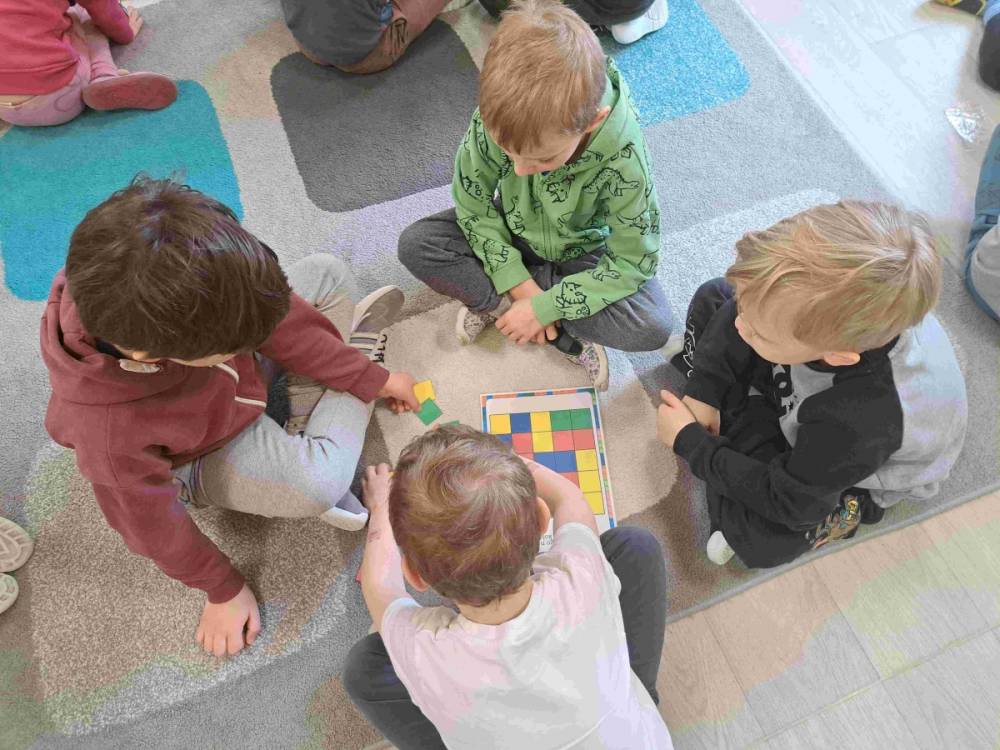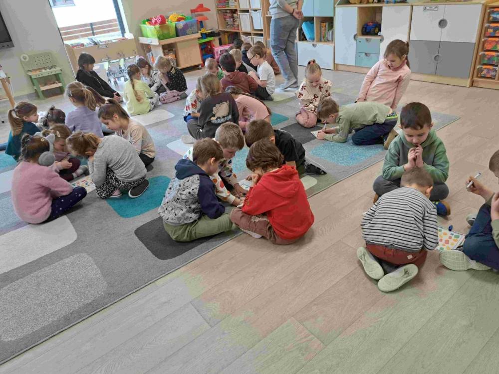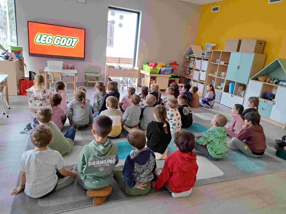Dzieci lubią się bawić. A co innego sprawia im tyle frajdy i pobudza wyobraźnię jeśli nie klocki. Dlatego przedszkolaki z grup „Tropicieli Bajek” oraz „Małych Odkrywców” obchodziły Dzień klocków Lego. Na początek dzieci dowiedziały się kto wymyślił Lego i skąd wzięła się ich nazwa, a także w jaki sposób są produkowane. Następnie rozwiązywały różne zadania w małych zespołach ucząc się również współpracy. Wśród zadań była nawet gra na klockach Lego. Po zajęciach przyszedł czas na zabawę klockami Lego przyniesionymi przez dzieci z domu, jak również tymi dostępnymi w przedszkolu.