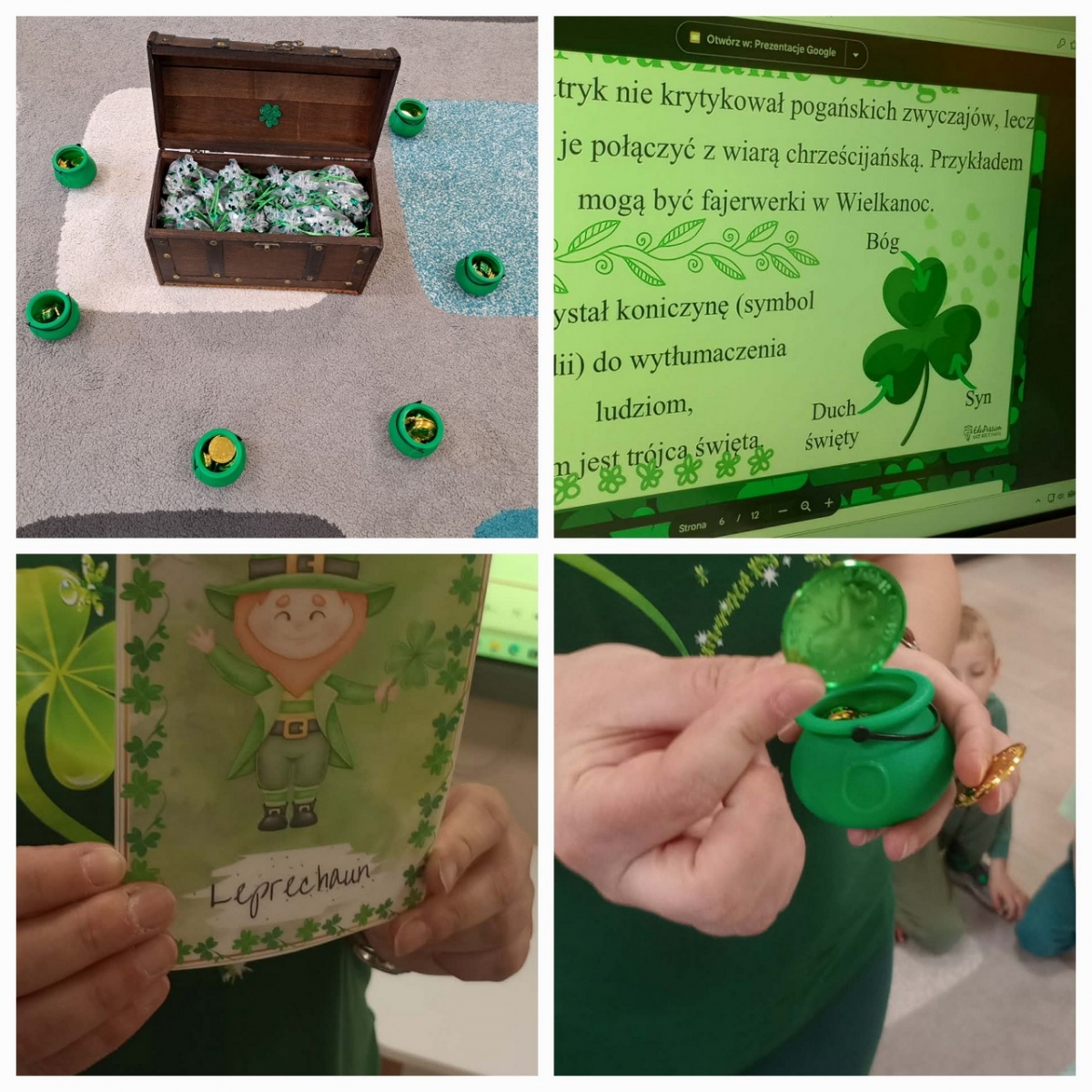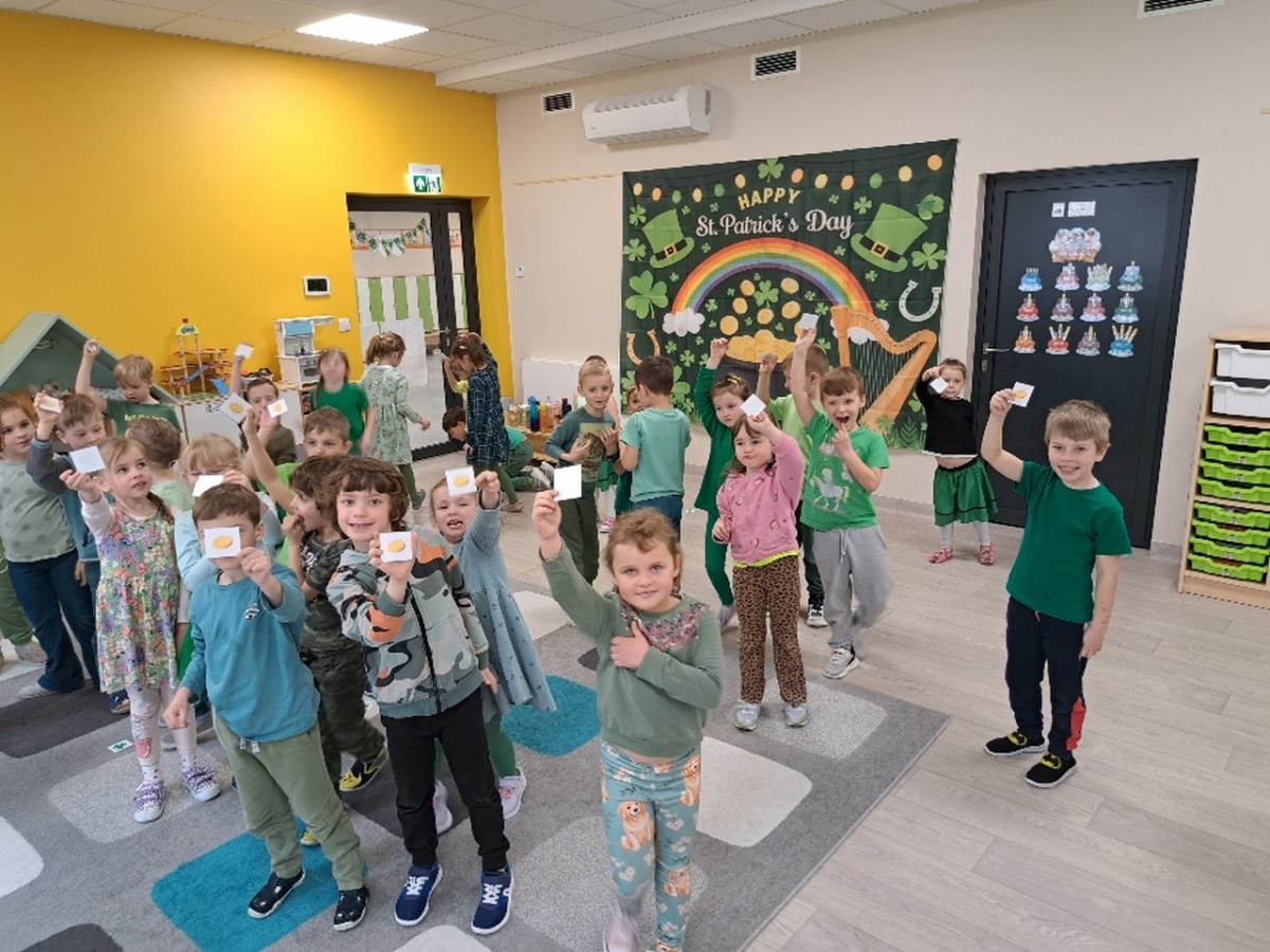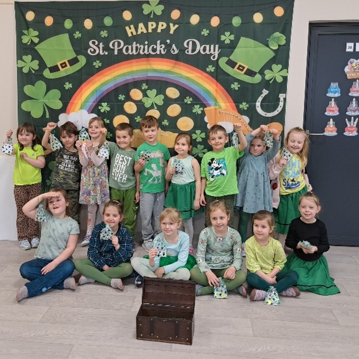 17 marca w oddziałach przedszkolnych "Tropiciele Bajek" oraz "Mali Odkrywcy" w ramach poznawania tradycji krajów anglojęzycznych dzieci obchodziły Dzień św. Patryka. Najpierw przedszkolaki poznały historię św. Patryka oraz symbole związane z tym świętem. Brały udział w zabawach utrwalających wiedzę, takich jak znajdź cień, czy "Pick.the shamrock". Nie zabrakło czasu na pamiątkowe zdjęcia oraz pracę plastyczną związaną z postacią Leprechauna. Na zakończenie zajęć każde dziecko otrzymało pamiątkę z uroczystości.