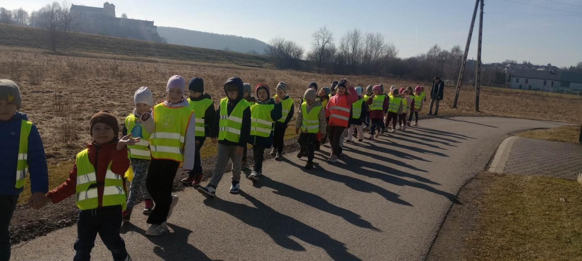 Przedszkolaki wybrały się na długi, wiosenny spacer w okolicy przedszkola. Dzieci obserwowały pierwsze oznaki wiosny – pąki na drzewach, bazie oraz śpiewające ptaki. Wszyscy wrócili zmęczeni, ale bardzo zadowoleni